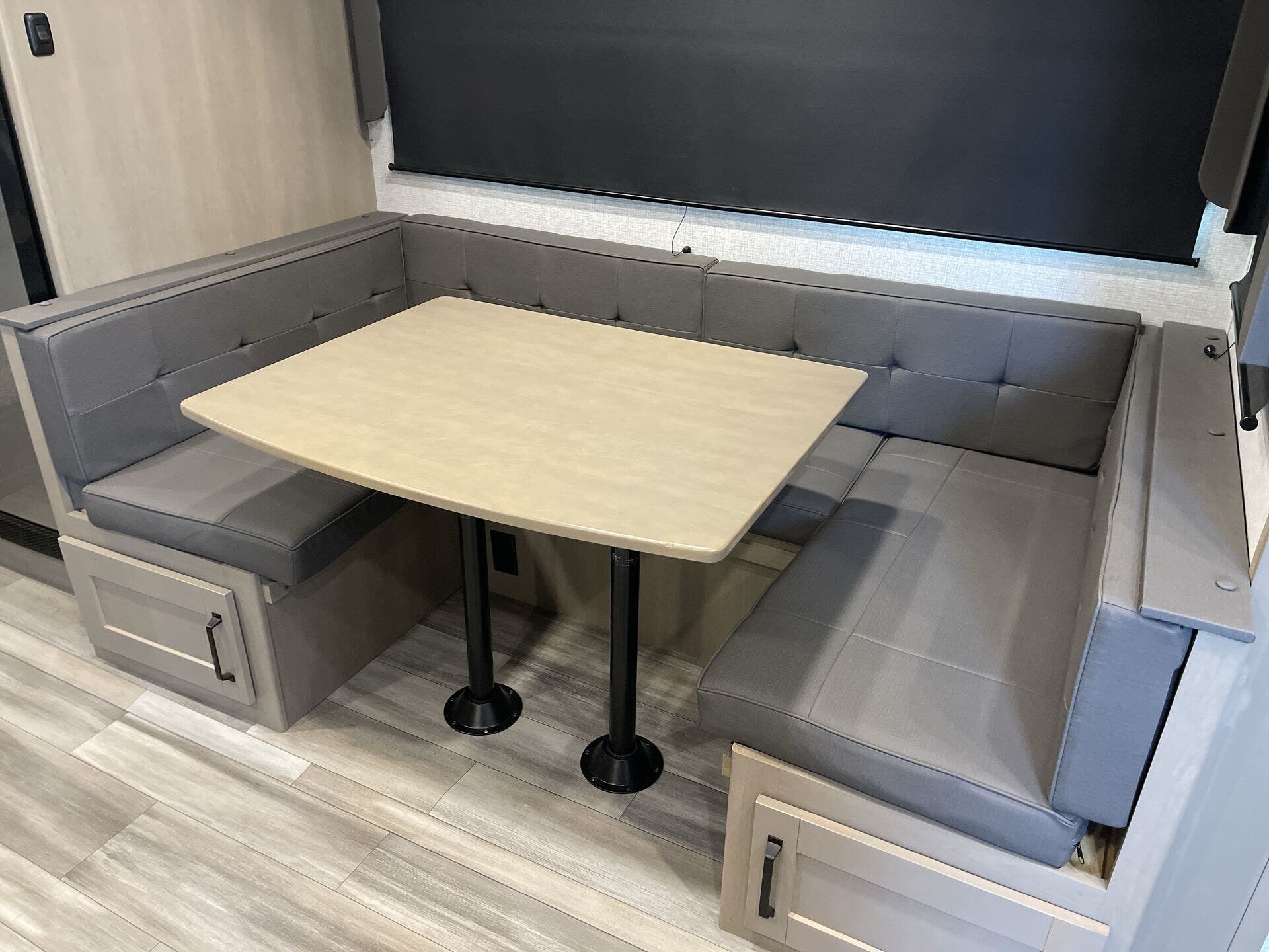 - U-Shaped Dinette offers flexible dining space and converts to additional sleeping area when needed