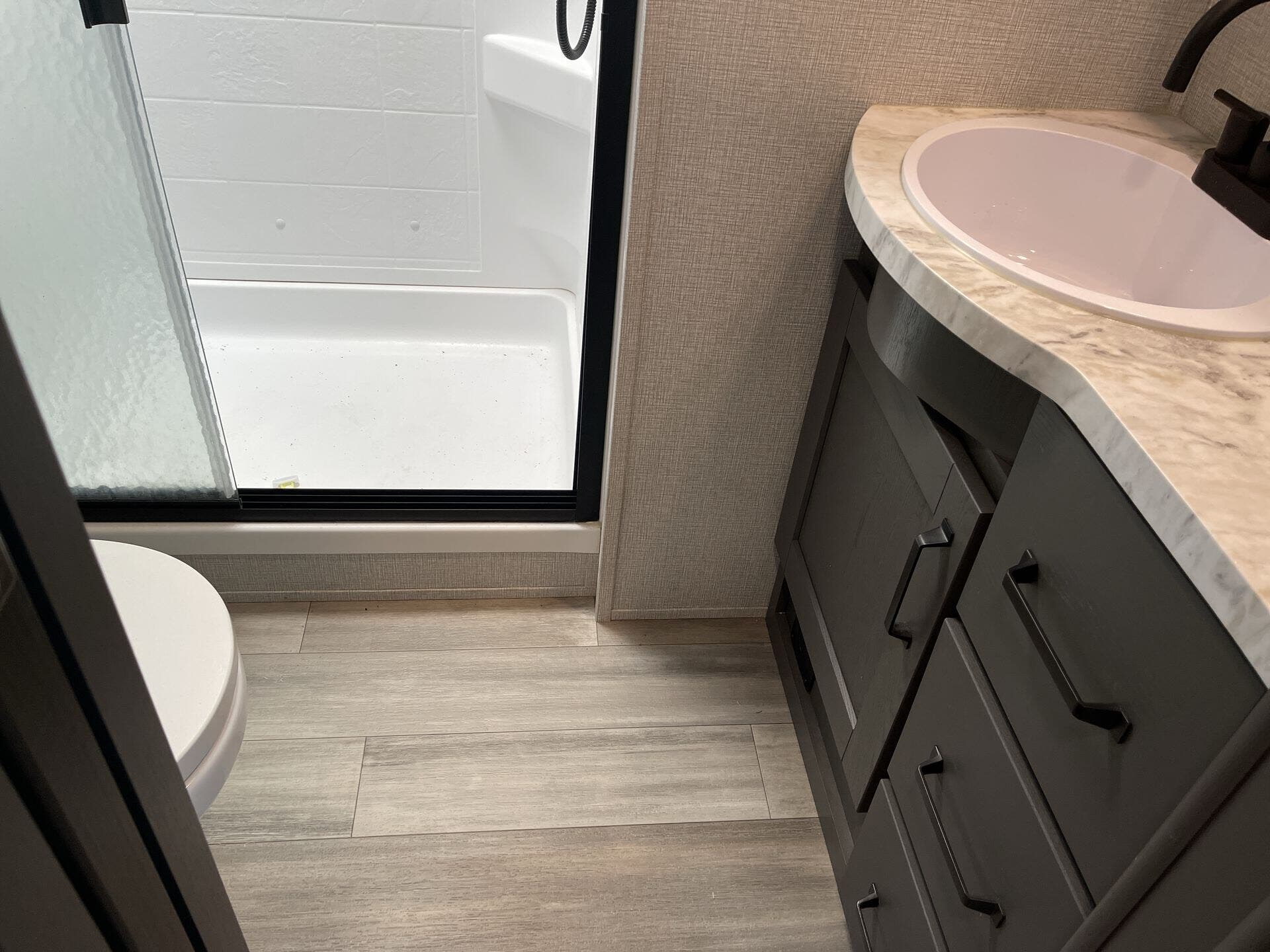 - Bath & Sleep: Shower, Toilet, Medicine Cabinet, Queen Bed