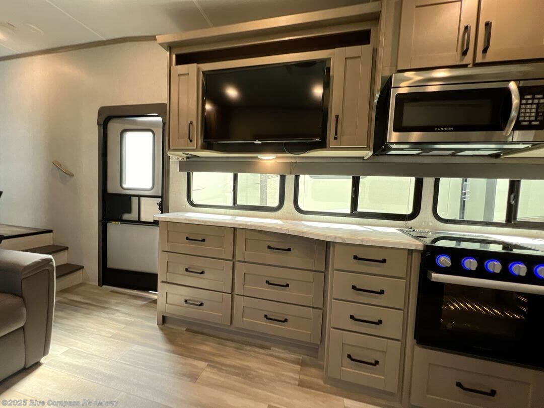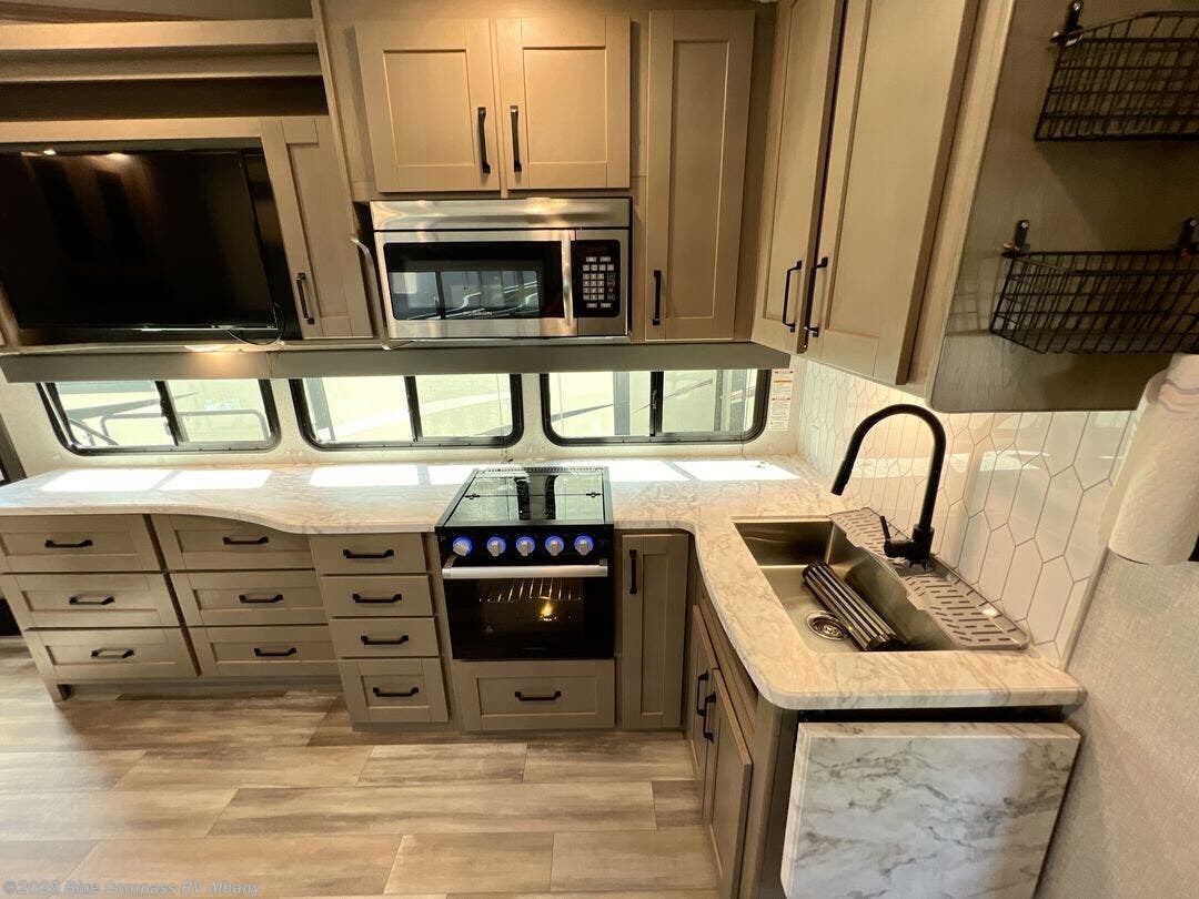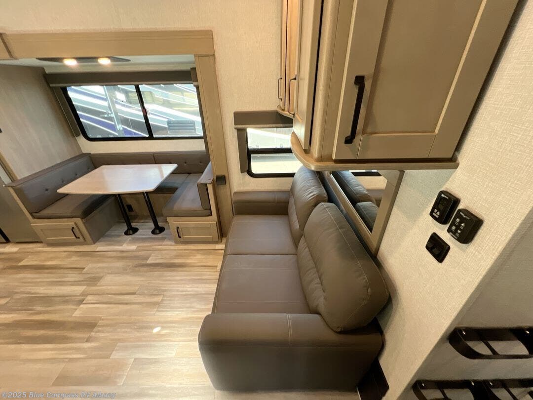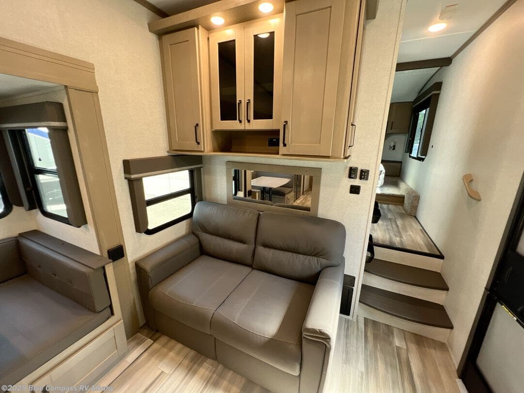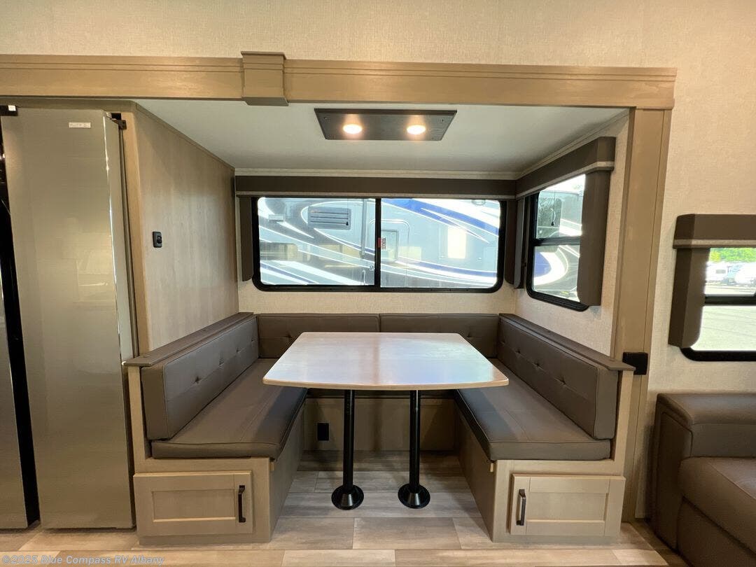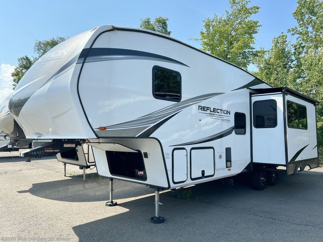 With any Reflection 150 Series fifth wheel by Grand Design, there is more available payload capacity and a broader range of half-ton trucks capable of towing this fifth wheel, and no slider hitch is needed thanks to the 90-degree turning radius which makes them short bed friendly and easier to tow. The mandatory Ultimate Power package provides a "One-Touch" automatic leveling system and a detachable power cord with LED light for easy setup, plus motion sensor pass-through lighting and entry lighting, and the Tire Linc TPMS will help you stay safe on the road. The interior offers residential luxury from the cabinetry and premium congoleum flooring, plus the booth dinette to the residential-style window treatment. Make your refined decision today!