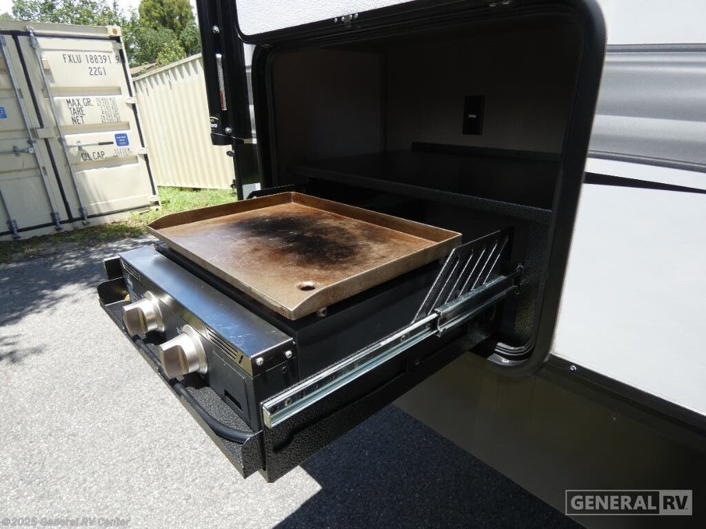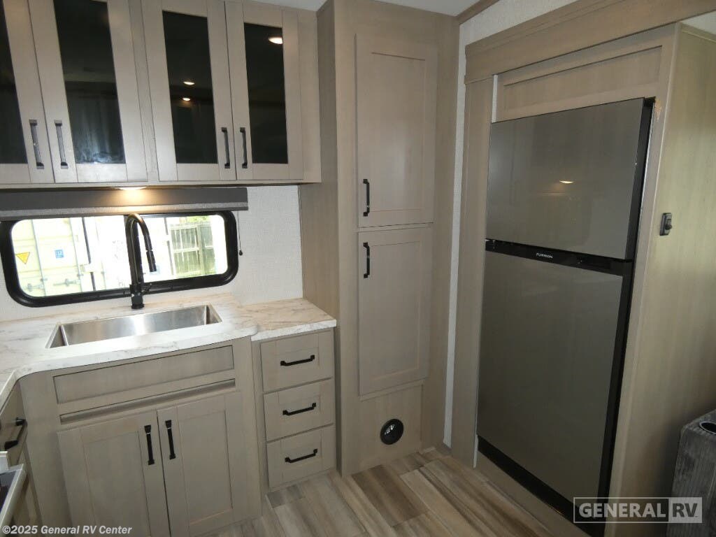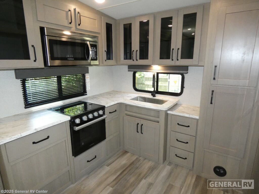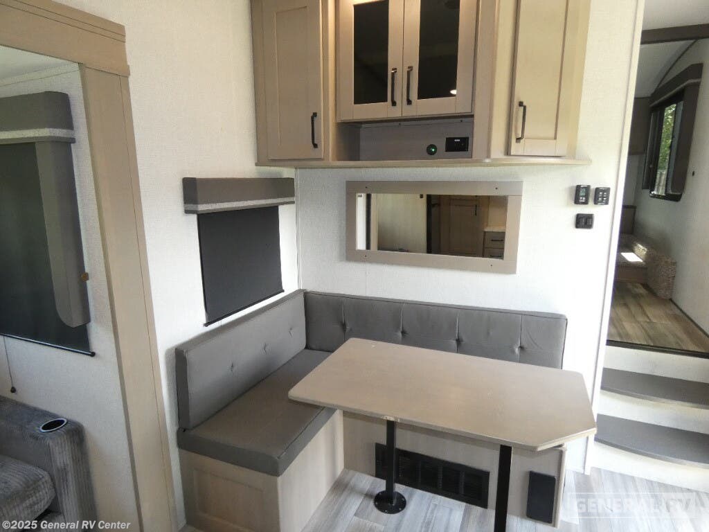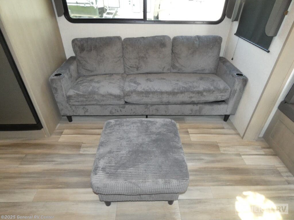 Step into the 2023 Grand Design Reflection 150 Series 270BN and experience a blend of luxury and practicality tailored for the modern adventurer. This fifth wheel, stretching just under 30 feet, offers an inviting layout with a rear kitchen that’s perfect for culinary enthusiasts. The full-size electric refrigerator and three-burner cooktop make meal prep a breeze, whether you're whipping up a quick breakfast or a gourmet dinner. The center living area, featuring 78" theater seating, is ideal for relaxing after a day of exploration, while the adjustable dinette ensures flexible dining and workspace options. The front bedroom promises restful nights with its queen bed, surrounded by overhead cabinets for ample storage. You'll appreciate the convenience of the center bath, complete with a shower skylight, enhancing the feeling of spaciousness and light. Outside, the 17-foot powered retractable awning provides a perfect shaded retreat, and the unobstructed pass-thru storage ensures all your gear is easily accessible. With a robust construction and thoughtful design, the Reflection 270BN is ready to elevate your travel experiences. For more details, visit your nearest General RV dealership.
