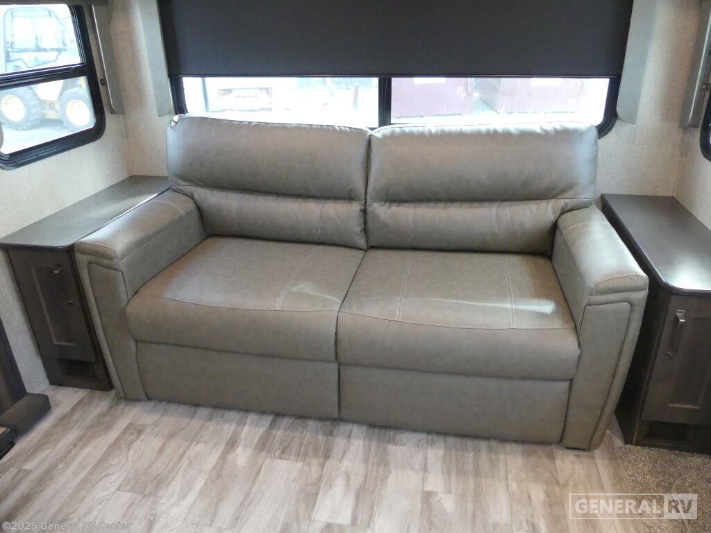 Experience the perfect blend of luxury and functionality with the 2023 Grand Design Reflection 297RSTS. This stunning travel trailer is designed to accommodate up to six guests comfortably, featuring a queen bed and two convertible sleeping areas. The heart of this RV is its center kitchen, equipped with a three-burner cooktop and a mid-size refrigerator that runs on electric or propane. Whether you're whipping up a quick breakfast or a gourmet dinner, this kitchen has you covered. The rear living area invites relaxation with theater seating and a tri-fold sofa, making it an ideal spot to unwind after a day of adventure. The Reflection 297RSTS boasts a spacious interior with two slides that enhance the open feel. The front bedroom offers a peaceful retreat with a 60 x 80 queen bed, while the center bath provides a 30 x 36 shower with a skylight for a touch of elegance. Enjoy outdoor living under the 21 ft. powered retractable awning, and make use of the convenient outside kitchen. With a generous cargo capacity and ample storage, including unobstructed pass-thru storage, this RV is ready for any journey. For more details, visit your nearest General RV dealership and see why the Reflection 297RSTS is the perfect home away from home.
