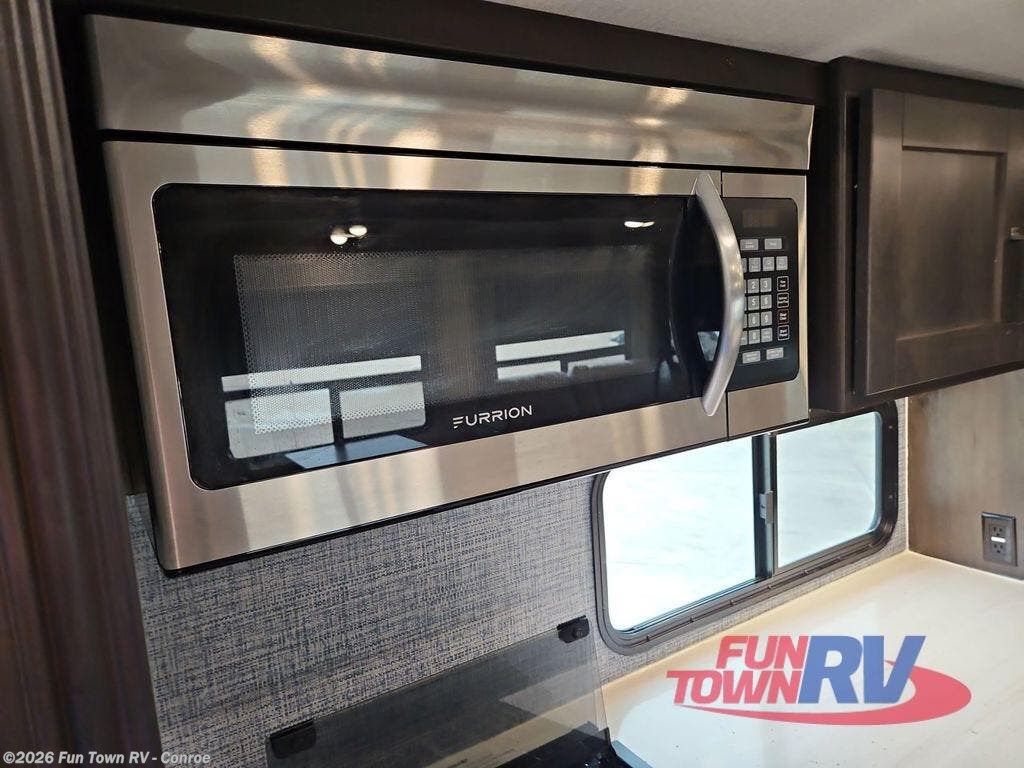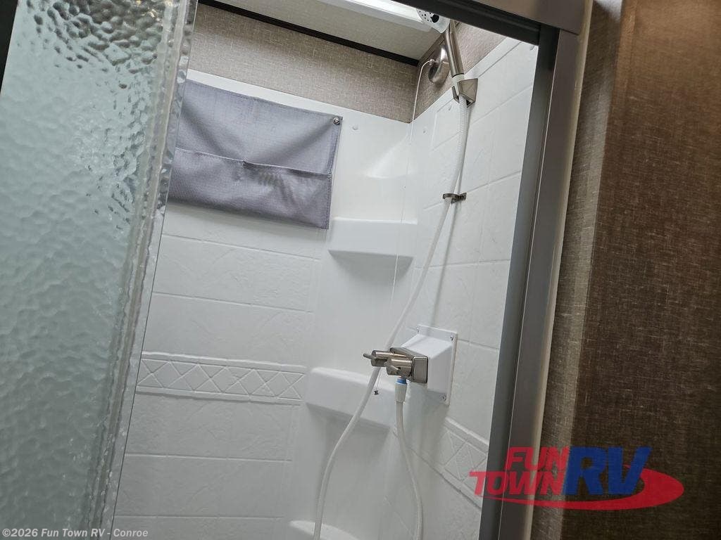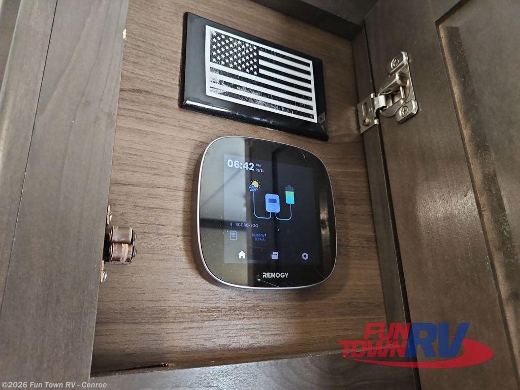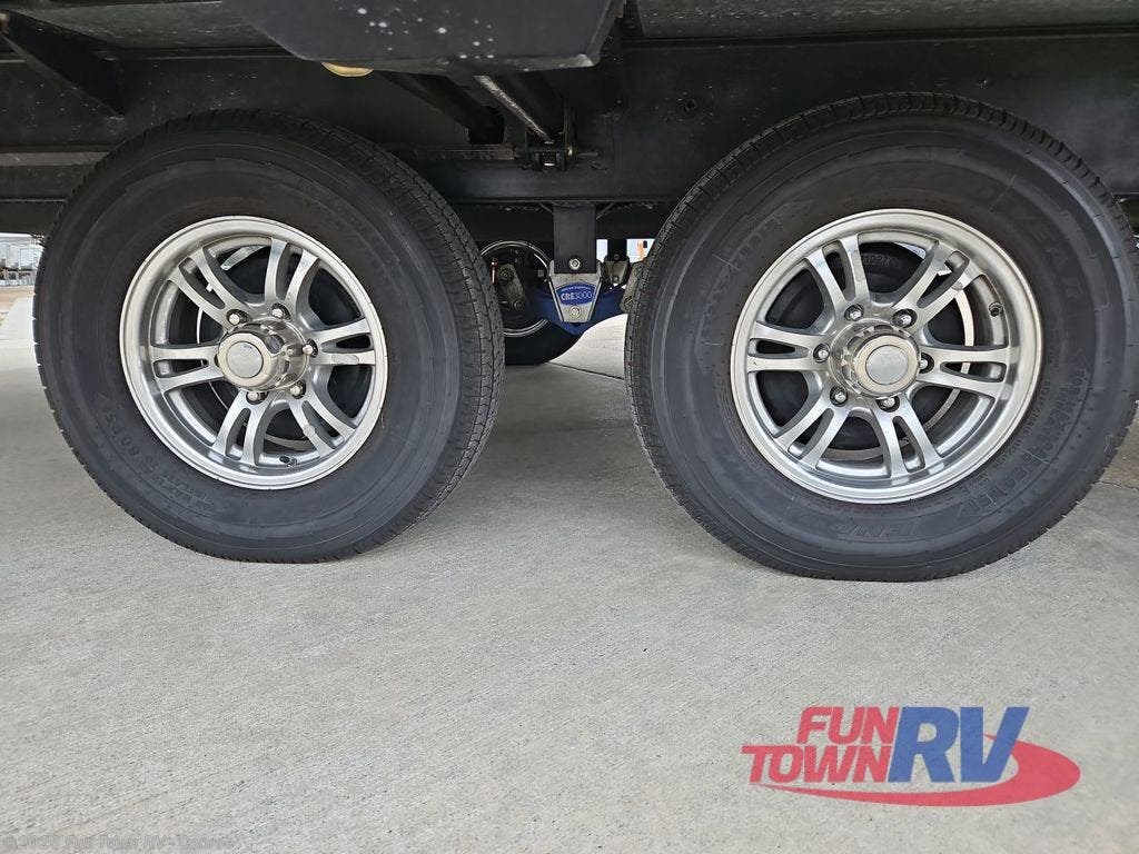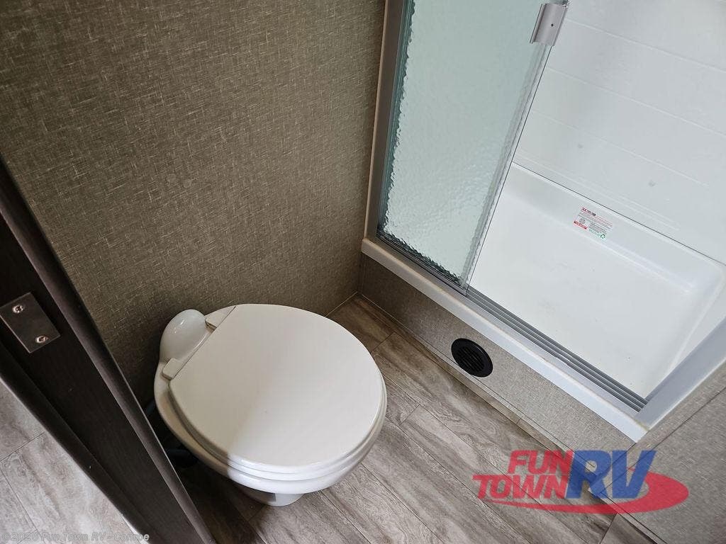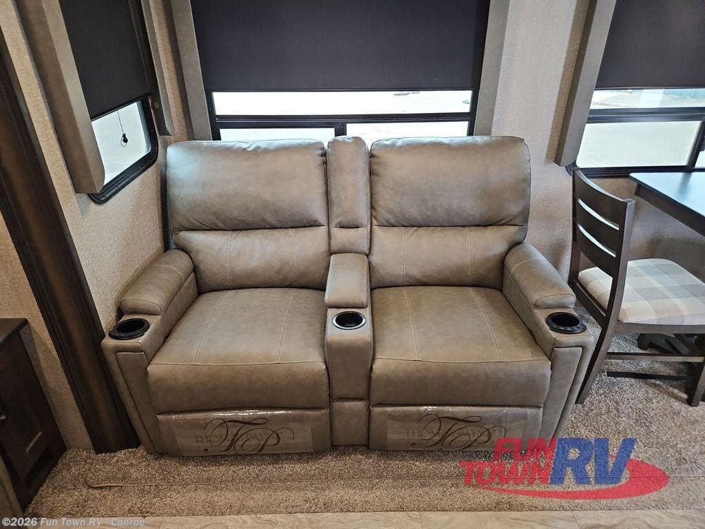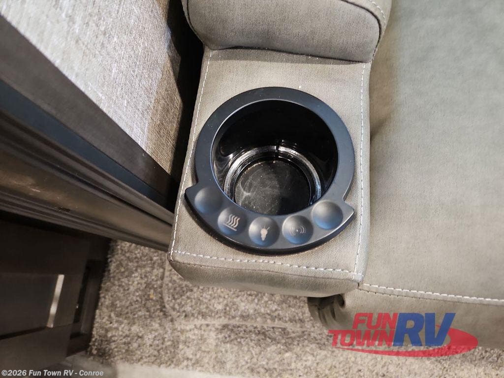 Whether you travel to explore or relax, this trailer will give you the choice depending where you park it! The outside kitchen provides another place to make meals when you want to be in the outdoors, and the inside kitchen amenities offer a gourmet kitchen including a 10 cu. ft. refrigerator, an island, and a hutch. You and your guests will find theatre seating with cupholders, a booth dinette or choose a free standing dinette option, and a tri-fold sofa to sit on and visit while you watch the 40" LED HDTV with fireplace below. The full bathroom includes a space saving sliding door and linen storage, and the bedroom gives you a front walk-around queen bed with storage for your clothes on each side, plus there is an additional wardrobe with drawers and the option to add a washer/dryer to the prepped space.