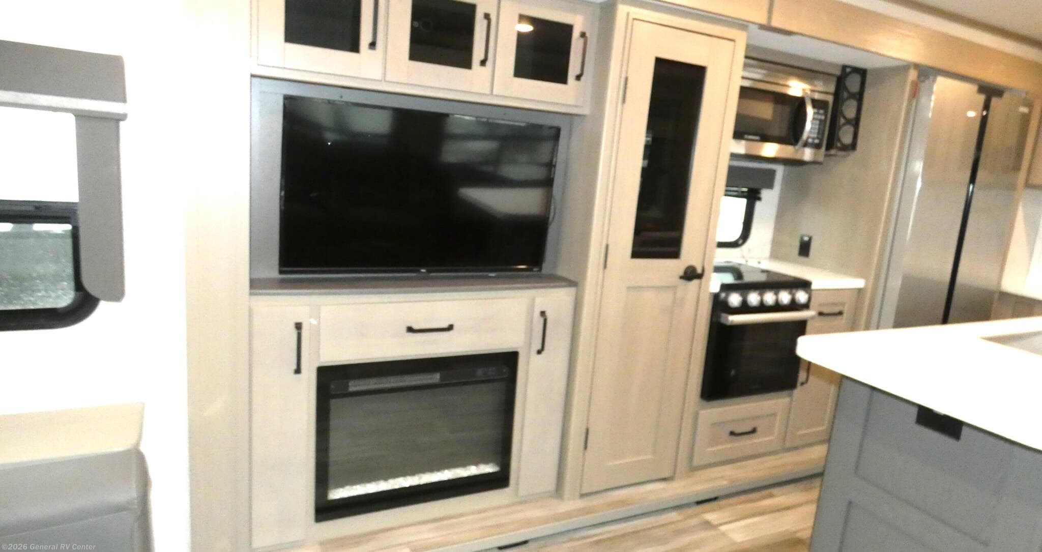 Experience the pinnacle of luxury and comfort with the 2023 Grand Design Reflection 315RLTS. This spacious travel trailer, stretching nearly 38 feet, is crafted for those who crave adventure without compromising on the comforts of home. As you enter, you're greeted by a beautifully designed center kitchen, equipped with a full-size electric refrigerator and a three-burner cooktop, making it perfect for whipping up gourmet meals on the go. The rear living area is a haven of relaxation, featuring a cozy tri-fold sofa and theater seating, all centered around an entertainment center complete with a 40” TV and a charming fireplace. The Reflection 315RLTS offers ample sleeping accommodations for up to six, with a luxurious queen bed in the front bedroom and convertible sleeping spaces. The bedroom is also washer/dryer prepped, adding a touch of convenience for extended travels. Dual awnings create an inviting outdoor space, perfect for enjoying the fresh air no matter the weather. With its impressive water capacities and thoughtful design, this model ensures you’re always ready for the next adventure. For more details or to see this beauty in person, visit your nearest General RV dealership.