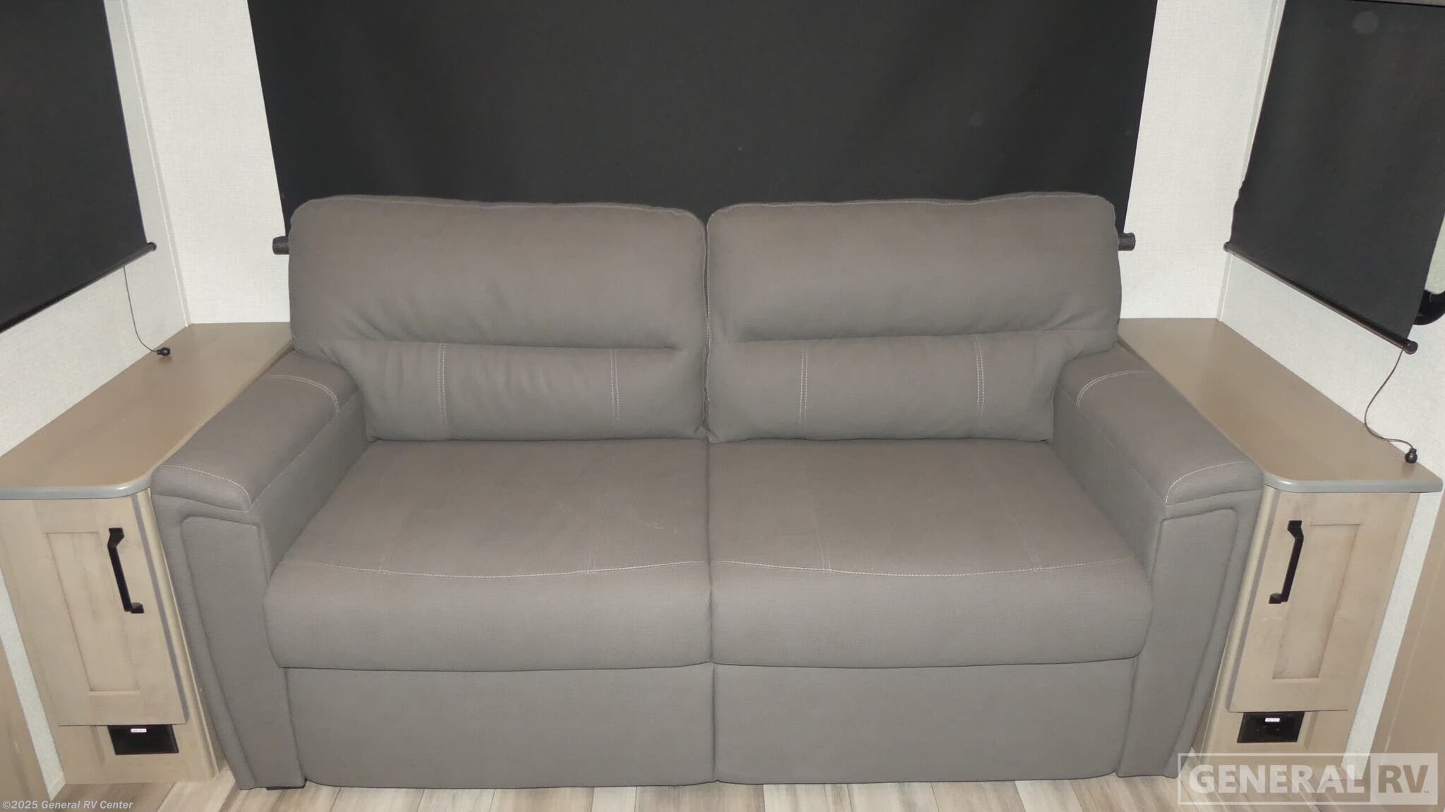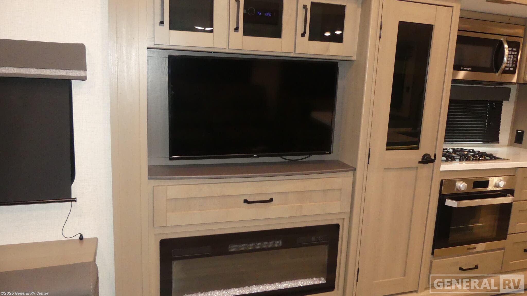 Discover the 2023 Grand Design Reflection 337RLS, where luxury meets practicality in a perfectly crafted fifth wheel. This RV is designed to comfortably sleep up to six, featuring a queen bed, and two convertible sleeping areas. The inviting rear living area boasts theater seating and a tri-fold sofa, perfect for relaxing evenings by the entertainment center, complete with a 40-inch TV and fireplace. The center kitchen is a culinary dream, equipped with a full-size refrigerator, three-burner cooktop, and ample pantry space, ideal for whipping up gourmet meals on the road. Venture towards the front, and you'll find a serene bedroom retreat with a spacious wardrobe and washer/dryer prep, making long-term travel a breeze. The center bath offers a 30 x 48 fiberglass shower with a skylight, ensuring a refreshing start to your day. With three slides, a 16-foot powered awning, and abundant storage, including unobstructed pass-thru storage, this Reflection model combines elegance with functionality. Visit your nearest General RV dealership to explore the Reflection 337RLS and make your travel dreams a reality.