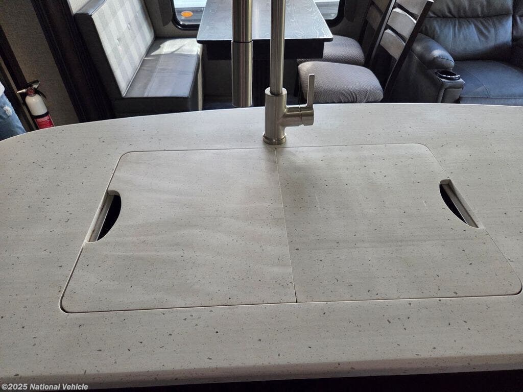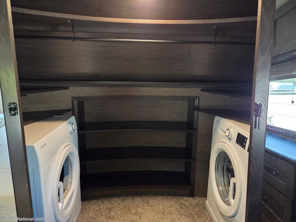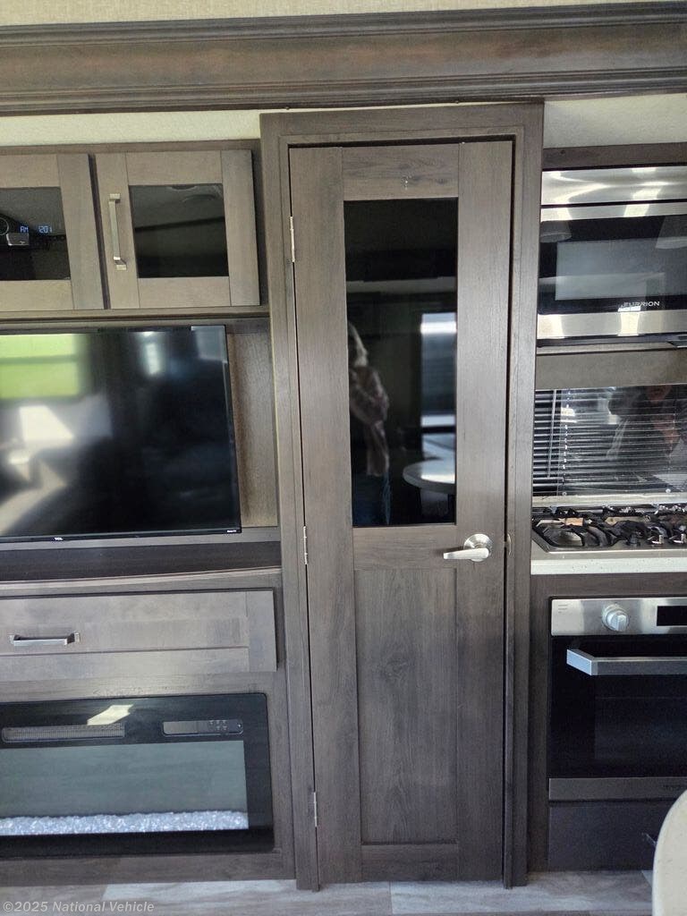 Inside, the 337RLS features a rear living area with dual opposing slides that open up the space for theatre?style seating or a tri?fold sofa, a booth dinette, and entertainment center?including a 40? LED TV and fireplace for cozy evenings. The well?appointed kitchen includes a 16?cu?ft refrigerator, three?burner cooktop, plenty of pantry storage, and an island or hutch for added prep surface. Toward the front you?ll find a private bedroom with a queen (upgradeable to king) bed slide, wardrobe space, and washer/dryer prep for added convenience.
