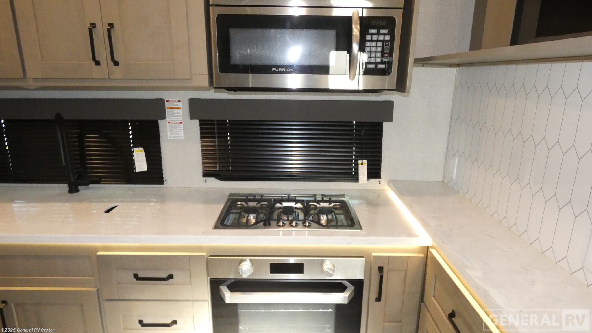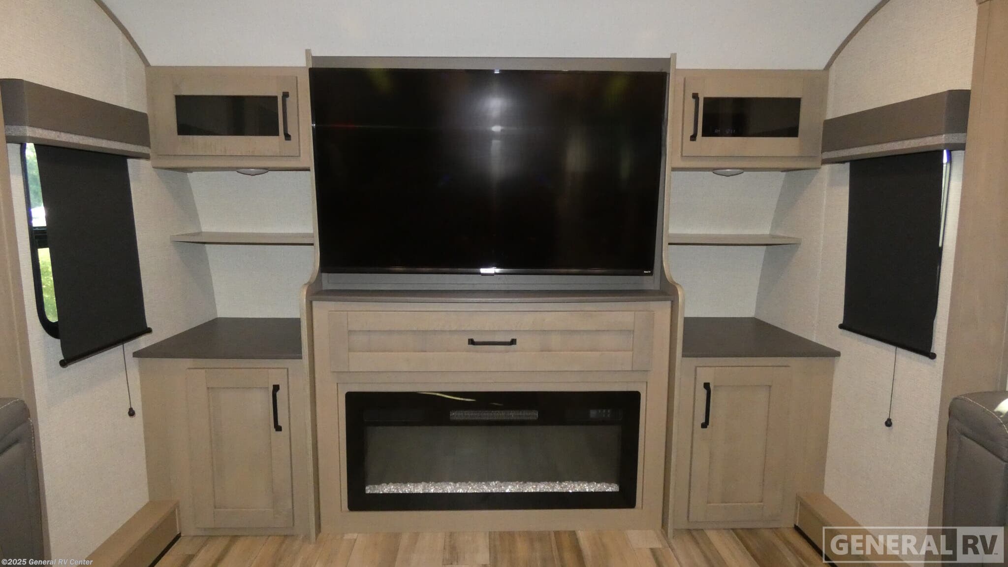 You and your spouse will love having this fifth wheel on your next camping adventure! Get a good night's rest each night on the queen bed slide in the rear private bedroom with TV prep across from the bed, and freshen up each morning in the full bathroom with the 30" x 48" fiberglass shower. You can enjoy home cooked meals made using the three burner cooktop and 16 cu. ft. refrigerator in the full kitchen, and eat them at the slide out free standing dinette table featuring two chairs and an ottoman with storage. You even have a hutch to store your dishes in, and a TV prep area so you can add a TV to watch a show while you cook. The front living area offers a comfortable place to wind down your nights by relaxing in front of the fireplace on either one of the opposing tri-fold sofa slides or the theater seating! Each Reflection fifth wheel and travel trailer by Grand Design is packed with luxury features for an overall better camping experience! The MORryde 3000CRE suspension provides smooth towing to your destination and the durable construction materials mean you can enjoy your RV for years to come. These units include the Arctic 4-Seasons Protection Package that will extend your camping season thanks to the extreme temperature testing and maximum heating power. You will also appreciate the Solar Package that will allow you to do some off-grid camping and the Compass Connect system so you can control your RV's functions right from the palm of your hand. The interior of these travel trailers and fifth wheels are designed to make you feel at home with residential cabinetry, solid surface countertops, blackout roller shades, a spacious shower with a glass door, residential bedrooms, and the list goes on! Choose a Reflection today and start a new adventure tomorrow!