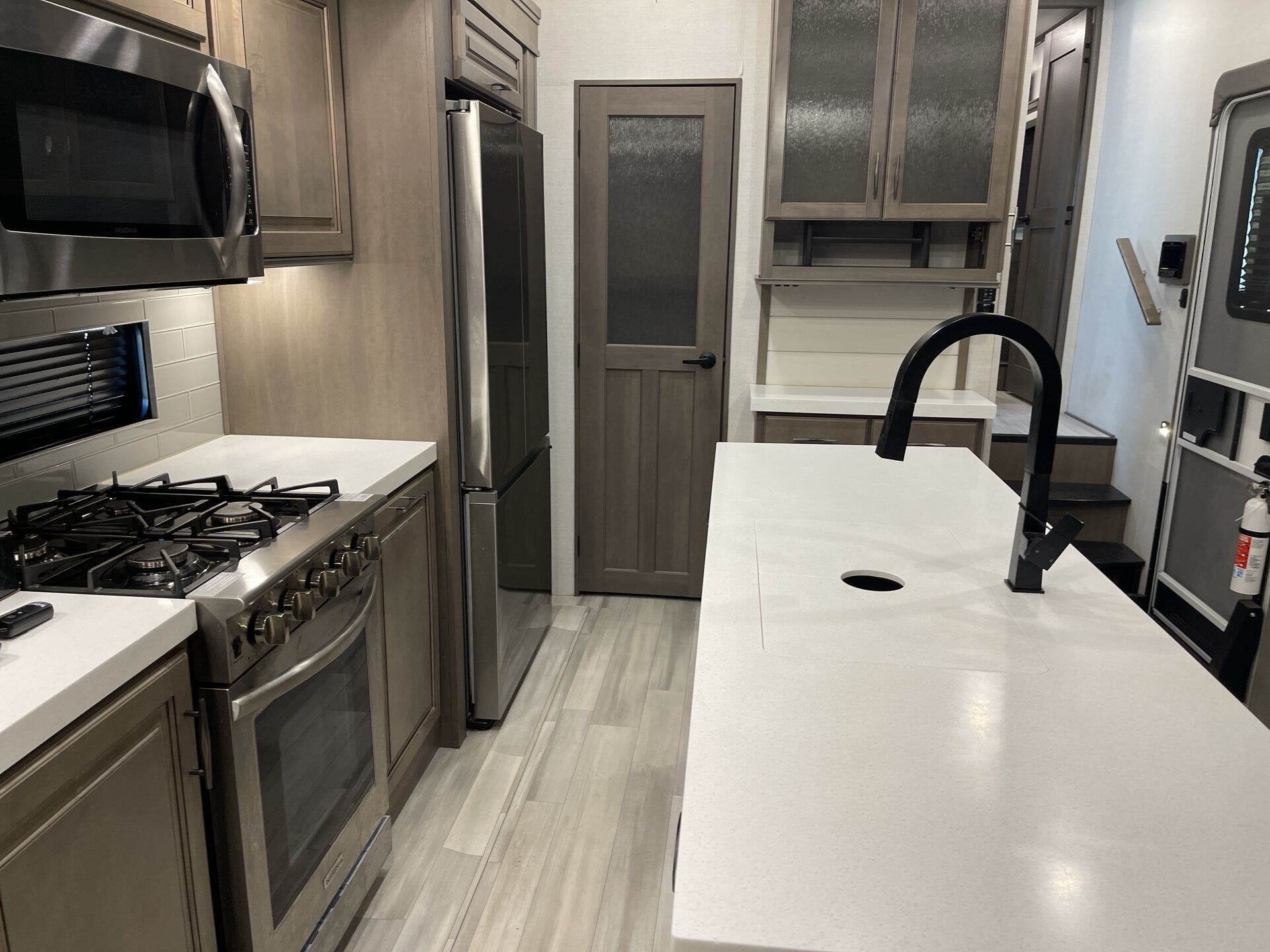 Discover the Grand Design Solitude 310 GK-R, a 2023 towable fifth wheel that blends upscale residential comfort with rugged RV usability. This model measures 34 feet 4 inches long, 14 feet 6 inches wide, and 13 feet 5 inches high, delivering a spacious, home-like feel on the road. With three slideouts and a thoughtful front-to-rear layout, it creates generous living areas while maintaining a compact footprint for easy highway travel. Built on a dual-axle chassis with a GVWR of 19,000 pounds and a hitch weight of 2,350 pounds, this Fifth Wheel is designed for stable towing and confident handling on varied terrains. Inside, it comfortably sleeps four and is ready for extended vacations or weekend getaways in the RV lifestyle.