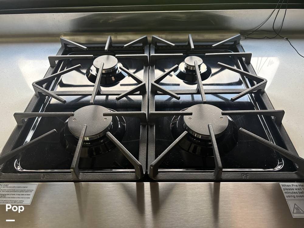 The kitchen is designed for extended stays and is equipped with a stove, refrigerator/freezer, dishwasher, and microwave. A kitchen island, pantry, and double sink make cooking and cleanup effortless, while a backsplash and cooktop cover add thoughtful touches.