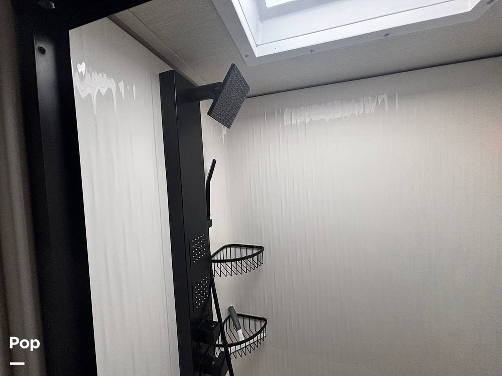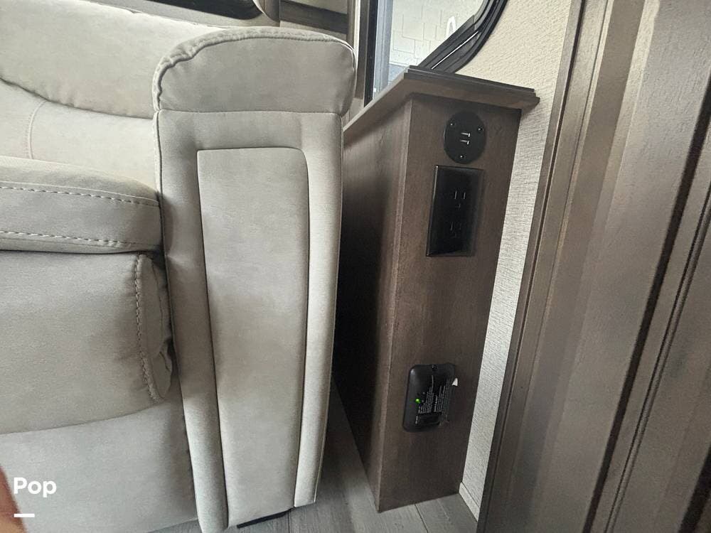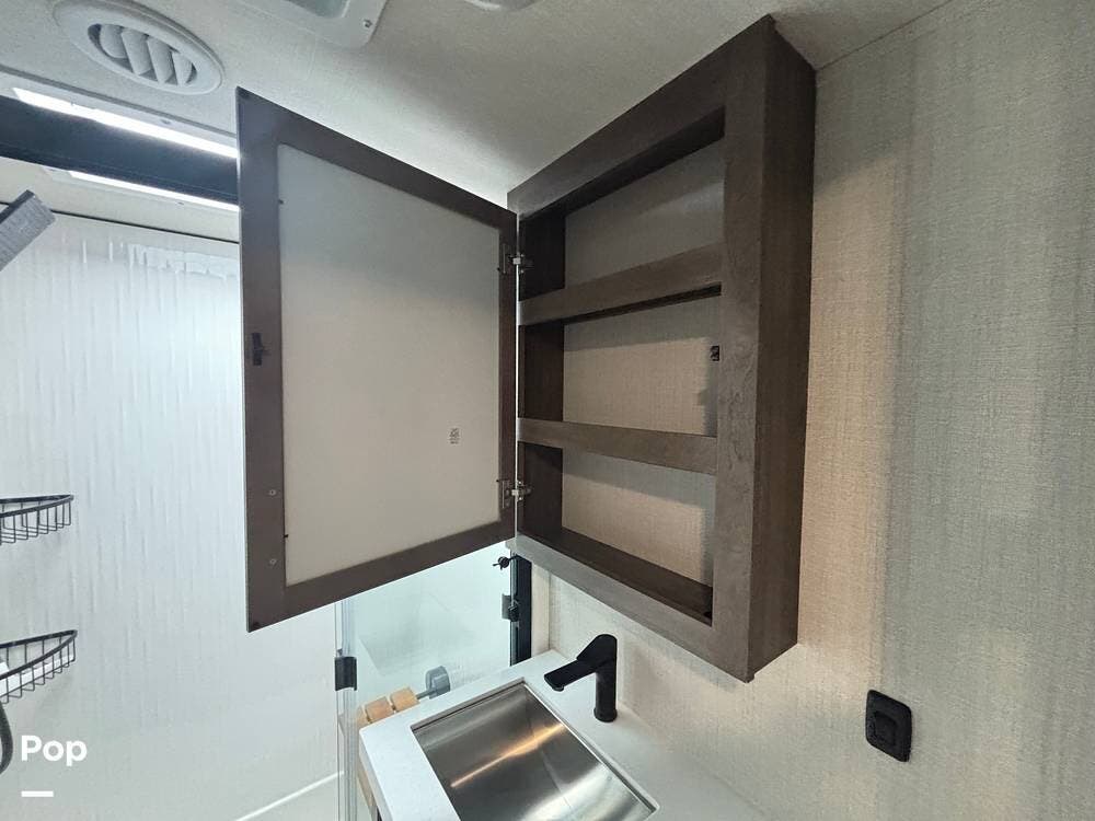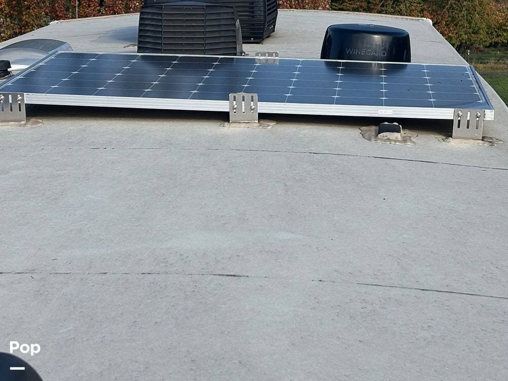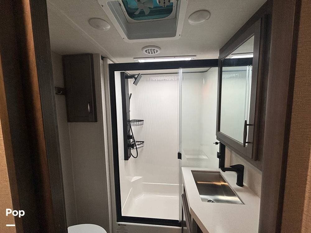 The full bathroom includes a skylight, shower, and medicine cabinet. The king bed, heated and massaging recliners, and tinted windows bring comfort to every trip. Powered by a 330W solar panel system and backed by automatic leveling jacks, this Solitude is ready for adventure.