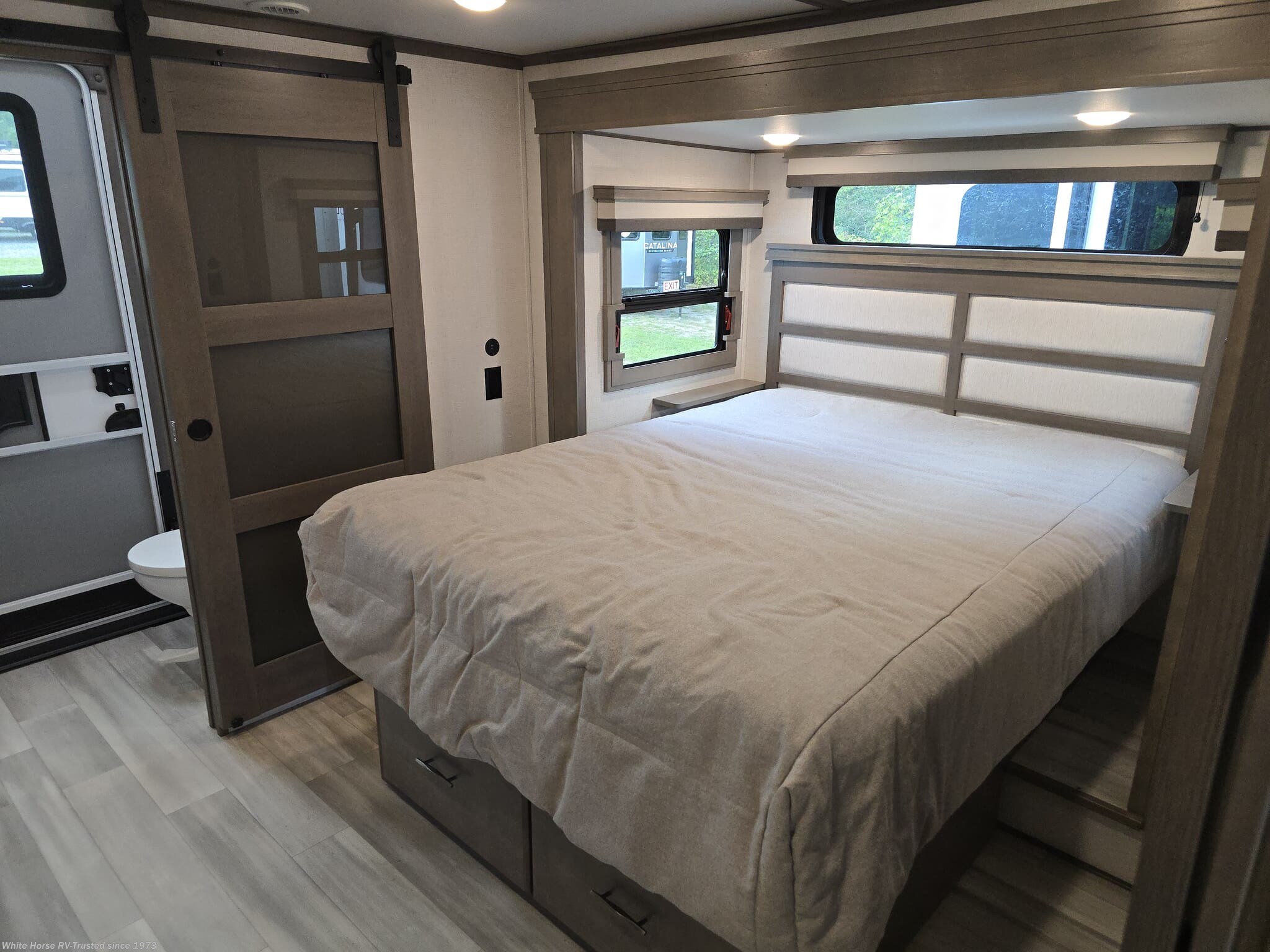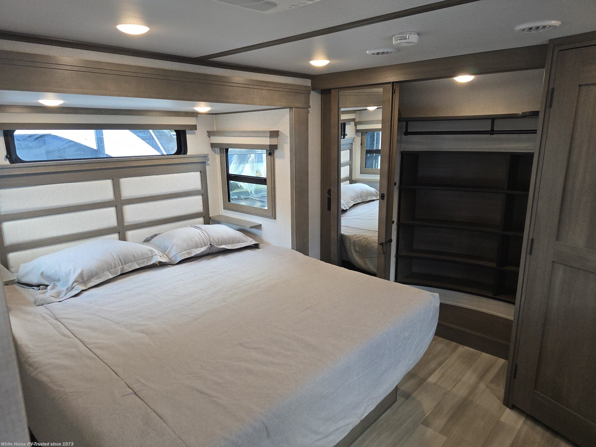 Prepped and ready in the rear suite—ideal for long stays or full-time RVers. -