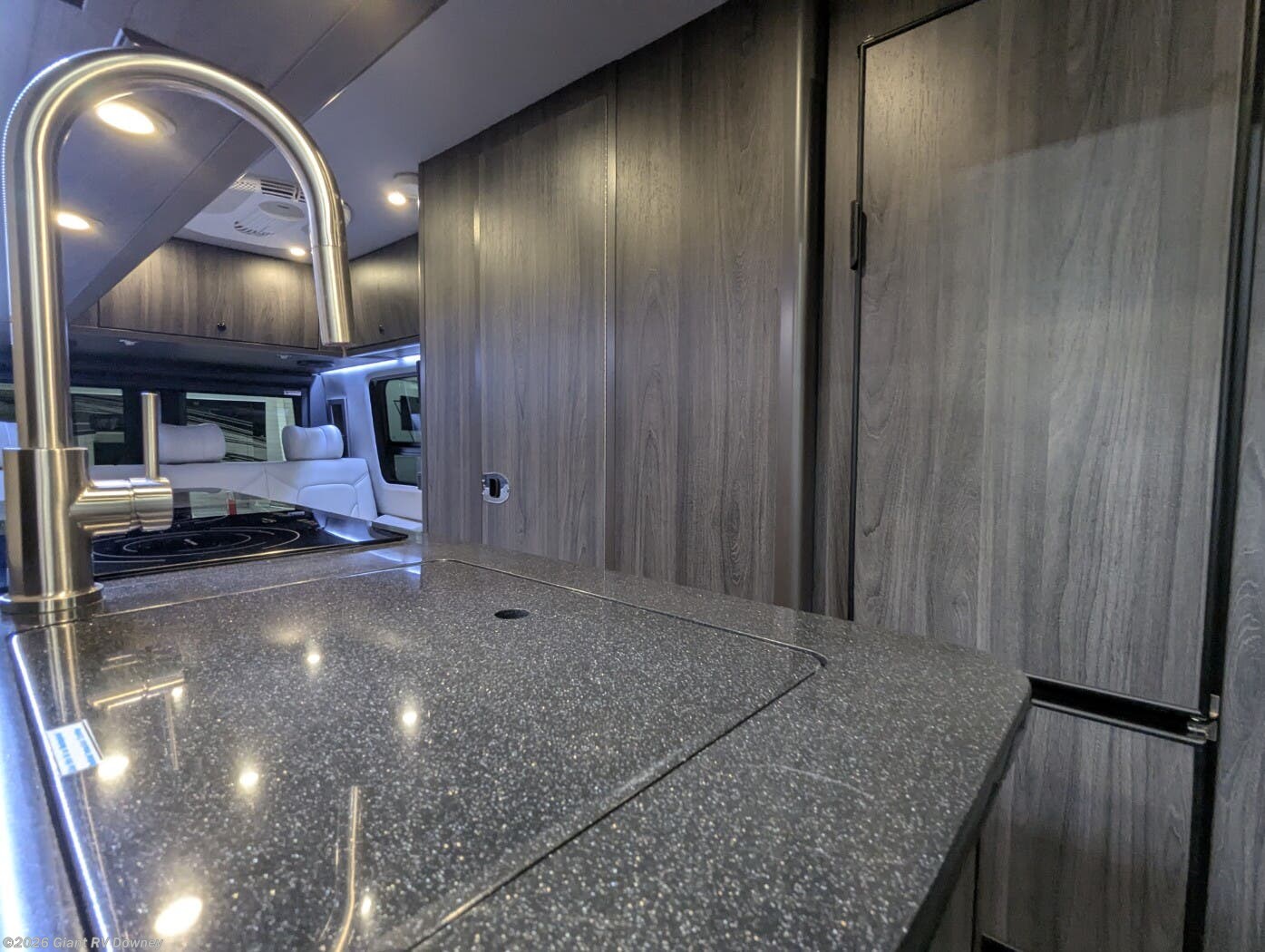 - Fully Equipped Galley & Wet Bath bringing full-home convenience to van-life with premium appliances, solid surface counters and a modern shower.