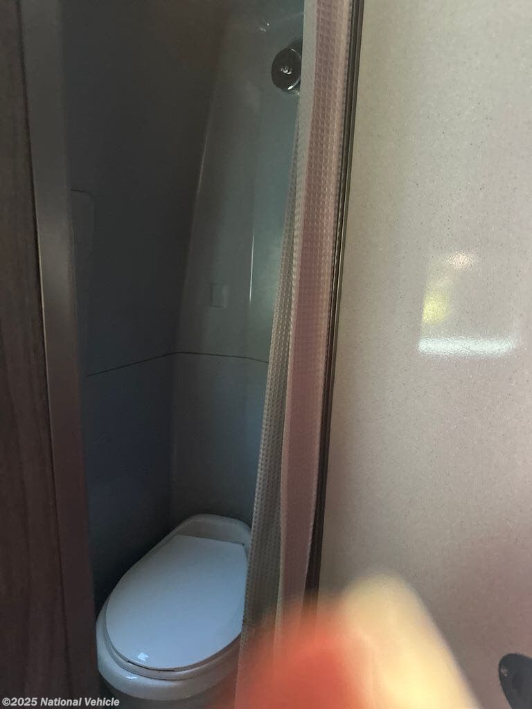 The compact yet fully equipped galley kitchen features a stainless-steel sink, induction cooktop, microwave, and a spacious refrigerator, ensuring you can enjoy gourmet meals on the road. The beautifully designed wet bath includes a stainless-steel sink, shower, and ceramic toilet, maximizing comfort in a streamlined space.