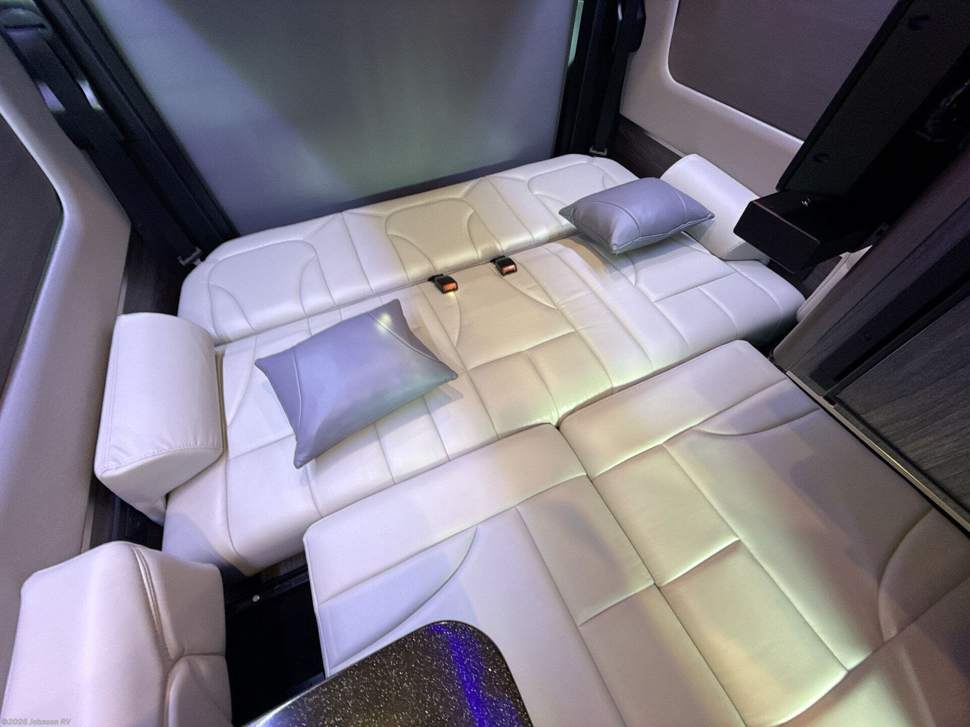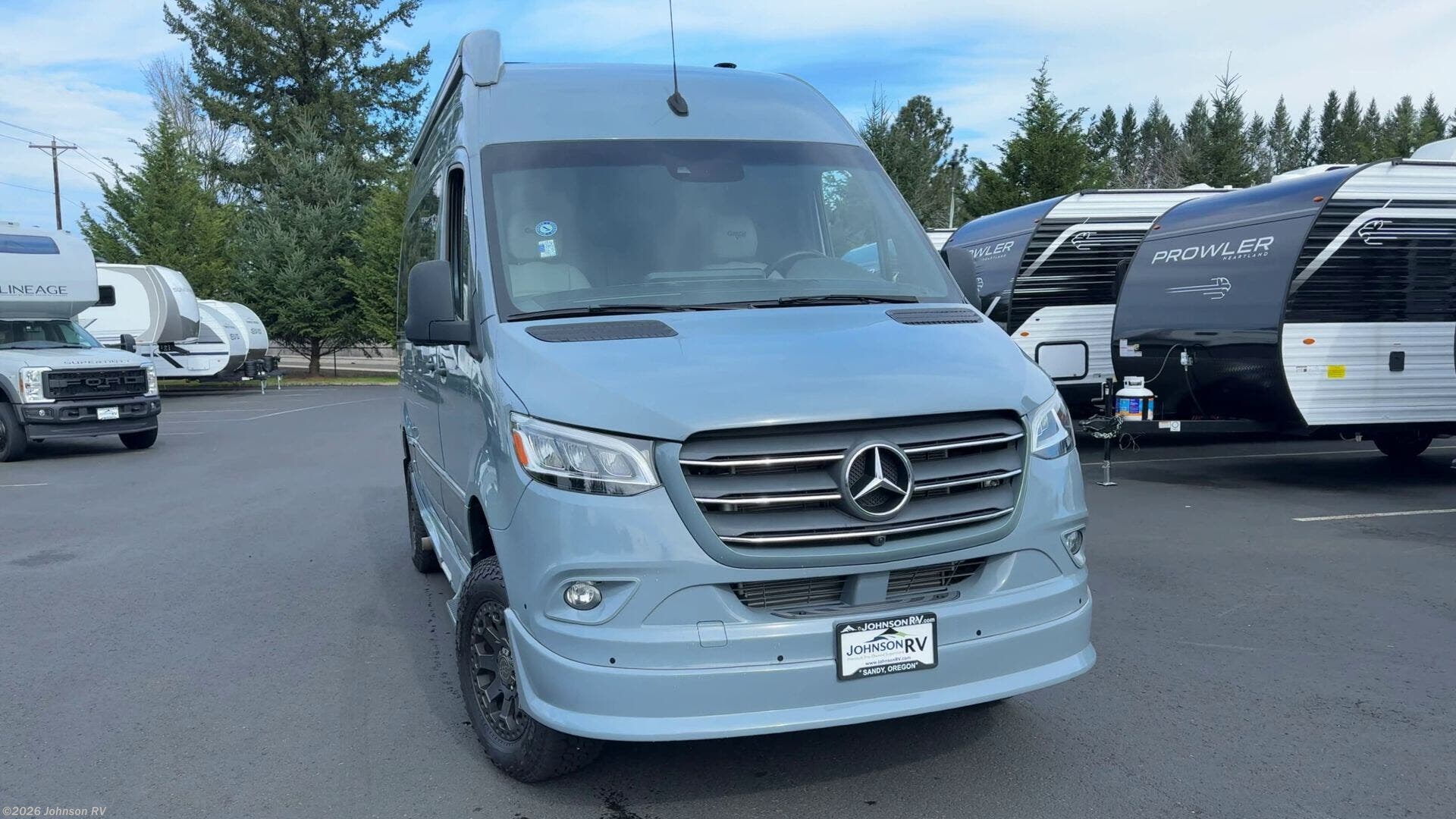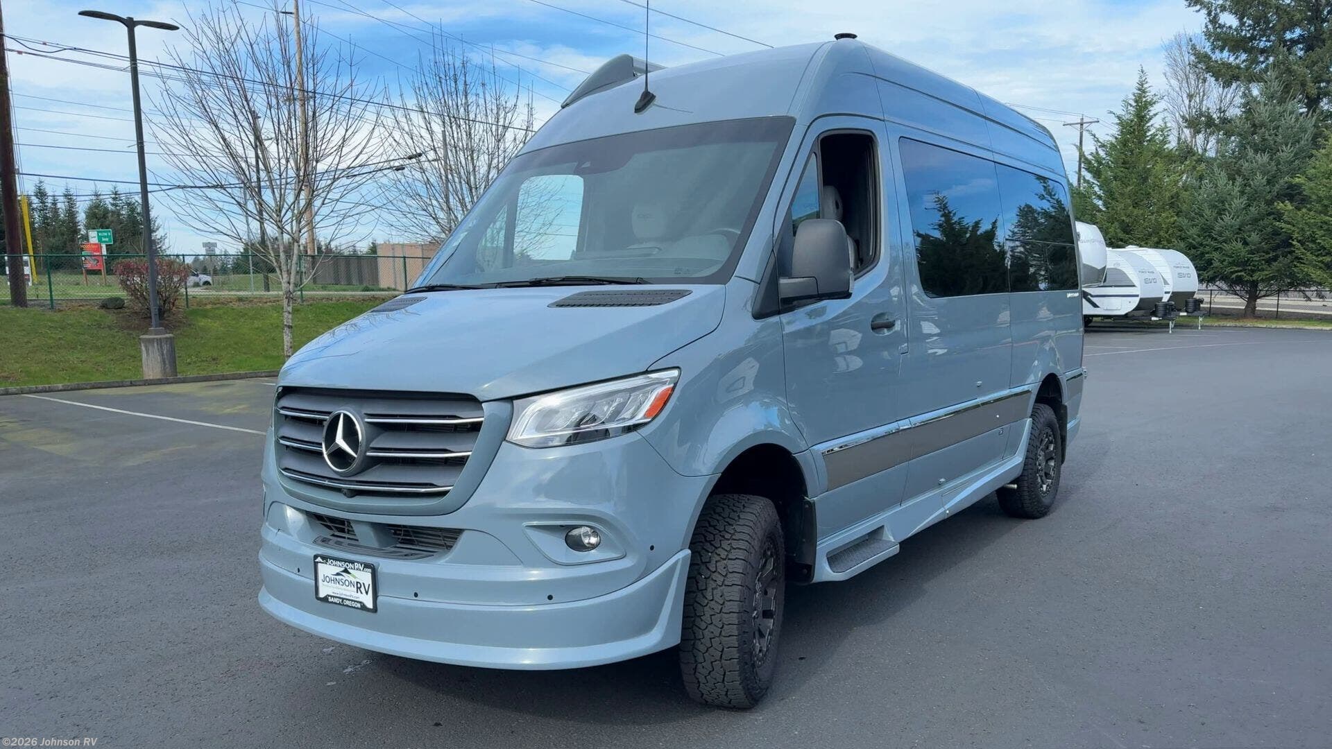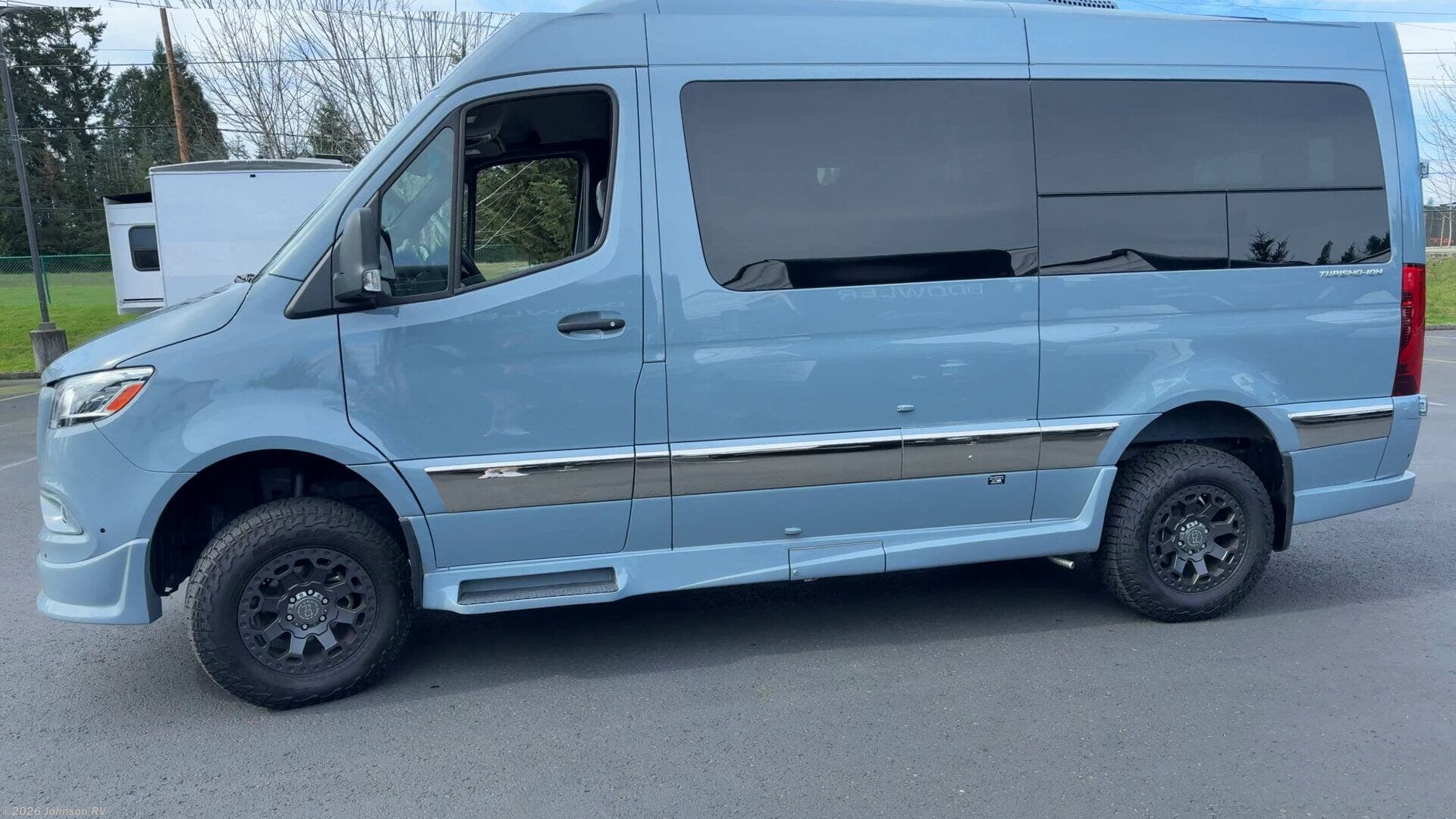 The 2023 Grech RV Turismo-ion 4x4 is a premium Class B diesel motorhome that combines luxury, innovation, and off-road capability. Built on the Mercedes-Benz Sprinter 2500 144" chassis with a 3.0L V6 turbodiesel engine producing 190 horsepower and 324 lb-ft of torque, paired with a 7-speed automatic transmission, it ensures reliable performance across diverse terrains. Inside, the Turismo-ion offers a thoughtfully designed living space featuring Ultraleather seating, Swiss Chrono hardwood cabinets, soft-touch walls and headliner, and LED ambient accent lighting. The memory foam power sofa bed provides comfortable sleeping arrangements, while the wet bath includes a ceramic toilet with foot flush, a retractable clothesline, a handheld showerhead, and a molded sink with vanity mirror. The van's advanced off-grid capabilities are powered by a 12V lithium-ion battery system, a 3,000-watt Xantrex inverter, and a 200W Zamp solar panel, allowing for extended trips without the need for a generator. The Timberline System provides continuous hot water and heat using diesel fuel.