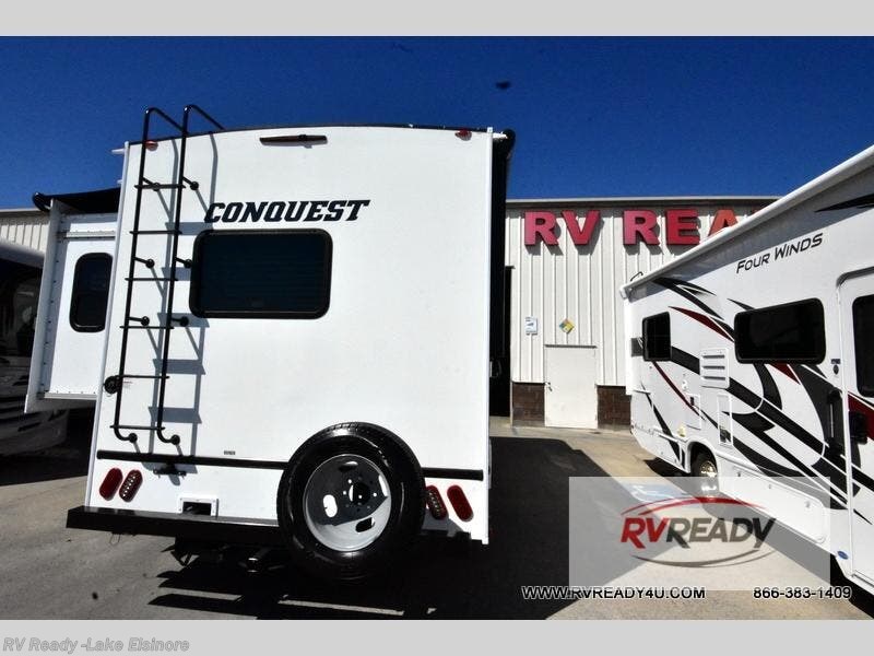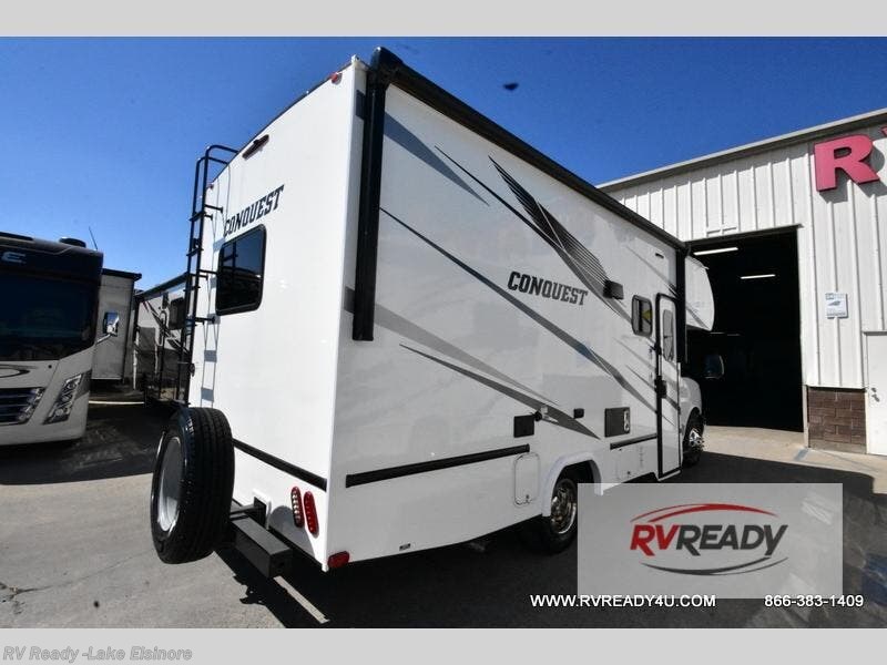 This Conquest Class C gas motorhome is a real treat to have as you cross the country making your way to scenic destinations! You will find an RV queen bed in the back of this coach so that you can stop and rest your head whenever it is convenient for you, and you will also be able to whip up a meal at any time with the three-burner range in the kitchen. The double-door refrigerator will store your dairy and produce so that it is fresh and ready to be snacked on, and you will enjoy having a closet to use for various items, like your garments or cleaning supplies.