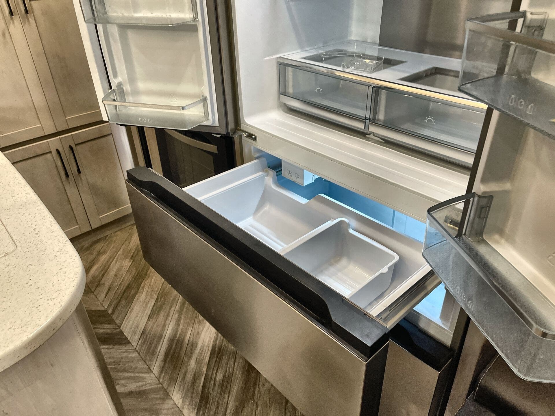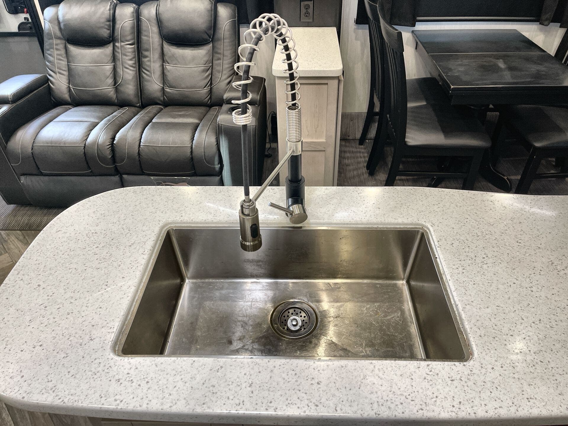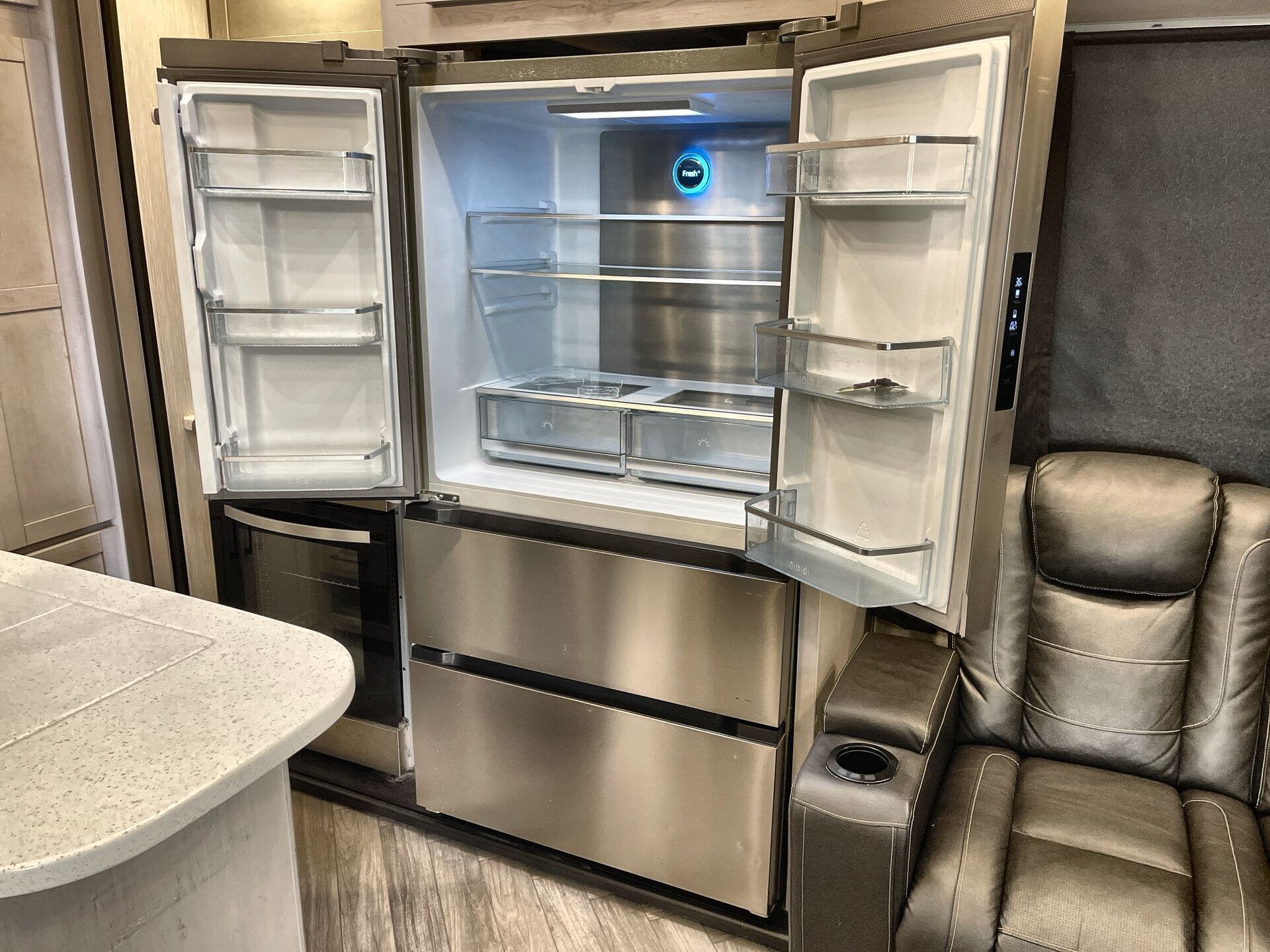 Free Standing Dinette w/Chairs, King Size Bed, Kitchen Sink, Medicine Cabinet, Overhead Cabinetry, Pantry, Shower, Theater Seating, Toilet, Two Full Baths