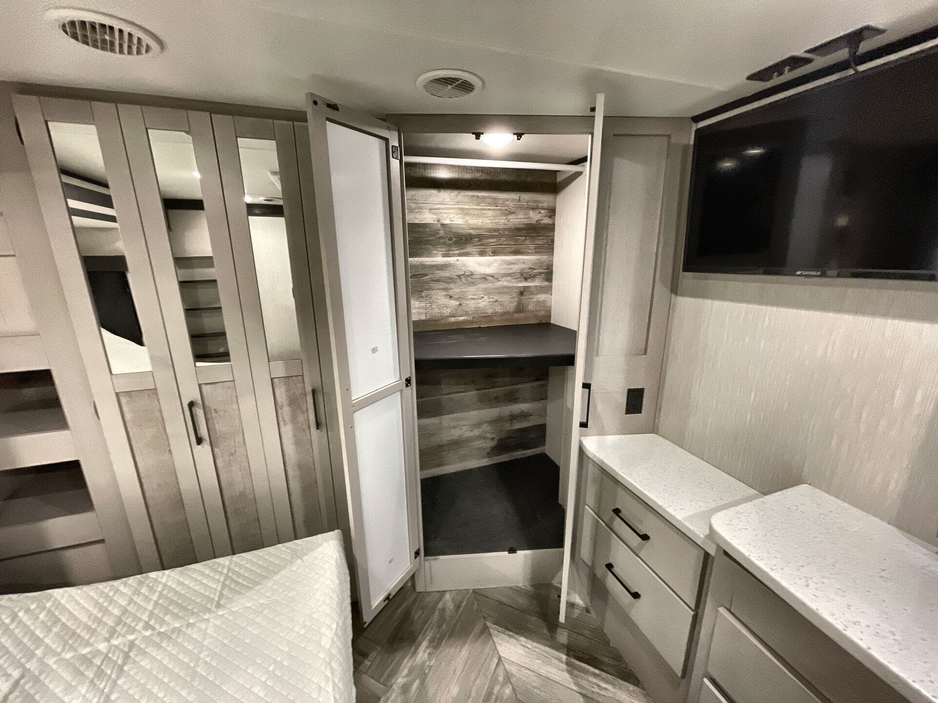 The Cyclone 4014C blends practical, family-friendly features with luxury touches that elevate the camping experience. With multiple living zones, two baths, and ample storage through pantry, overhead cabinetry, and a dedicated bedroom area, this fifth wheel is ideal for extended getaways or full-time travels. Lightly used (mileage shown as 5) and offered with stock number 15206A, it presents an exceptional value for buyers seeking a high-quality travel trailer that delivers comfort, performance, and convenience on every journey.