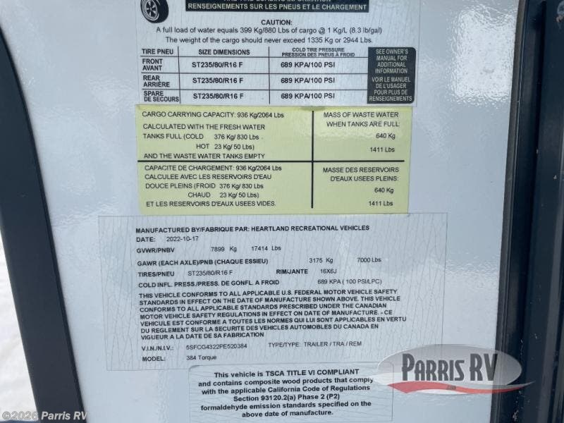 Request More Info on this 2023 Heartland Torque 384 Offered for sale by Parris RV