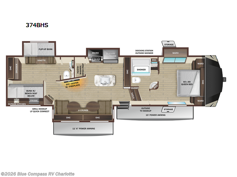 Highland Ridge Open Range fifth wheel 374BHS highlights:
