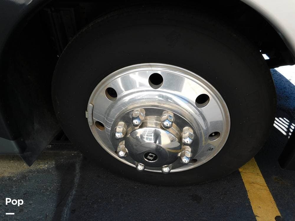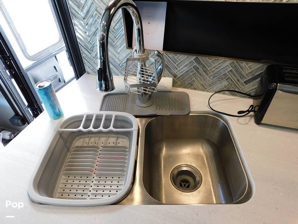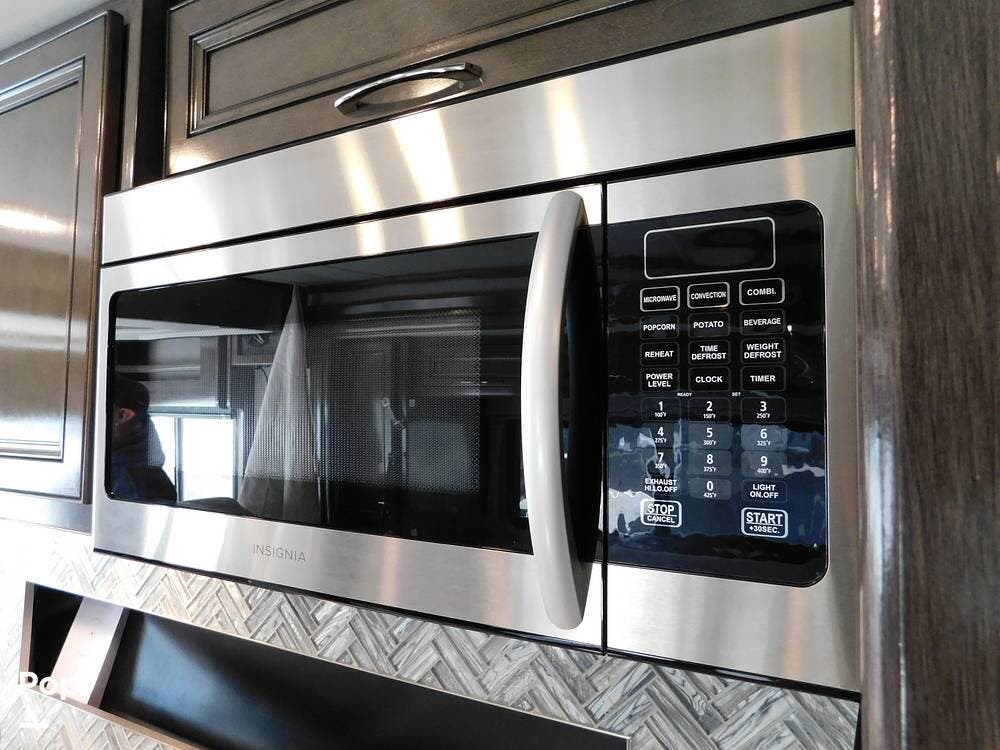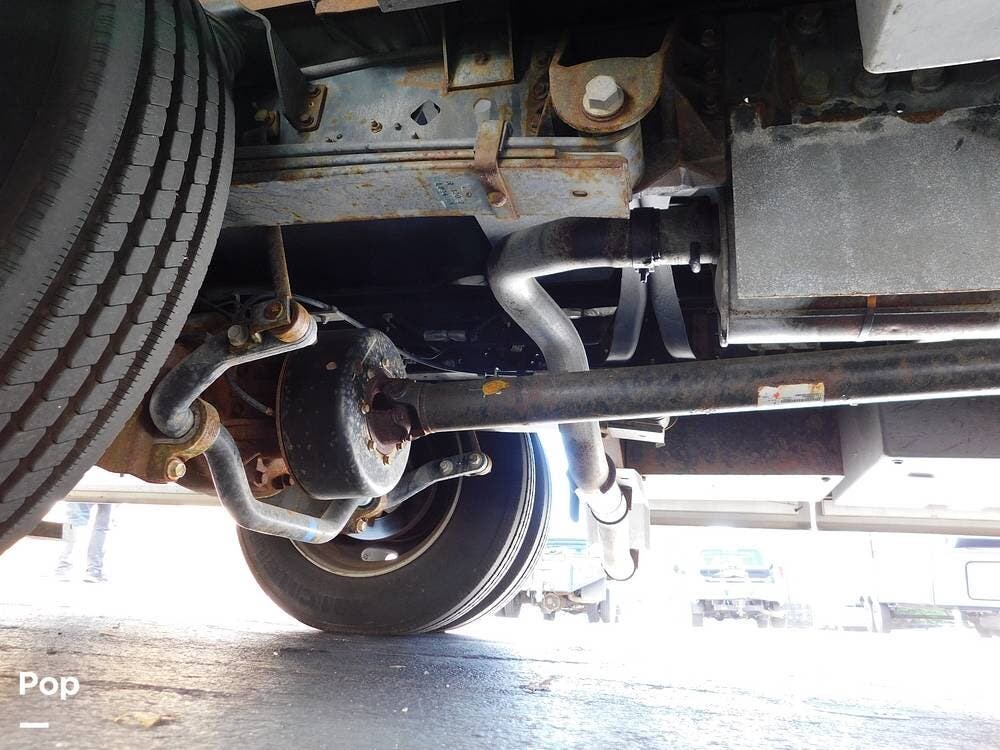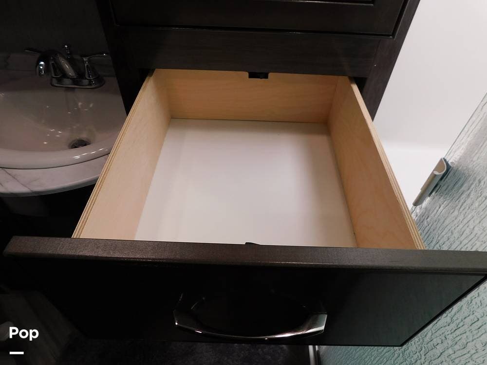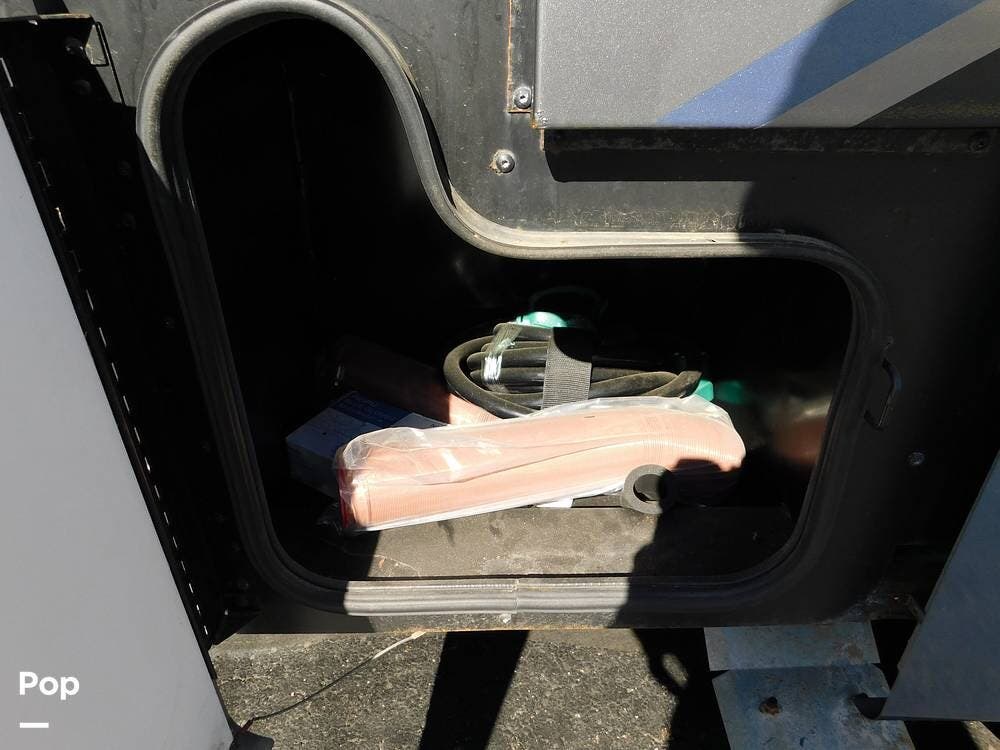 Outside, the Vacationer 35K is equipped with a large power awning, LED patio lighting, exterior TV and speakers for outdoor enjoyment. Generous basement storage compartments accommodate camping gear, sporting equipment, and other travel necessities. The motorhome is powered by a 7.3-liter V8 engine and supported by a reliable suspension system, ensuring smooth and efficient travel across various terrains.