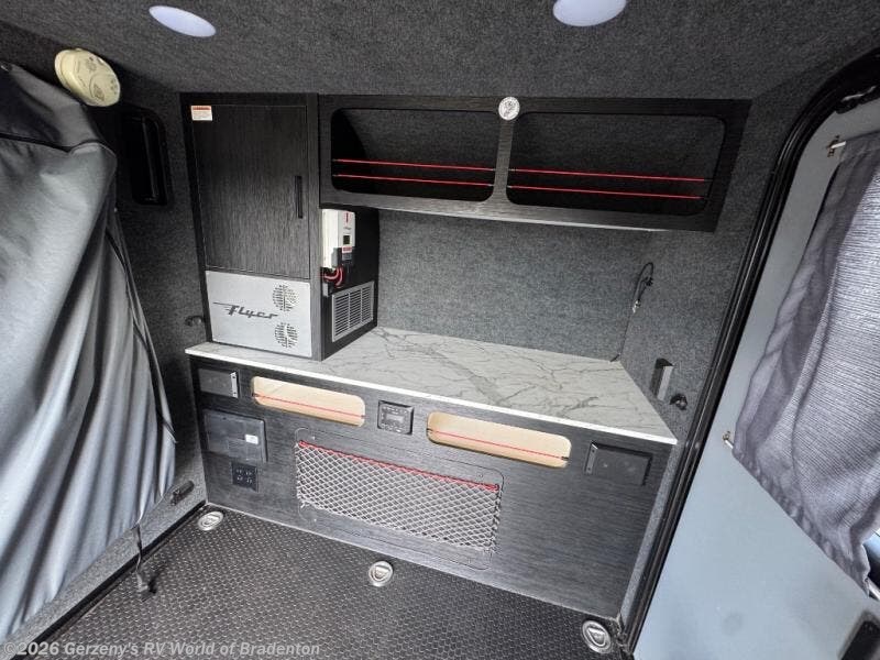 The inTech RV Flyer travel trailers and toy hauler expandable are ready for adventure whenever you are! With the all-aluminum, all-tube cage frame, the Flyer has been built with lightweight and long-lasting materials so that you can enjoy your unit for many, many years. The Flyer has a rugged design so that you can confidently explore new territory and go where traditional RVs cannot. The Flyer has a 2" rear receiver rated for 175 pounds which allows you to bring along your bikes, and the front tongue box is the perfect solution for your storage needs because it is easily accessible and out of the interior. The Flyer also comes with a Bluetooth stereo that has two speakers so that you can always have your best music playing, and the list of optional features is going to entice you to make your Flyer even more exceptional. The optional roof rack will allow you to bring along kayaks, and the optional A/C with heat is definitely going to be tempting to add.