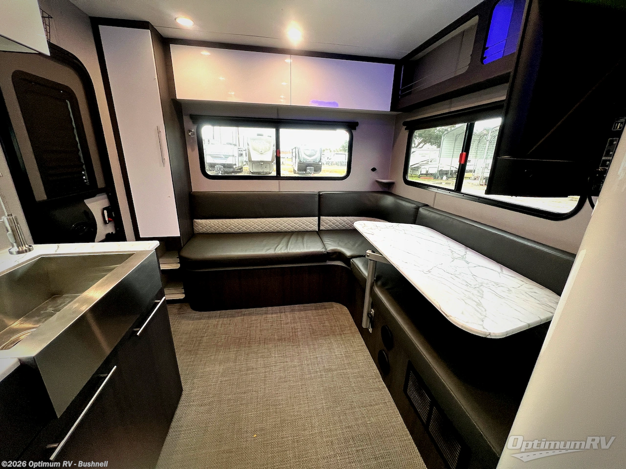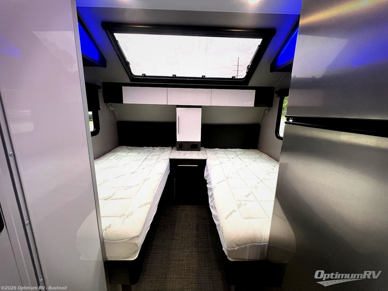 The O-R-V travel trailers and toy hauler by inTech RV allow you to experience adventure off the beaten path with its rugged exterior and lightweight construction provided by the all-aluminum fully welded cage frame. The power tongue jack will make setting up camp a breeze, plus there is a fold-away double entry step and exterior lighting for added convenience. Inside, you'll find a large farmhouse style sink, a MaxxAir vent for ventilation, plus infinity woven flooring. There is a Bluetooth stereo with four speakers and a 32" Smart TV included with each model, plus USB and 110V outlets to keep your electronics charged and ready to go. Further customize your O-V-R by adding the optional power awning or the optional solar package with 400 watts of solar power, 20 amp hours of lithium batteries, and a 2,000 watt inverter!