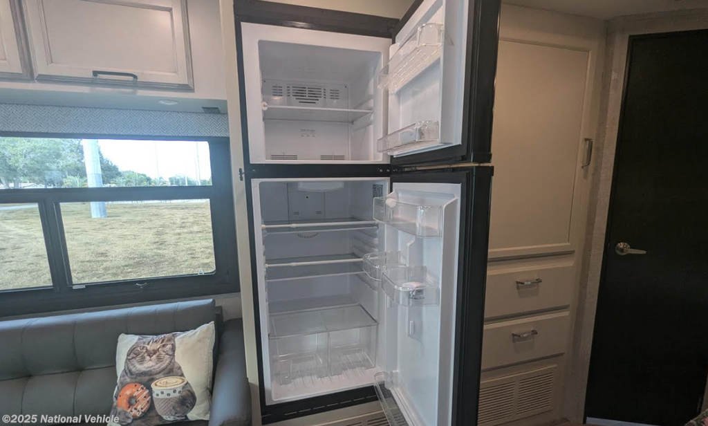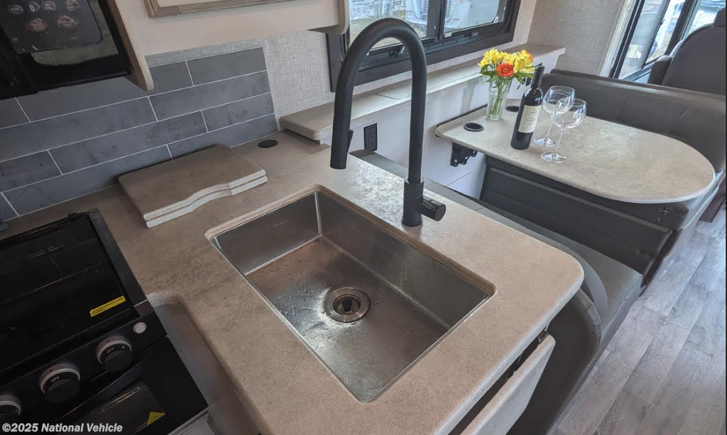 -Gourmet Kitchen: Full amenities, a countertop extension, and a large 10.7 cu ft Contour 12-volt residential refrigerator.