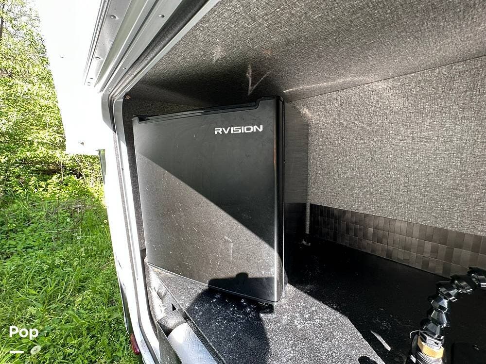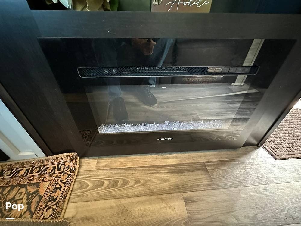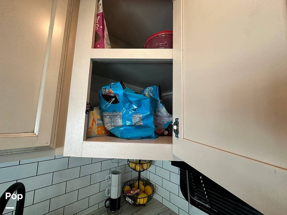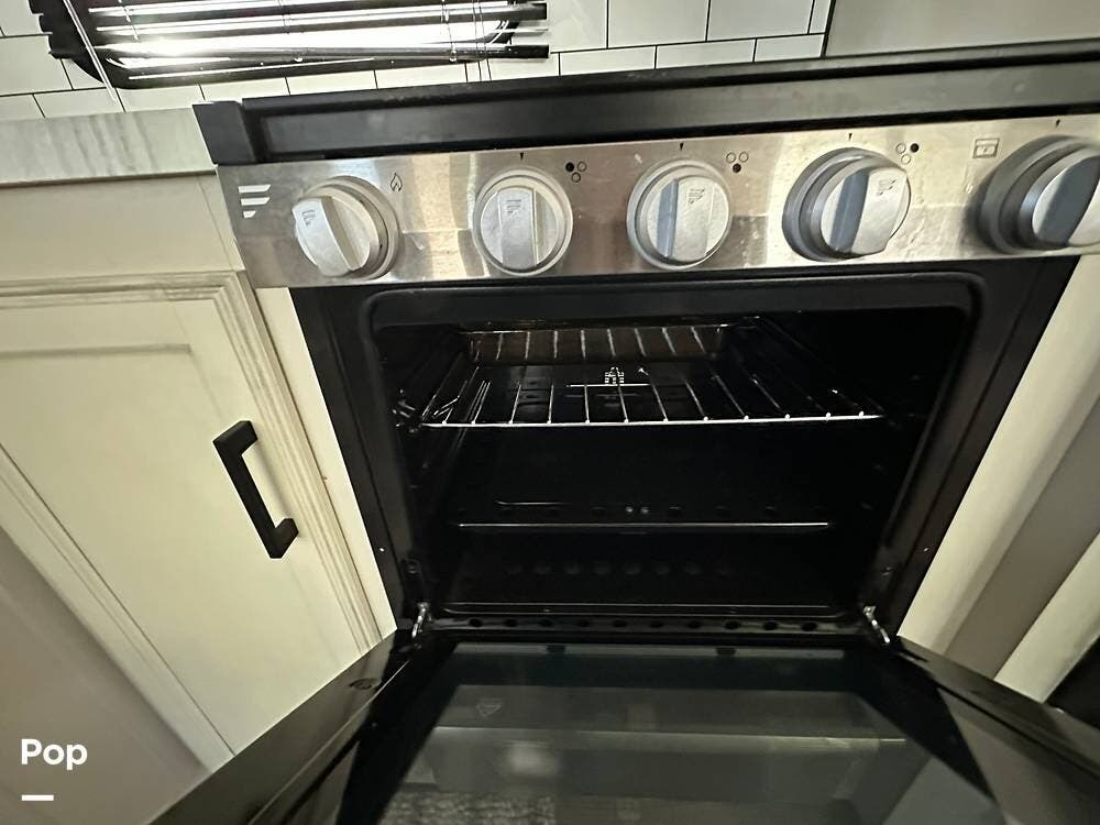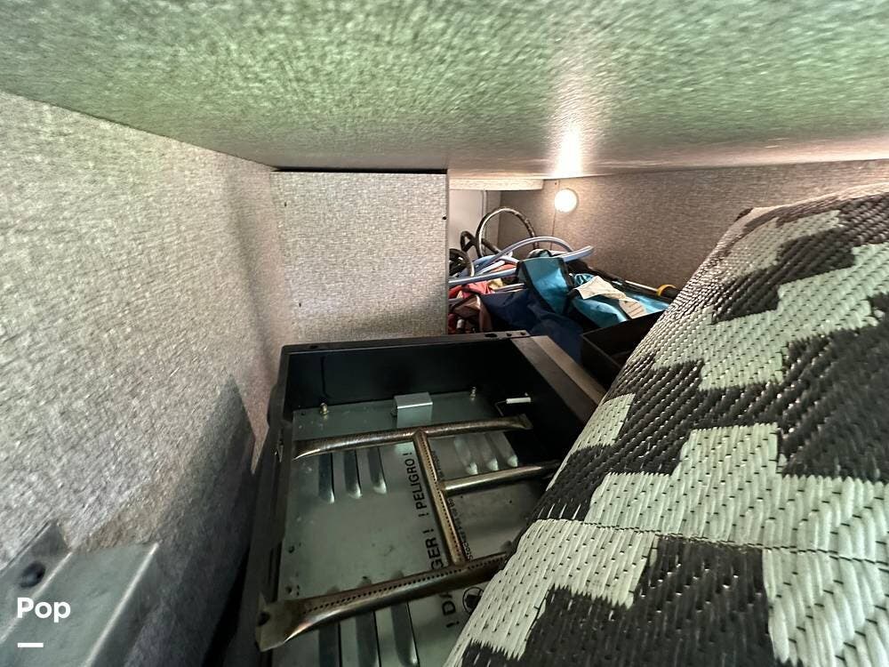 Stepping inside with the large pull-down steps, you will find the control panel for all lighting and systems on the right wall. To your left, two up-and-down bunk beds could sleep four smaller kids.