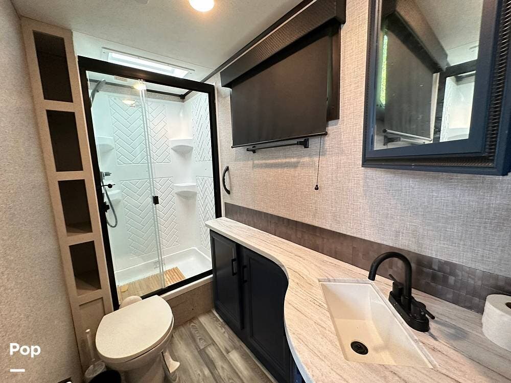 This is a one-owner 2023 Eagle 284BHOK with a very large living area for its size and all the amenities for a nice trip or weekend getaway.
