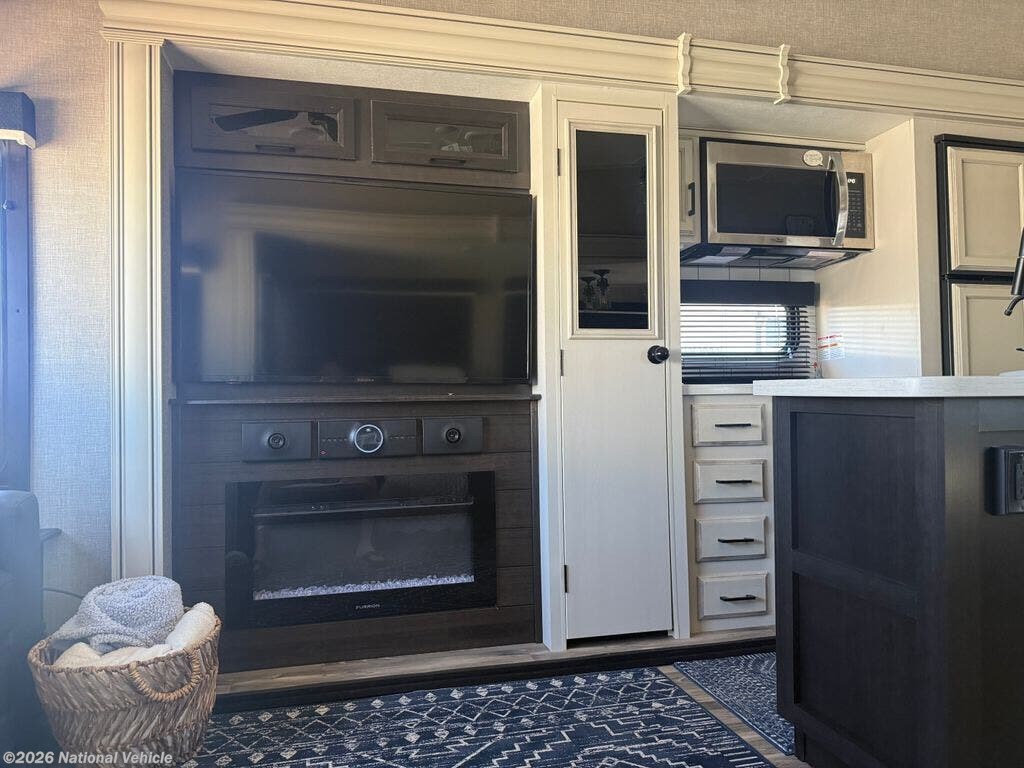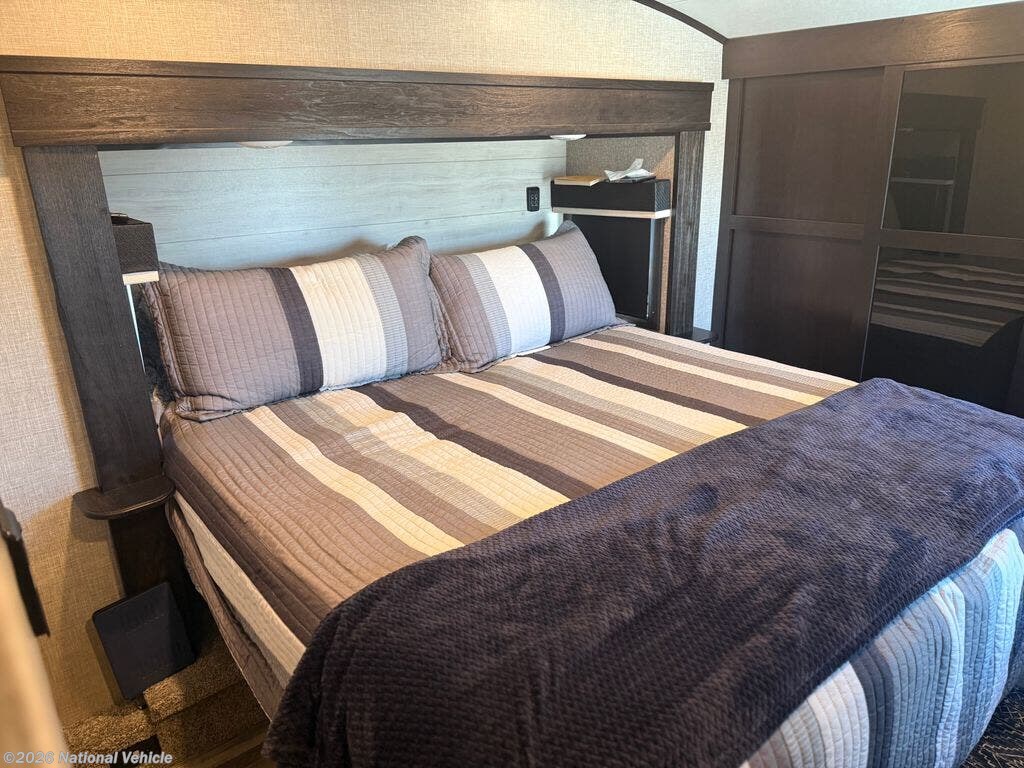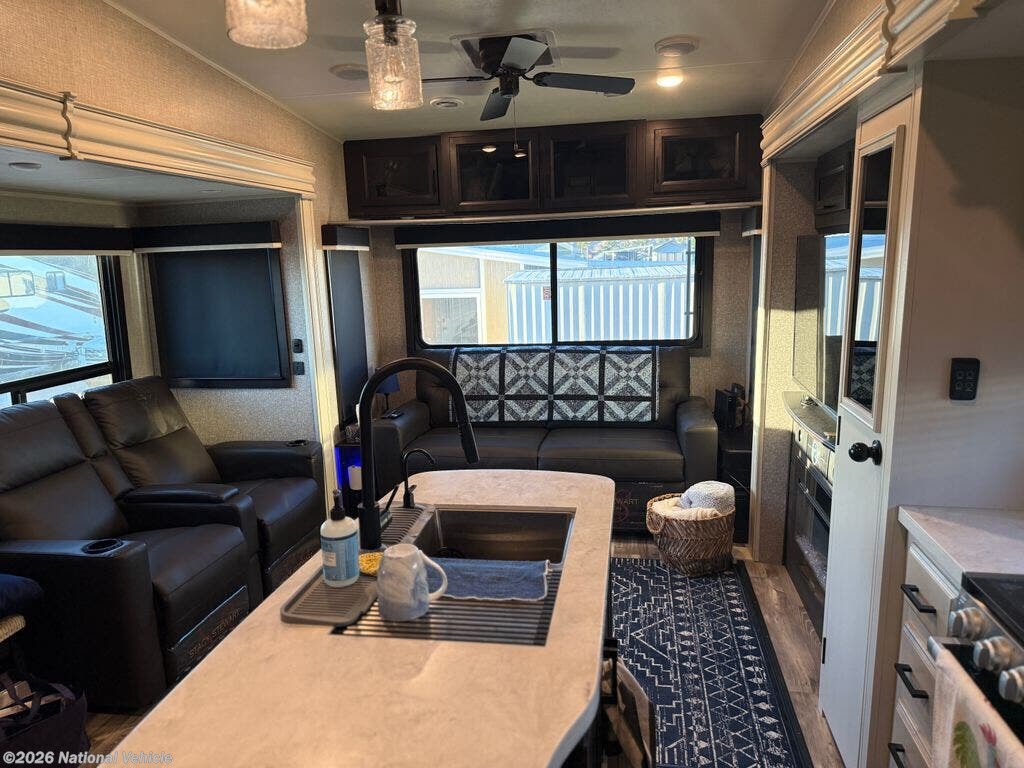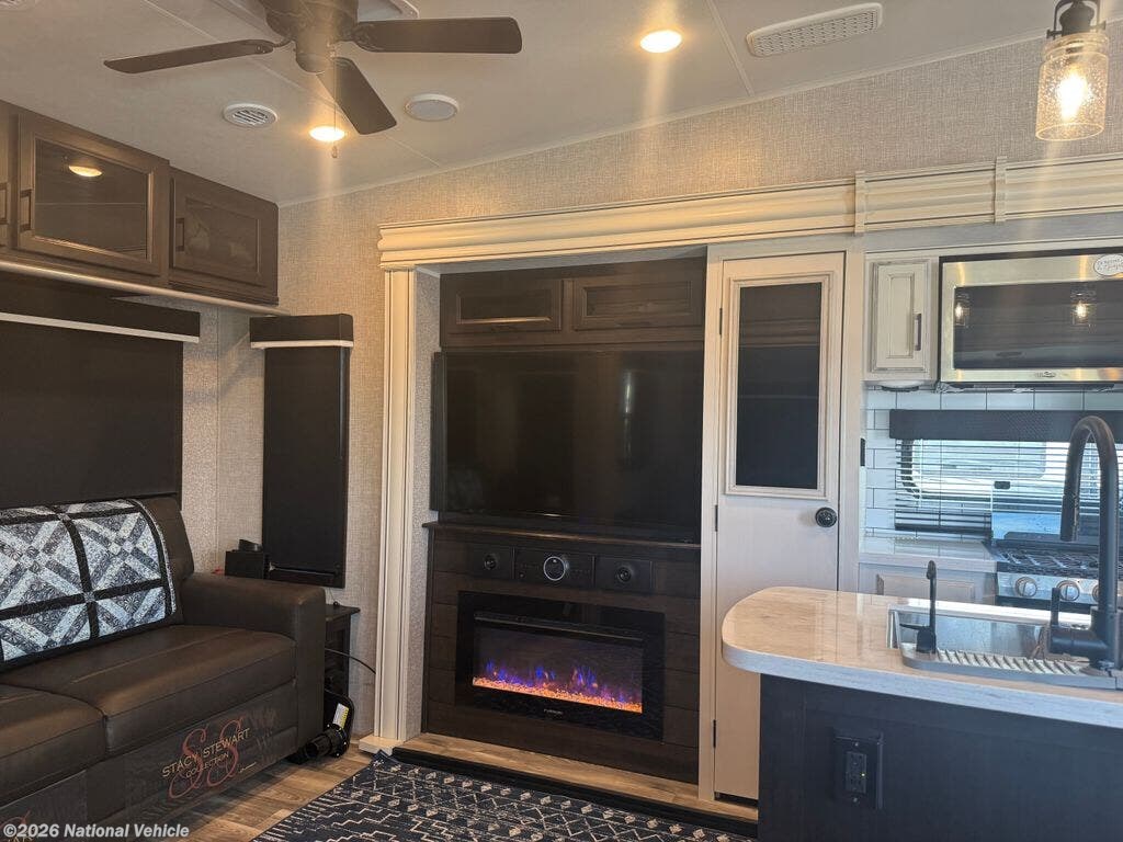Elevate your travel experience with the 2023 Jayco Eagle Series M-321 RSTS, a fifth-wheel crafted for adventurers who demand style, comfort, and freedom. Its expansive 3-slide floorplan creates a luxurious home-away-from-home, featuring elegant cabinetry, solid surface countertops, and modern appliances?including a large stainless-steel fridge, convection microwave, and three-burner cooktop?perfect for gourmet meals on the road. The spacious living area offers theater seating, a premium entertainment system, and warm LED lighting for the ultimate relaxation.