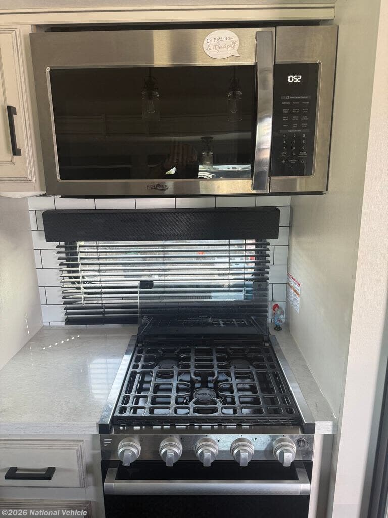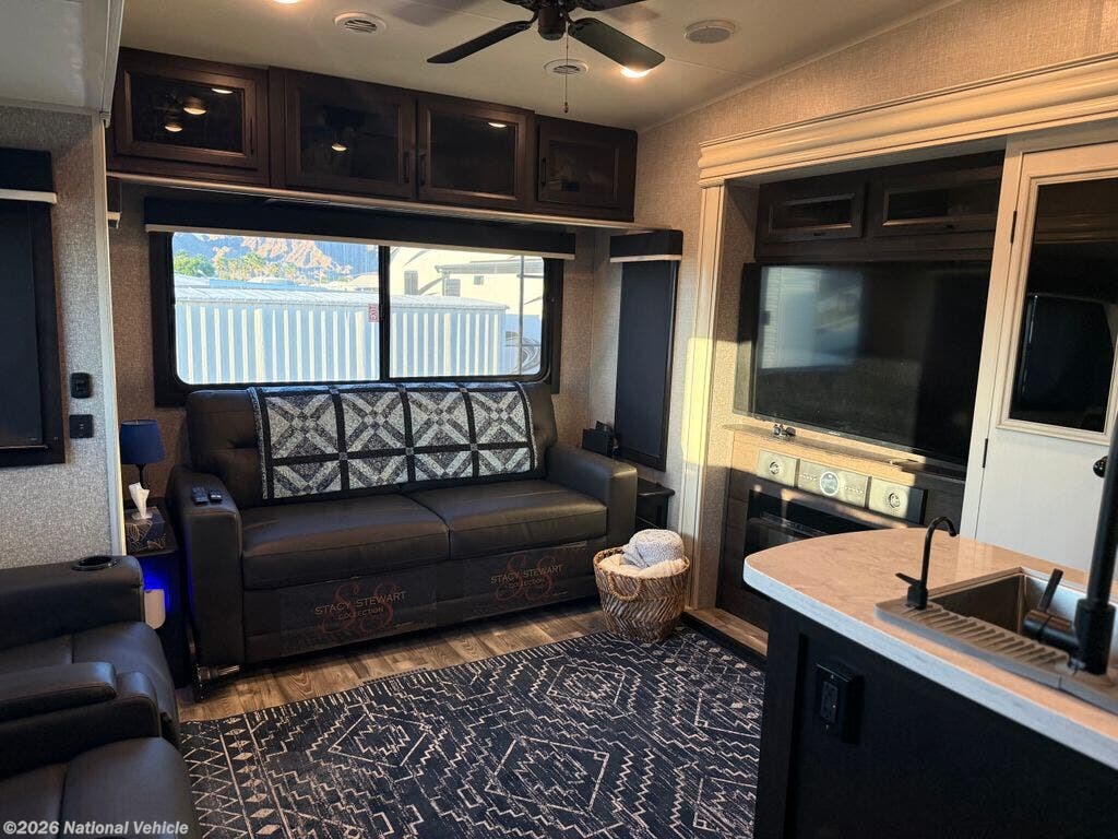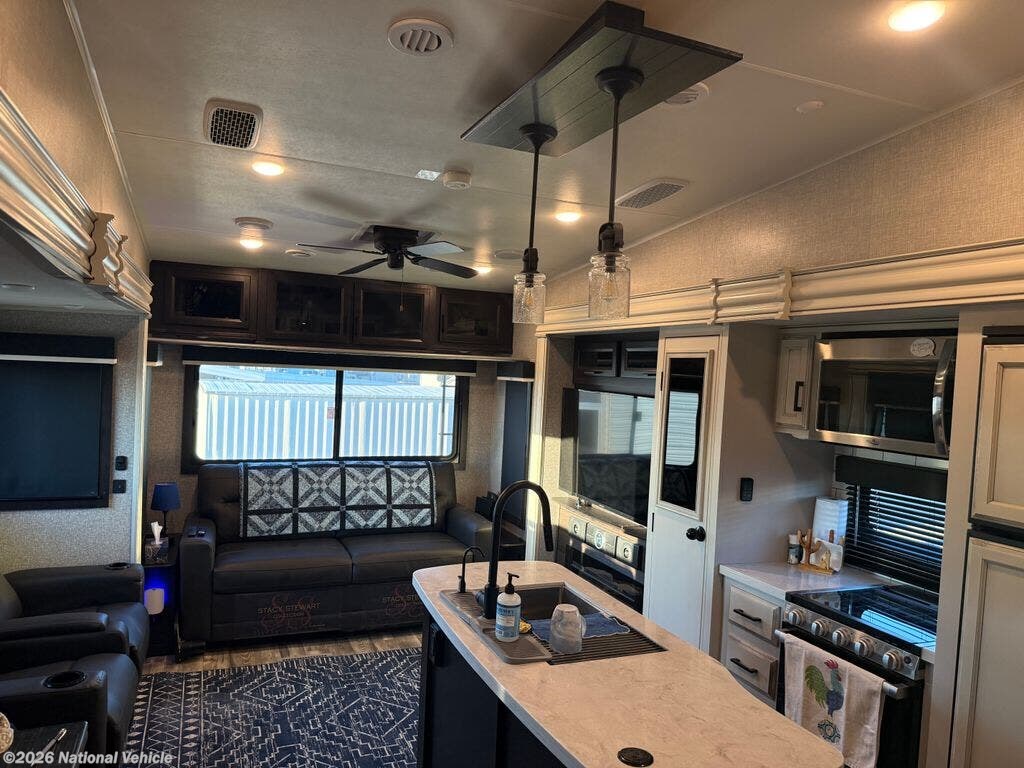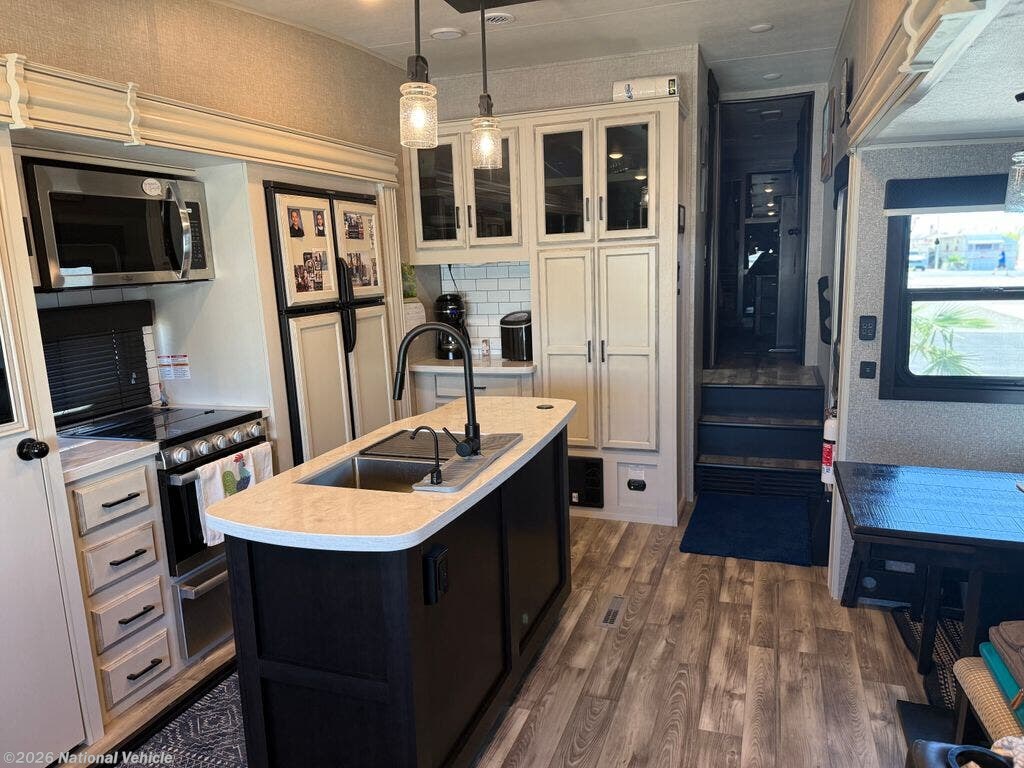 Elevate your travel experience with the 2023 Jayco Eagle Series M-321 RSTS, a fifth-wheel crafted for adventurers who demand style, comfort, and freedom. Its expansive 3-slide floorplan creates a luxurious home-away-from-home, featuring elegant cabinetry, solid surface countertops, and modern appliances?including a large stainless-steel fridge, convection microwave, and three-burner cooktop?perfect for gourmet meals on the road. The spacious living area offers theater seating, a premium entertainment system, and warm LED lighting for the ultimate relaxation.