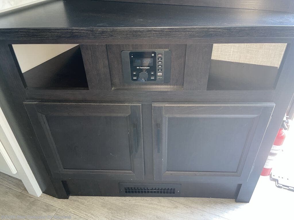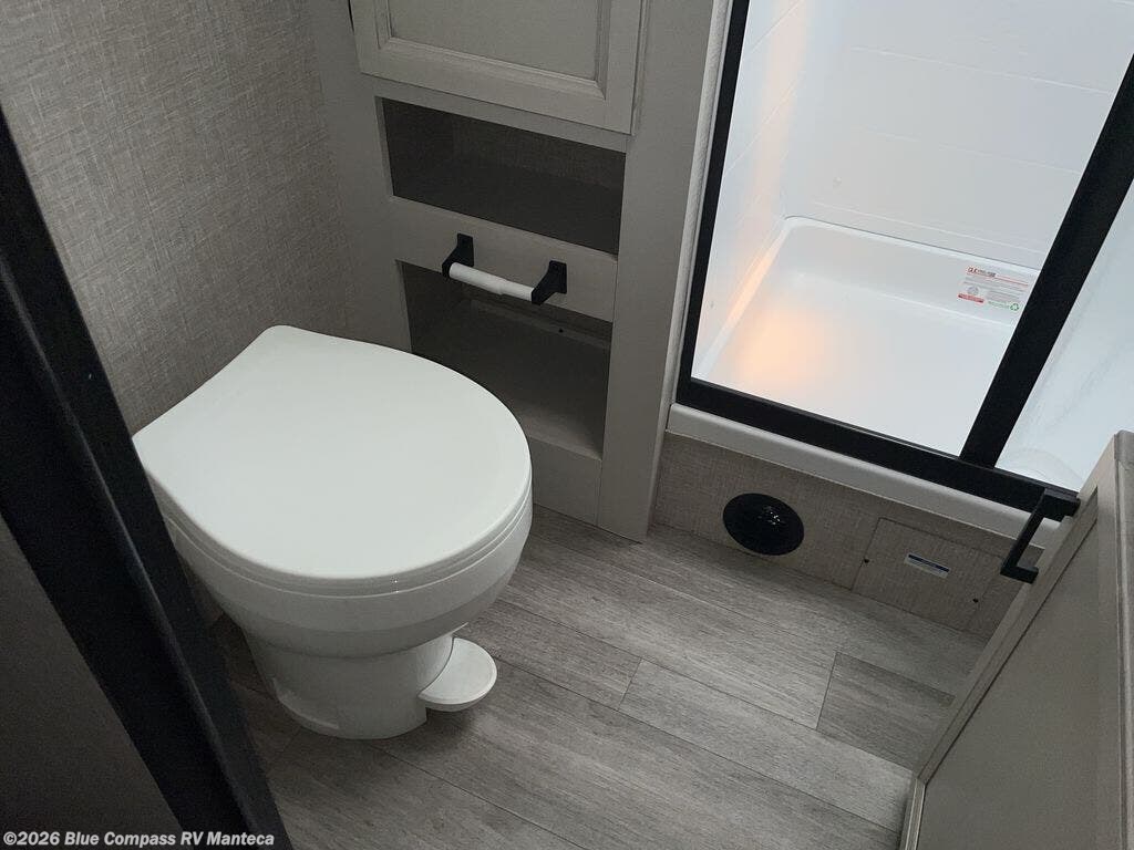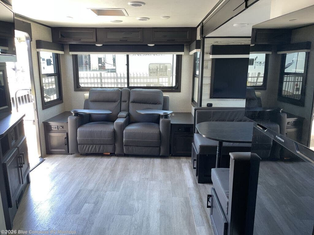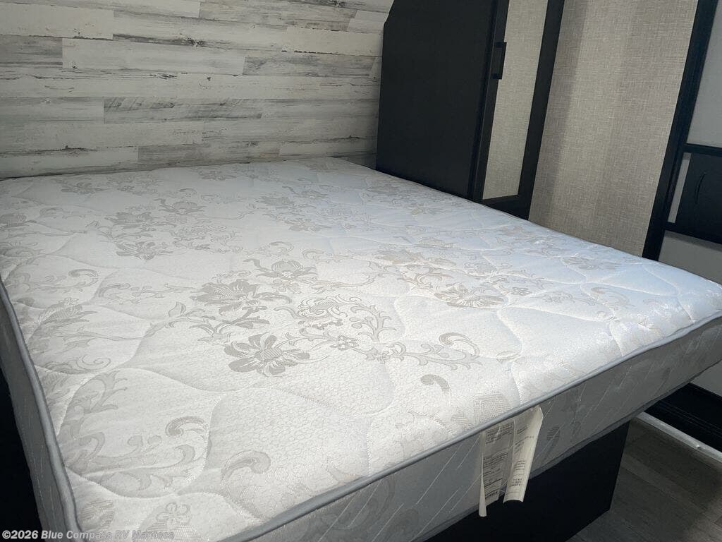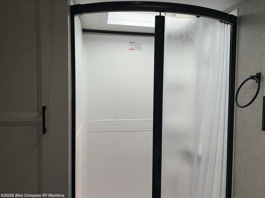 You will experience a smooth flow of traffic in and out of this travel trailer with dual entry doors! The front private bedroom has one of these entrances and a 60" x 75" queen bed with wardrobes on either side to keep your clothes looking nice. The full bathroom has a shower for you to freshen up in each morning and a linen closet to keep your towels close. You will appreciate all of the countertop space to prepare your meal and cook it on the three burner cooktop then enjoy it at the booth dinette. If there happen to be any leftovers then you can store them inside the 8 cu. ft. refrigerator. The rear theater seating comes with lights and trays to set your bowl of popcorn or you can choose to switch it out for the optional tri-fold sofa so an extra guest could stay the night.