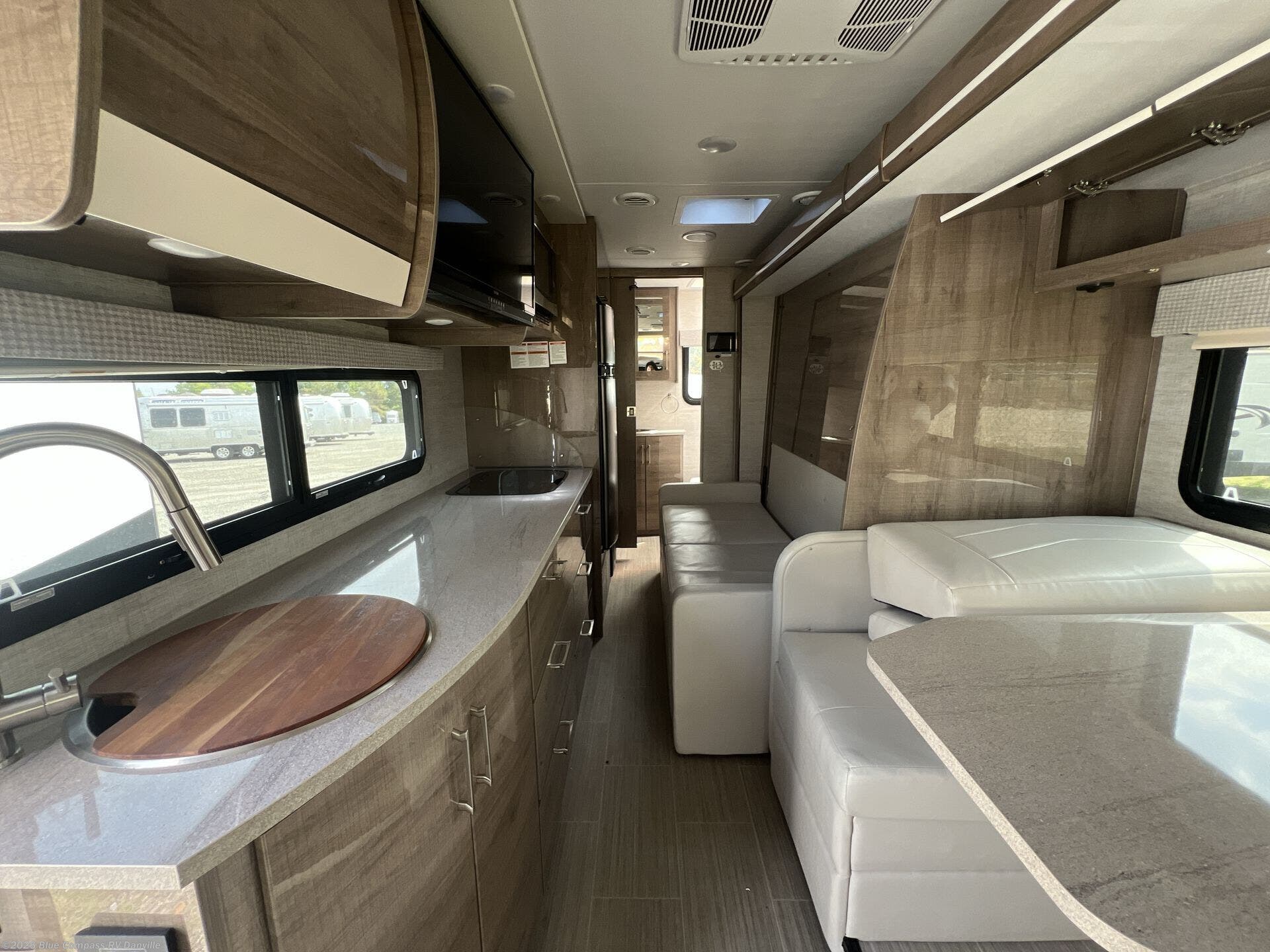 Each Melbourne Prestige Class C diesel motorhome by Jayco includes sidewall, rear wall and slide room walls that are bonded together with Stronghold VBL lamination to create the lightest, yet strongest construction available in the RV industry. There is also a one-piece, seamless front cap that resists wear and tear from years on the road. The interior offers an overhead bunk with 750 lbs. capacity which is way over the industry standard and allows for more overnight guests. And you will find seatbelts installed in every designed seating location to keep your favorite people safe. Other standout features include the JAYCOMMAND powered by Fireplay giving you full control of key operations from your phone or tablet, a Truma AquaGo Comfort Plus tankless water heater, a water filtration system, ball-bearing drawer guides, and an 80-inch interior ceiling height with a padded vinyl ceiling giving you more space to enjoy.