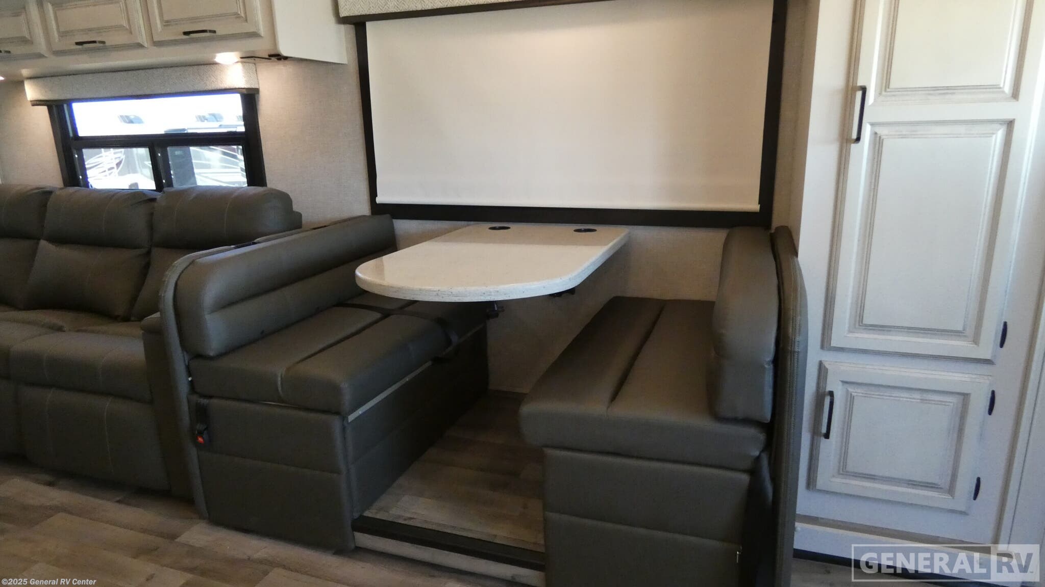 Jayco Precept Class A gas motorhome 34B highlights: Private Bedroom Fireplace Double Slides Exterior TV Booth Dinette Stop thinking and start living like a boss in this Precept Class A gas motorhome! You will be able to keep the whole gang happy with delicious meals made with the Furrion all-in-one cooktop and oven and the residential microwave, and you can keep all of your ingredients fresh and cool in the residential refrigerator. A large slide in the main living area offers you more floor space so that you can easily get to the back bedroom or the front cab area, and the separated bathroom is just what you need if you have multiple people getting ready in the morning. The Jayco Precept Class A gas motorhome comes with some features that you'll only find on a Jayco product, like the JRIDE PLUS which offers you a powerful blend of precise handling and renowned stability on the road and the JAYCOMMAND system powered by Firefly which allows you to control your coach's operations from just about anywhere with your phone. You'll find two-point lap seatbelts in all designated seating locations, and the one-piece, seamless fiberglass front and rear caps resist wear and tear over the years. The Precept also offers you the lightest yet strongest construction in the industry with the Stronghold VBL lamination on the roof, floor, and sidewalls. You'll also be very pleased to find a 120" panoramic windshield (the largest in the industry), automatic hydraulic leveling jacks, an OnanĀ® Marquis Gold Genset 5,500W gas generator with auto-gen start, and a GirardĀ® tankless LP water heater.