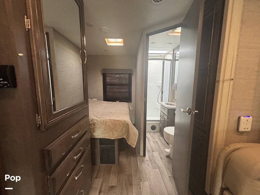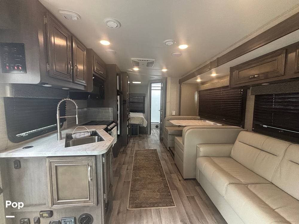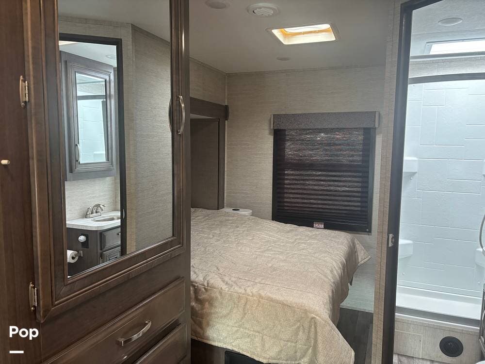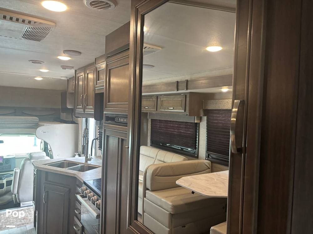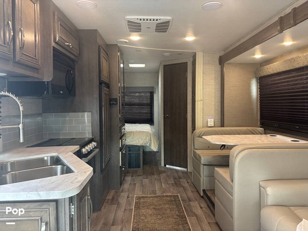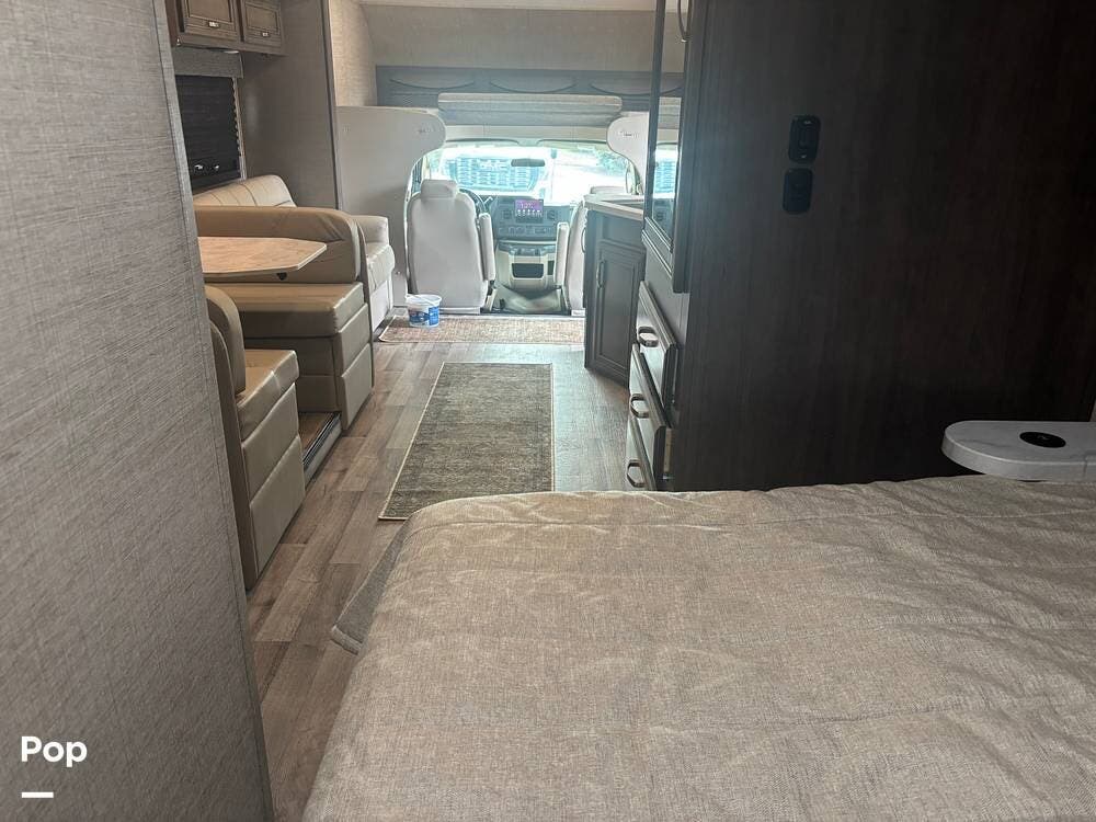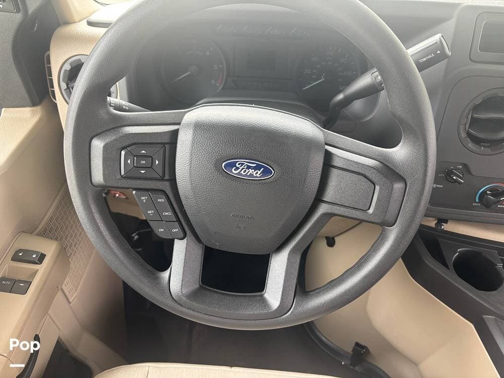 Built on the Ford E-450 platform, it is powered by a 7.3-liter V8 gasoline engine producing approximately 350 horsepower and 468 lb-ft of torque, paired with a TorqShift automatic transmission. This combination provides strong towing capability and confident highway performance, making it an excellent choice for both long road trips and weekend getaways.