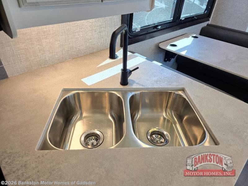 Each Jayco Redhawk Class C gas motorhome includes the JRIDE® system that features a computer-balanced driveshaft, standard front and rear stabilizer bars, Hellwig helper springs, and rubber isolation body mounts to absorb road shock, dampen noise and minimize vibrations. The cab offers a Sony® infotainment center with Apple CarPlay and Android Auto, backup and side-view cameras for safety and easier parking, and a tire pressure monitoring system. inside you will love the headroom with a 7-foot ceiling height, the LED-lit pressed countertops and decorative kitchen backsplash, plus the stainless steel bathroom sink when it is time to clean up. Looking for value, technology and comfort, choose your favorite Redhawk today!
