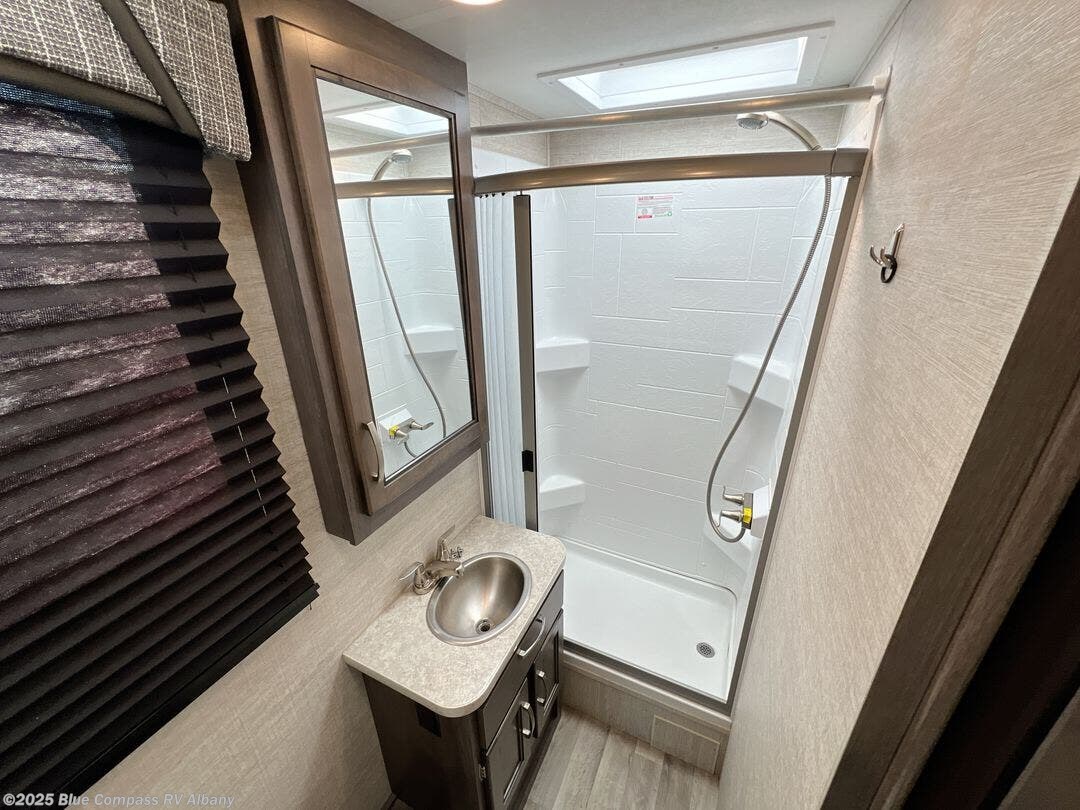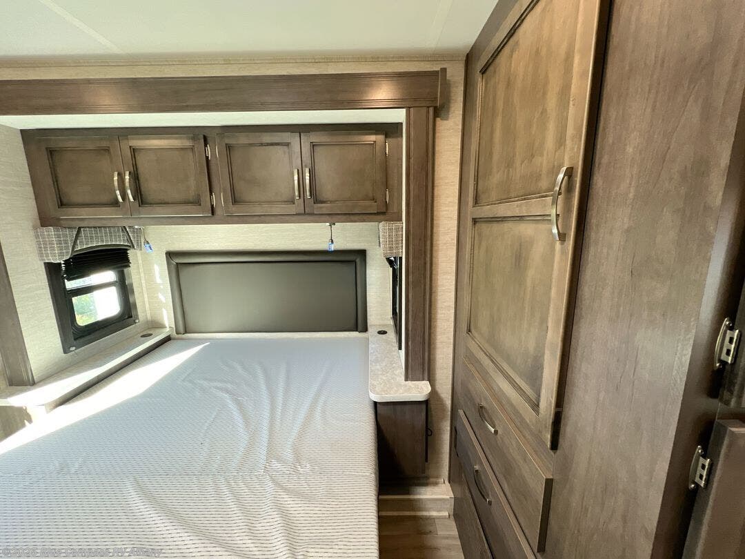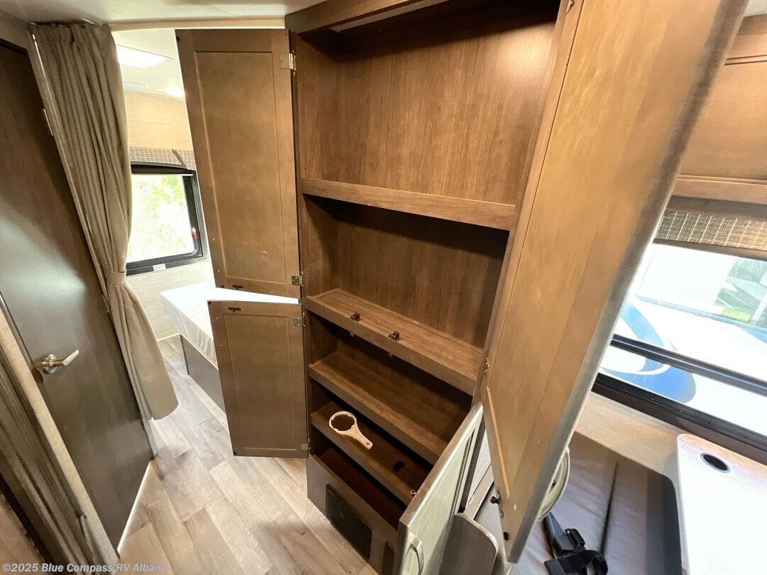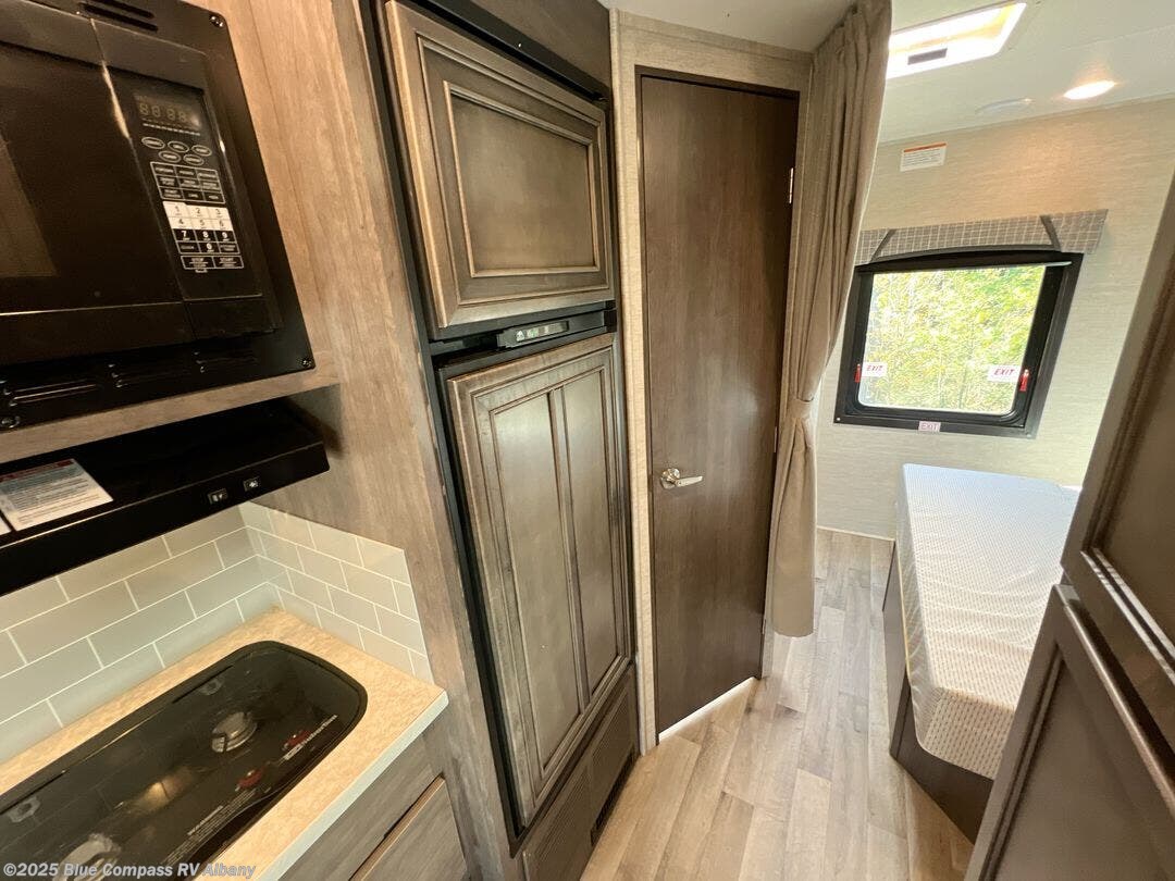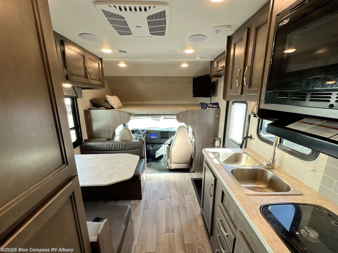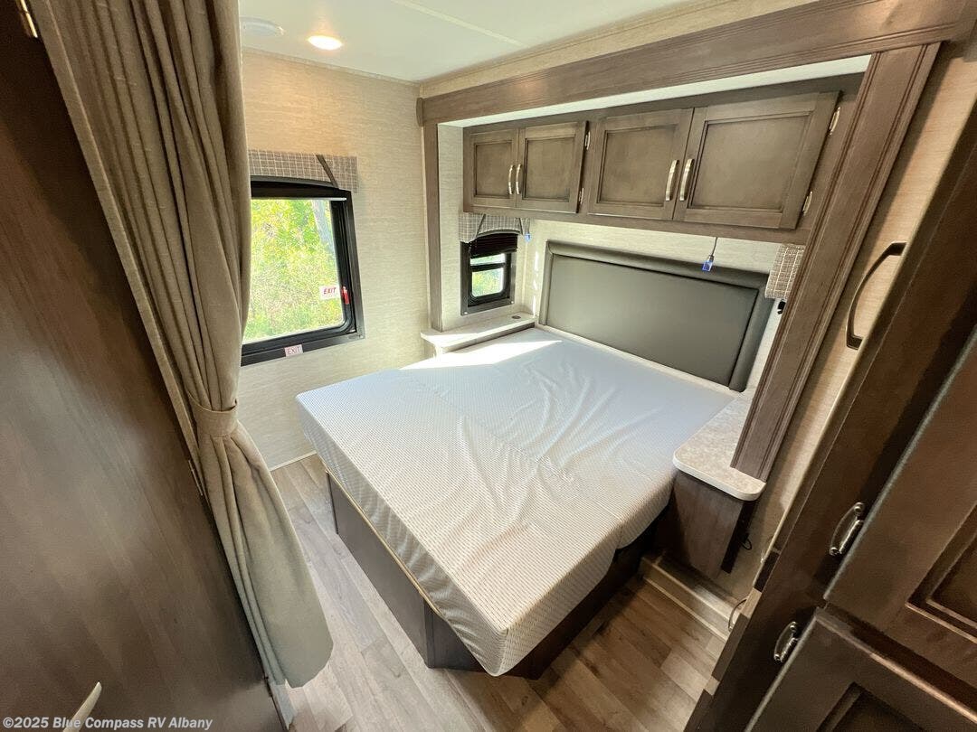 There's a comfortable place to sleep for everyone in this motorhome! From the corner 60" x 70" queen bed that slides out to the bunk over cab and even the 42" x 70" booth dinette once converted. You can store your favorite snacks and hang up your clothes in the wardrobe/pantry. The chef can prepare delicious meals with the two burner cooktop and if there happens to be any leftovers then they can be stored in the 8 cu. ft. refrigerator. The rear corner bathroom has a 24" x 36" shower that you are sure to enjoy after a long day of traveling!