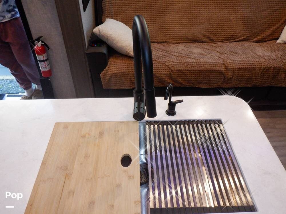 You also have a 12 gallon water heater with a residential size refrigerator, microwave, stove and over to take care of your guest in style.