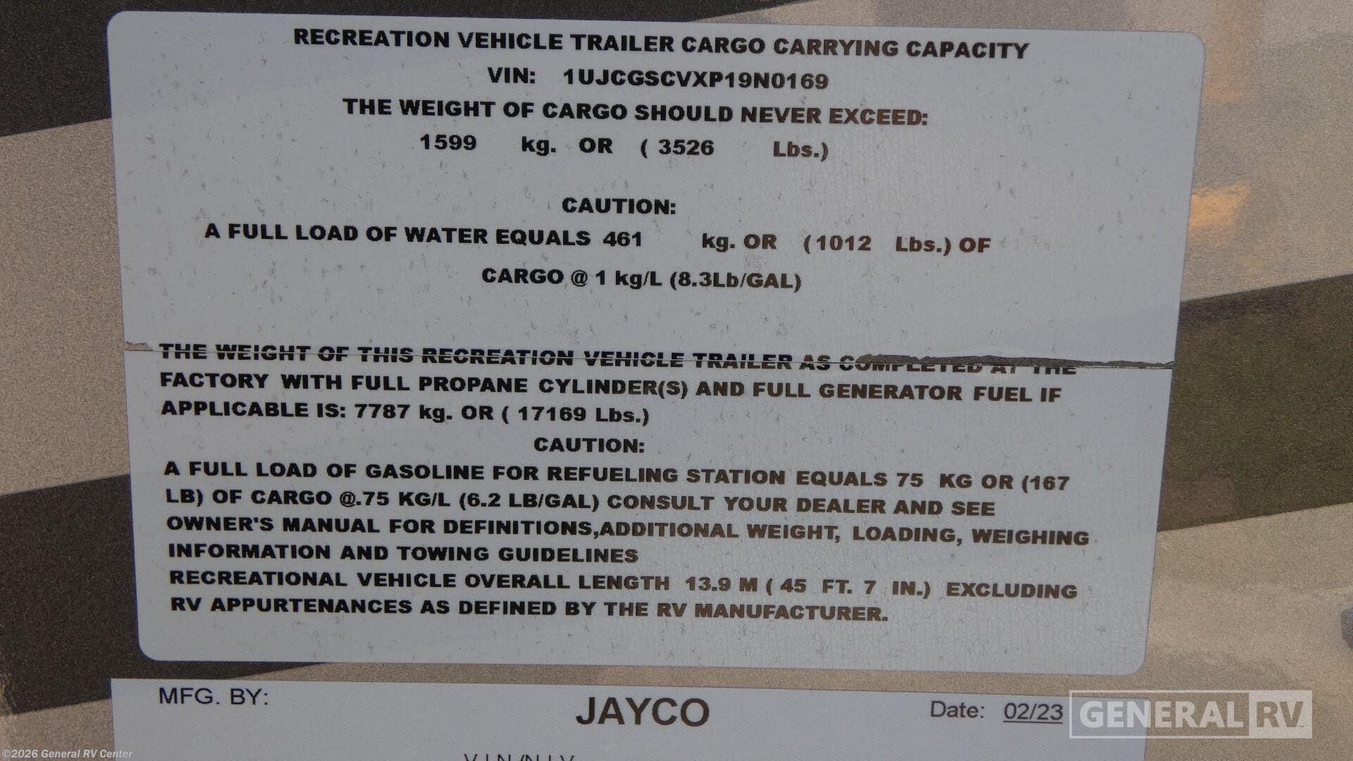 - VIN1UJCGSCVXP19N0169