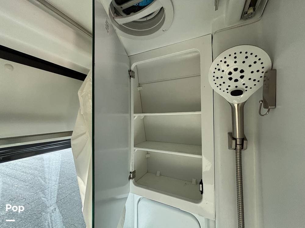 The rear bath/shower is easily accessible from both the inside and the outside.