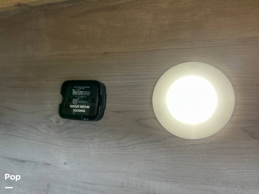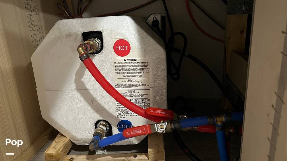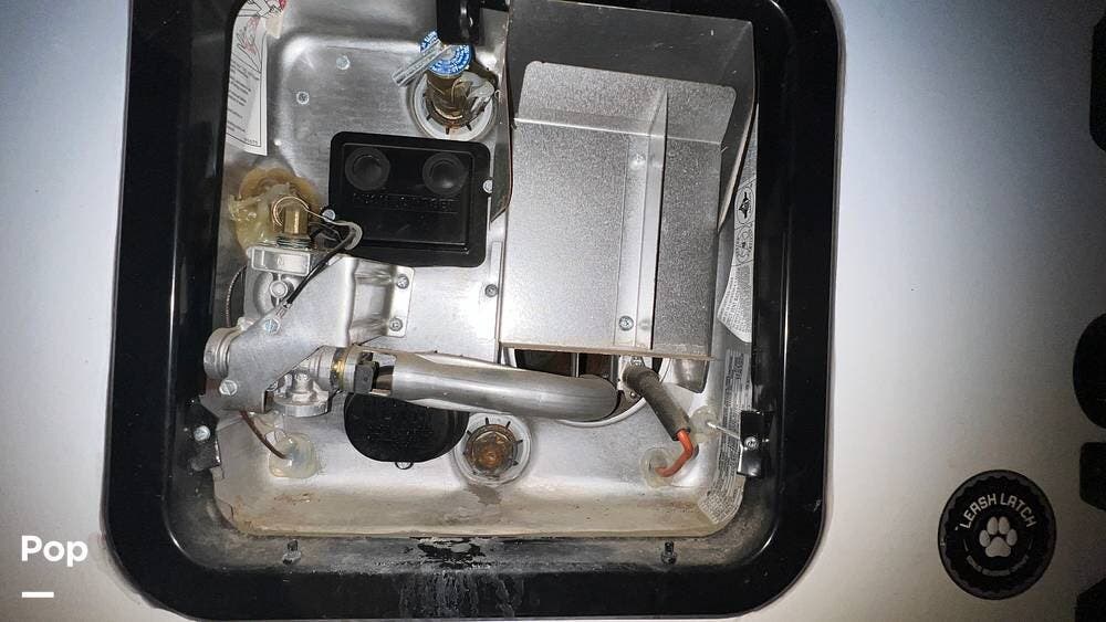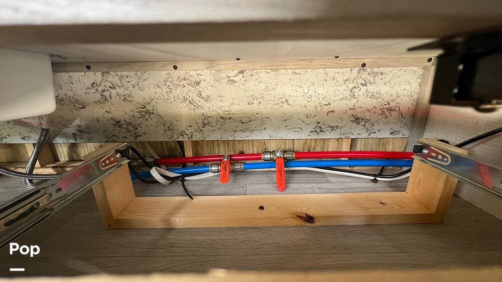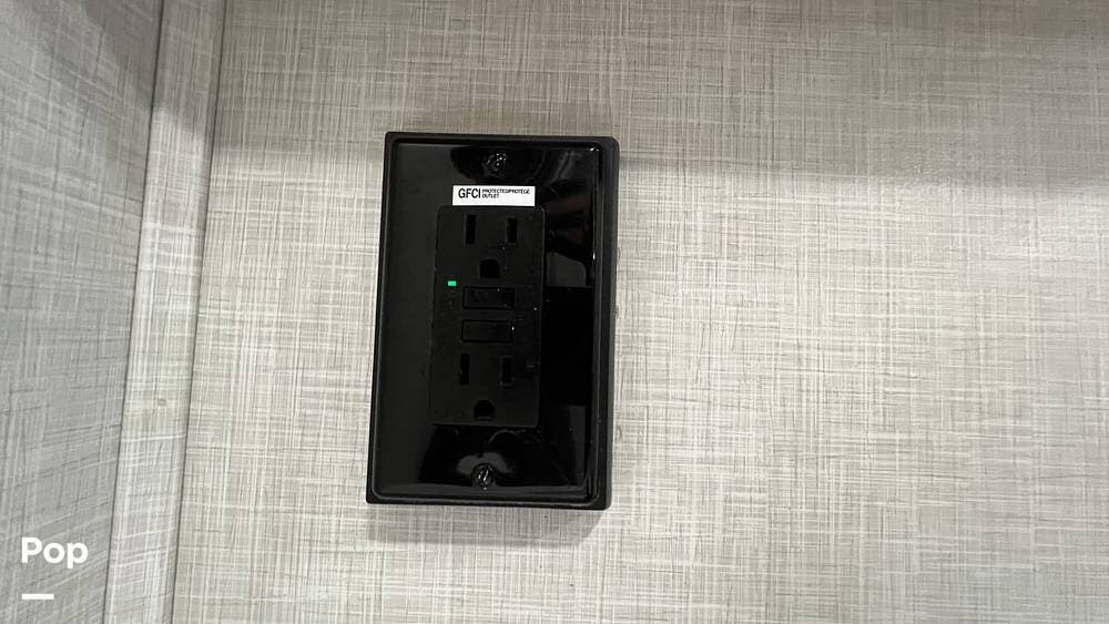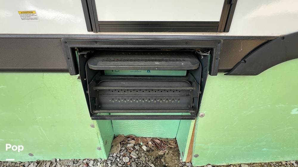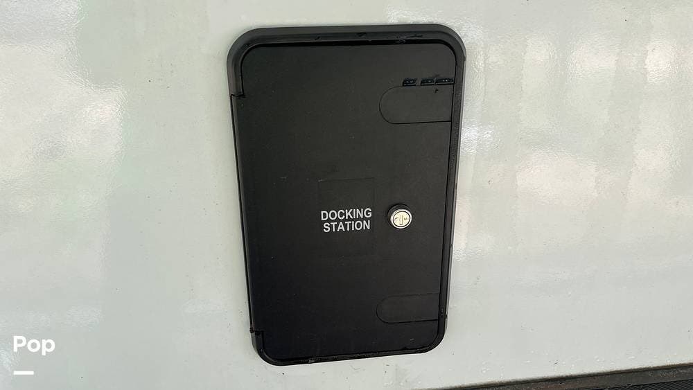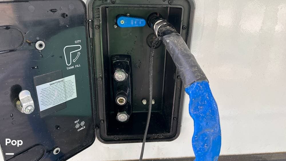 The unit has a large full-width pass-through storage area near the front, and the power tongue jack and 4 stabilizer jacks make setup and breakdown quick and easy. All of the RV systems are clearly marked and easily accessible around the unit.