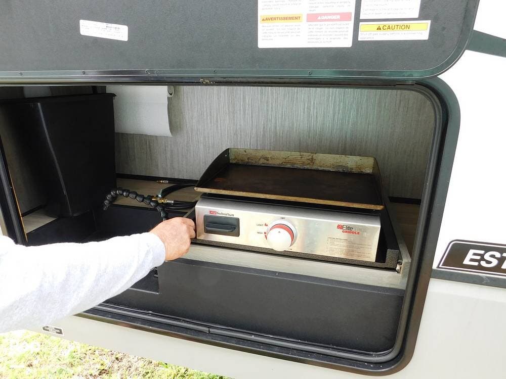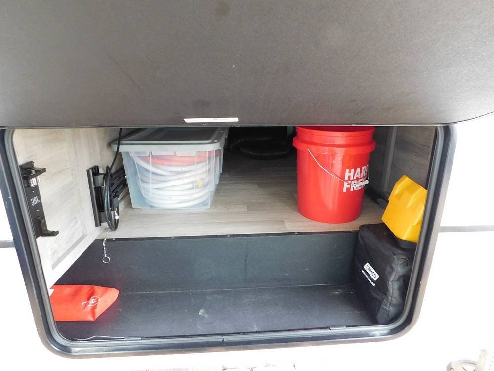 RV has the winter package for basement heat and exterior range, and sink.