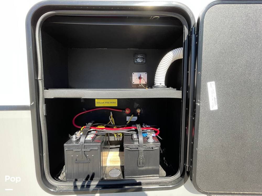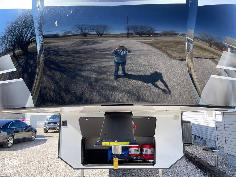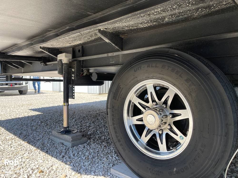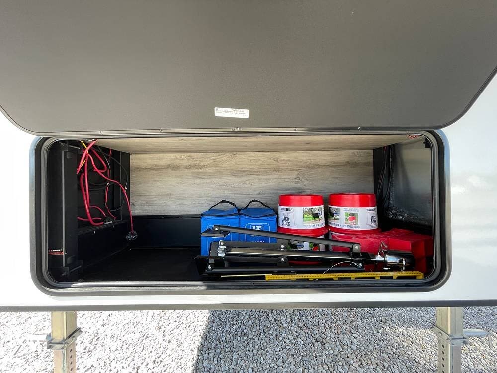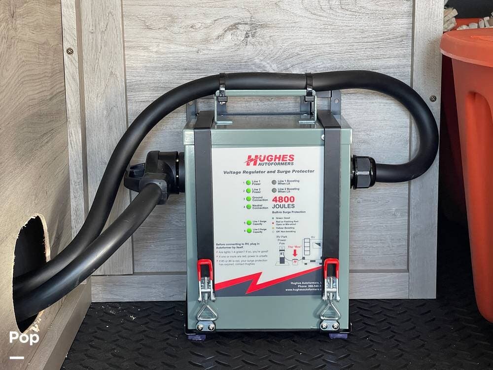 Built for performance and convenience, it has upgraded load range G MasterTrack tires, a Hughes AutoFormer to protect your power supply, a Pullrite Auto Slider Hitch for effortless towing, and Anderson Levelers for quick and easy setup.