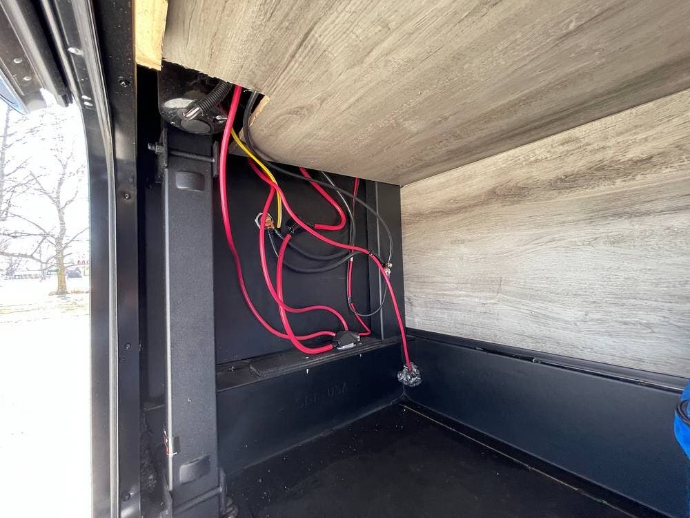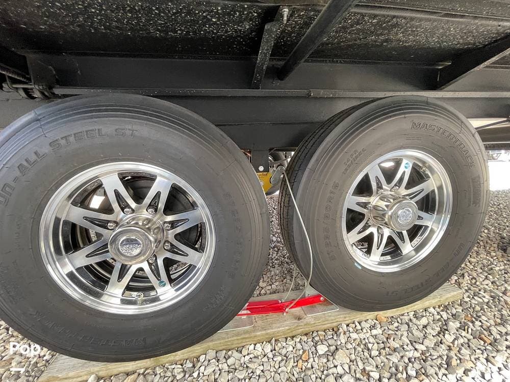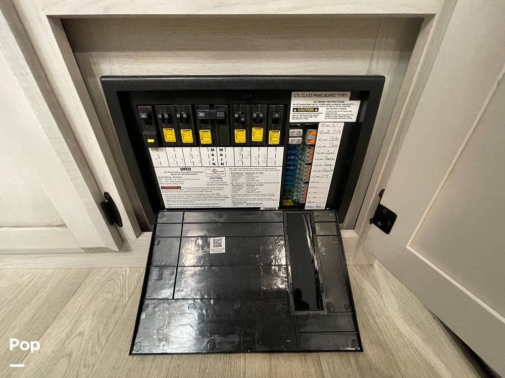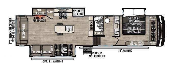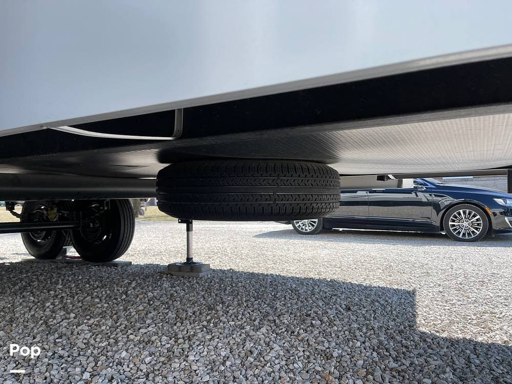 Built for performance and convenience, it has upgraded load range G MasterTrack tires, a Hughes AutoFormer to protect your power supply, a Pullrite Auto Slider Hitch for effortless towing, and Anderson Levelers for quick and easy setup.