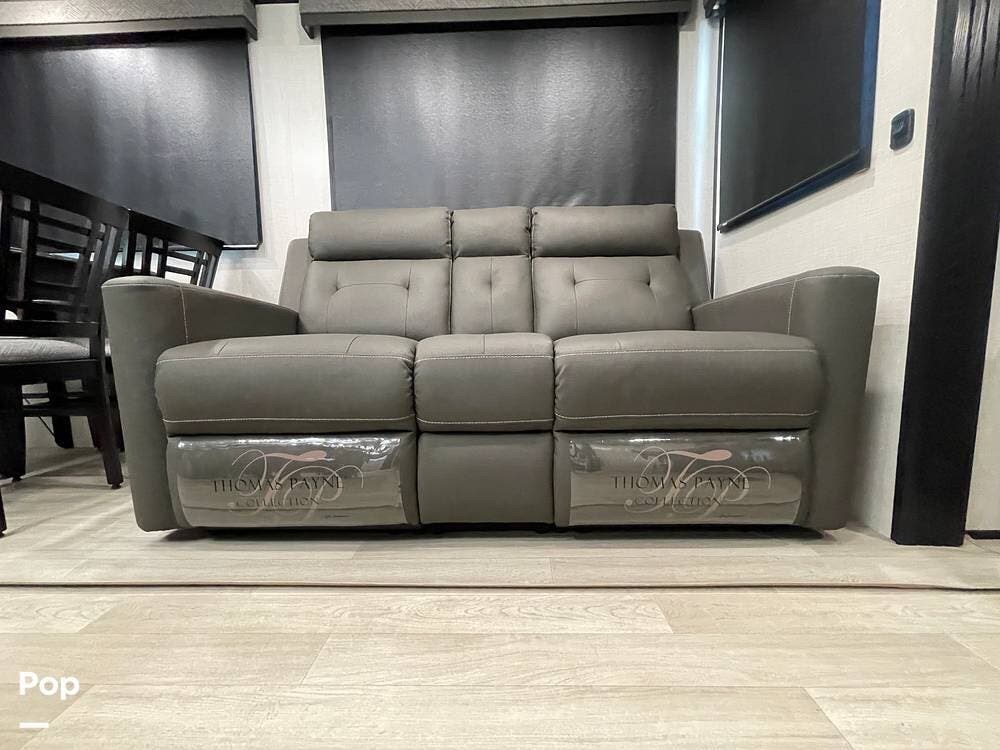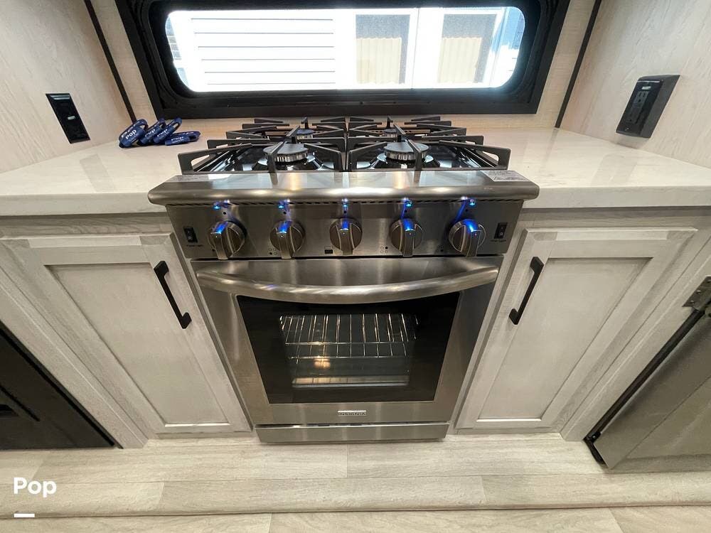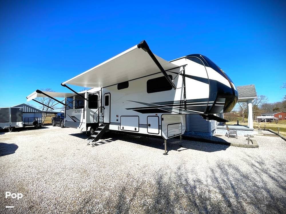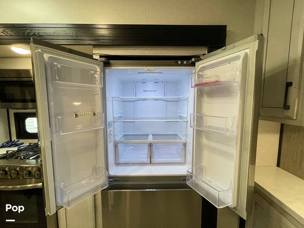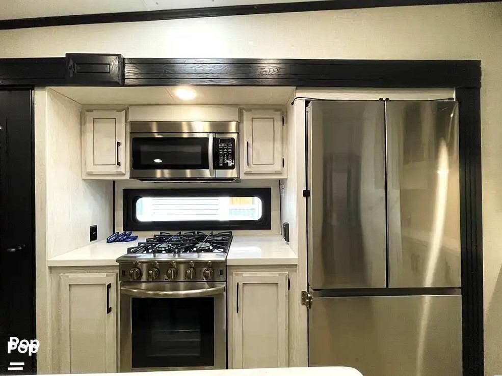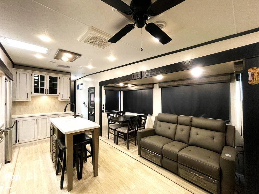 This luxury fifth wheel has only been used twice and is packed with high-end features for ultimate comfort on the road.