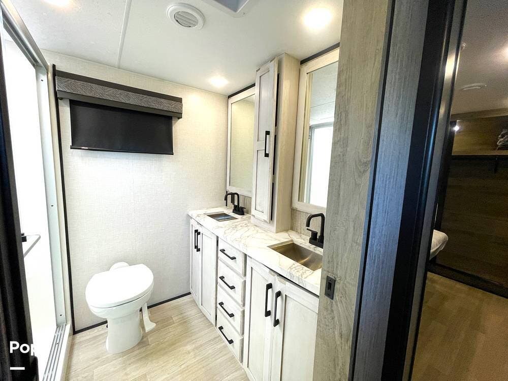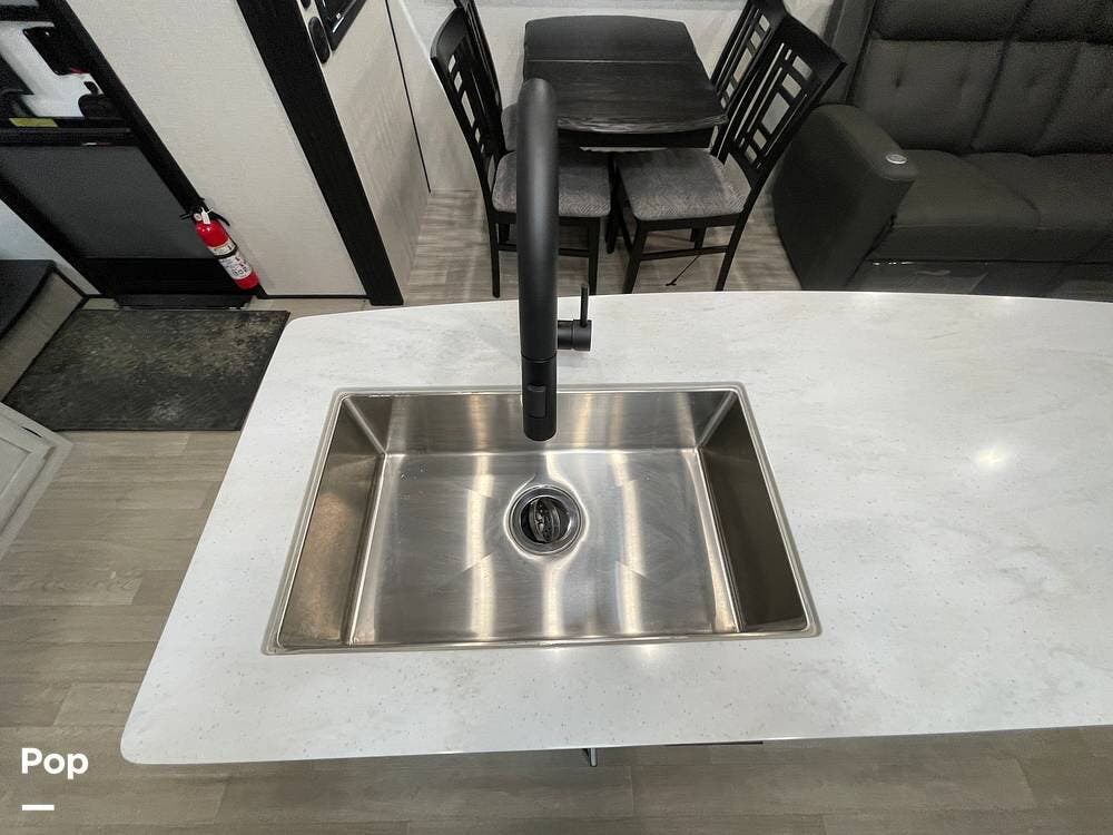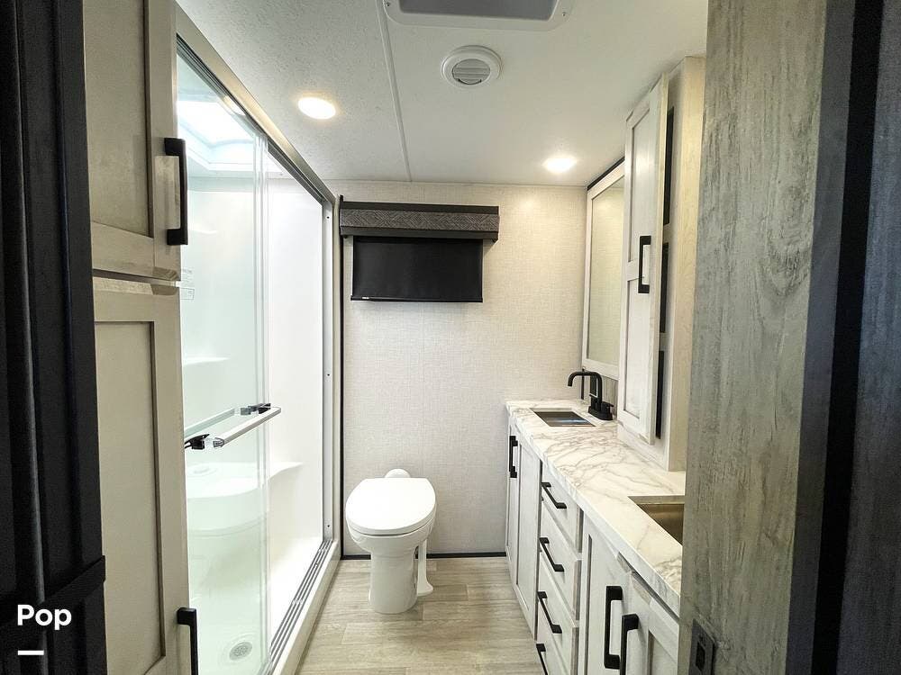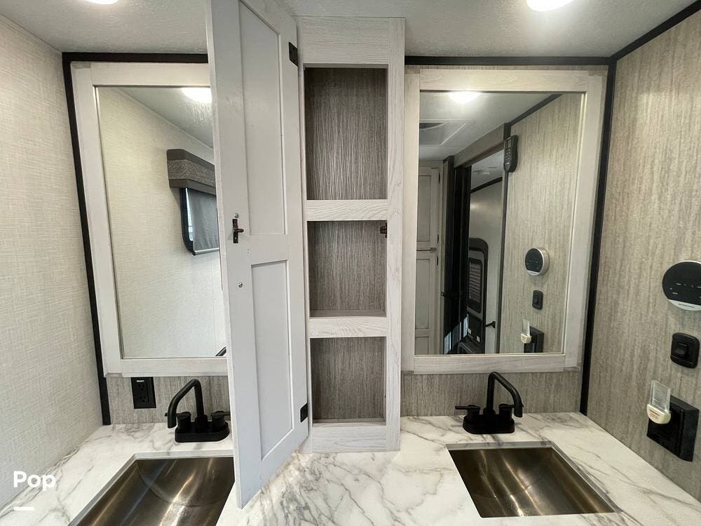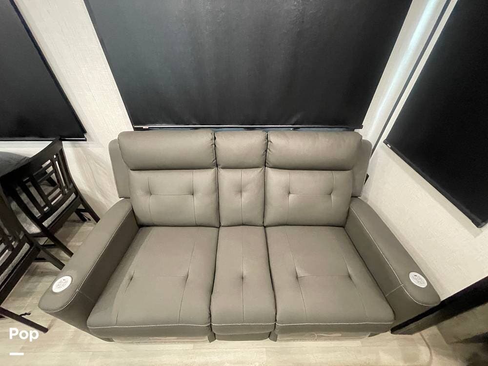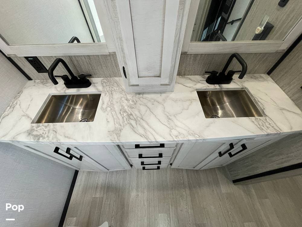 This luxury fifth wheel has only been used twice and is packed with high-end features for ultimate comfort on the road.