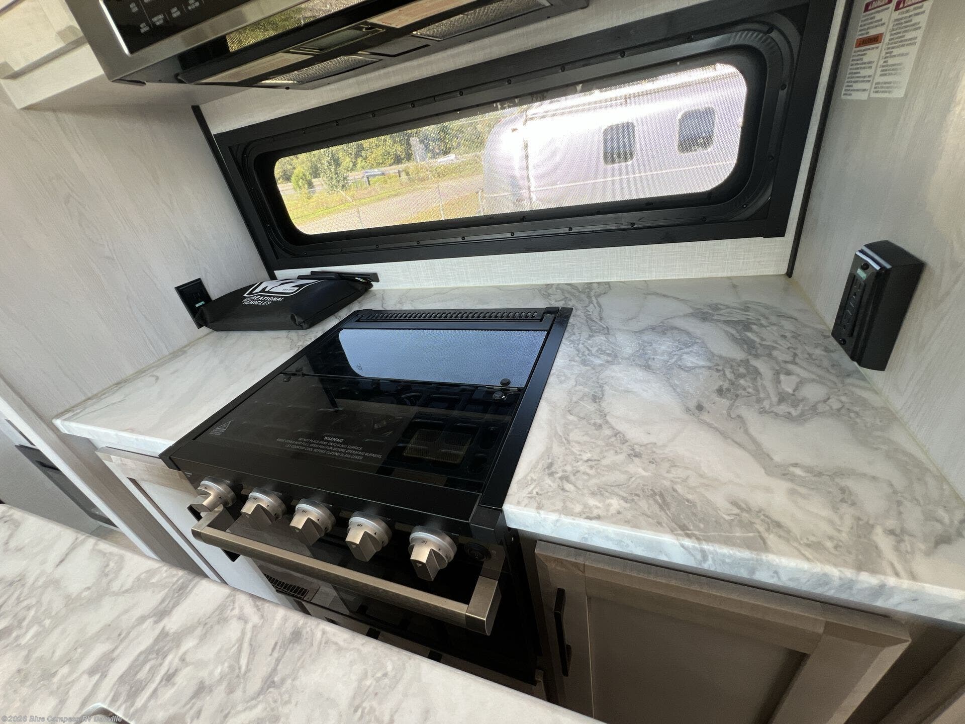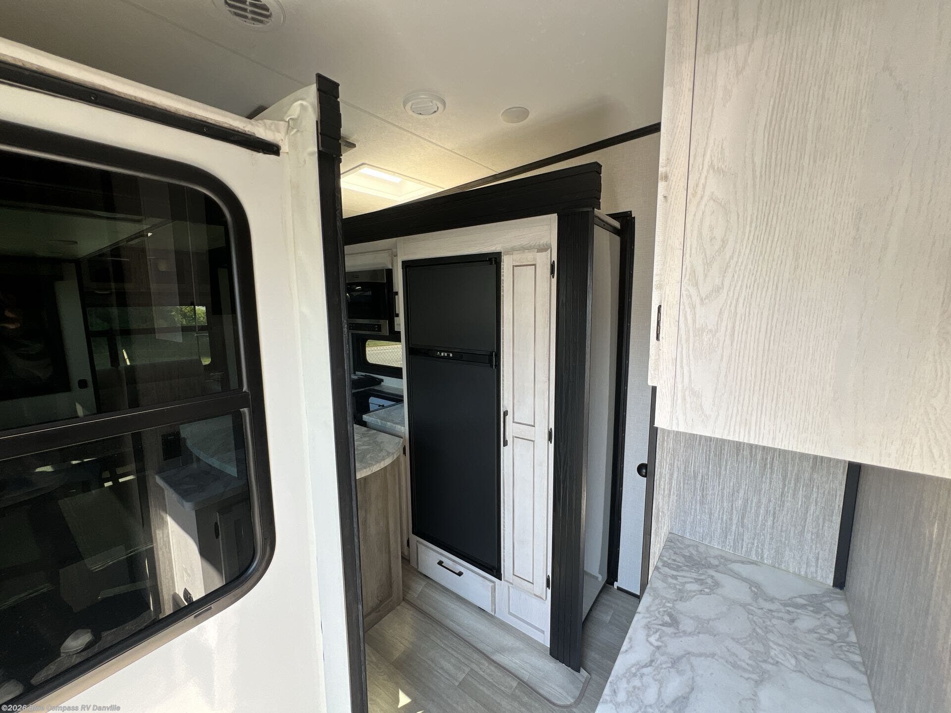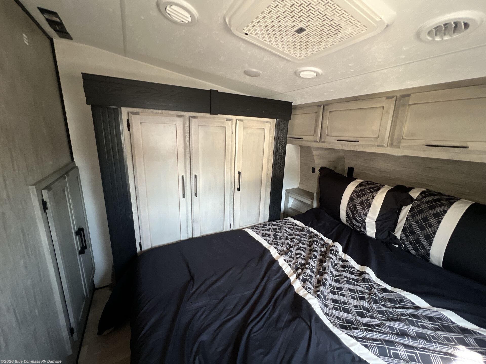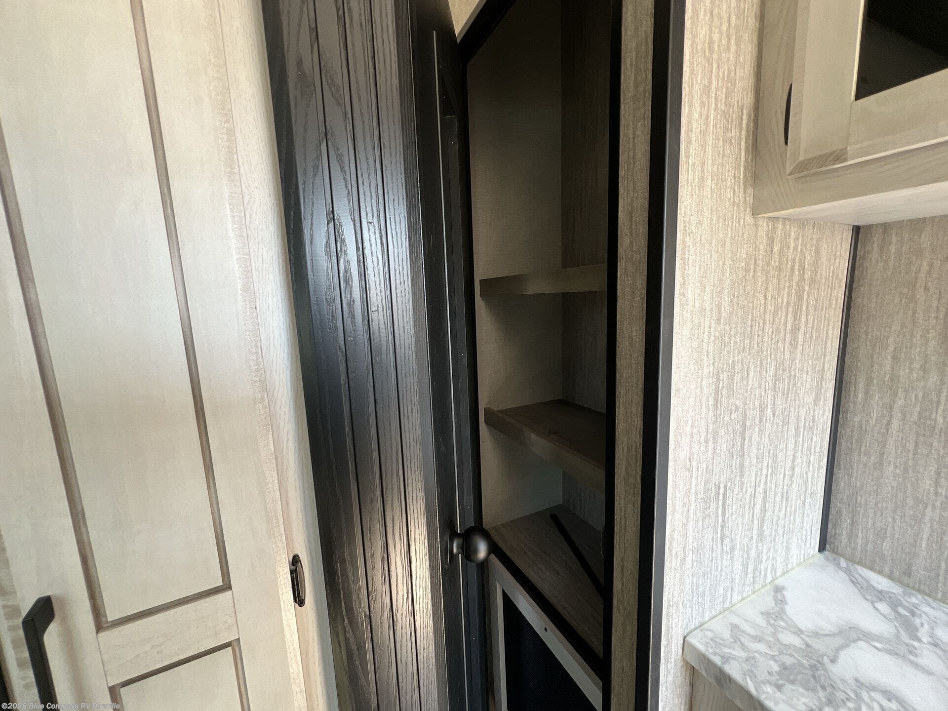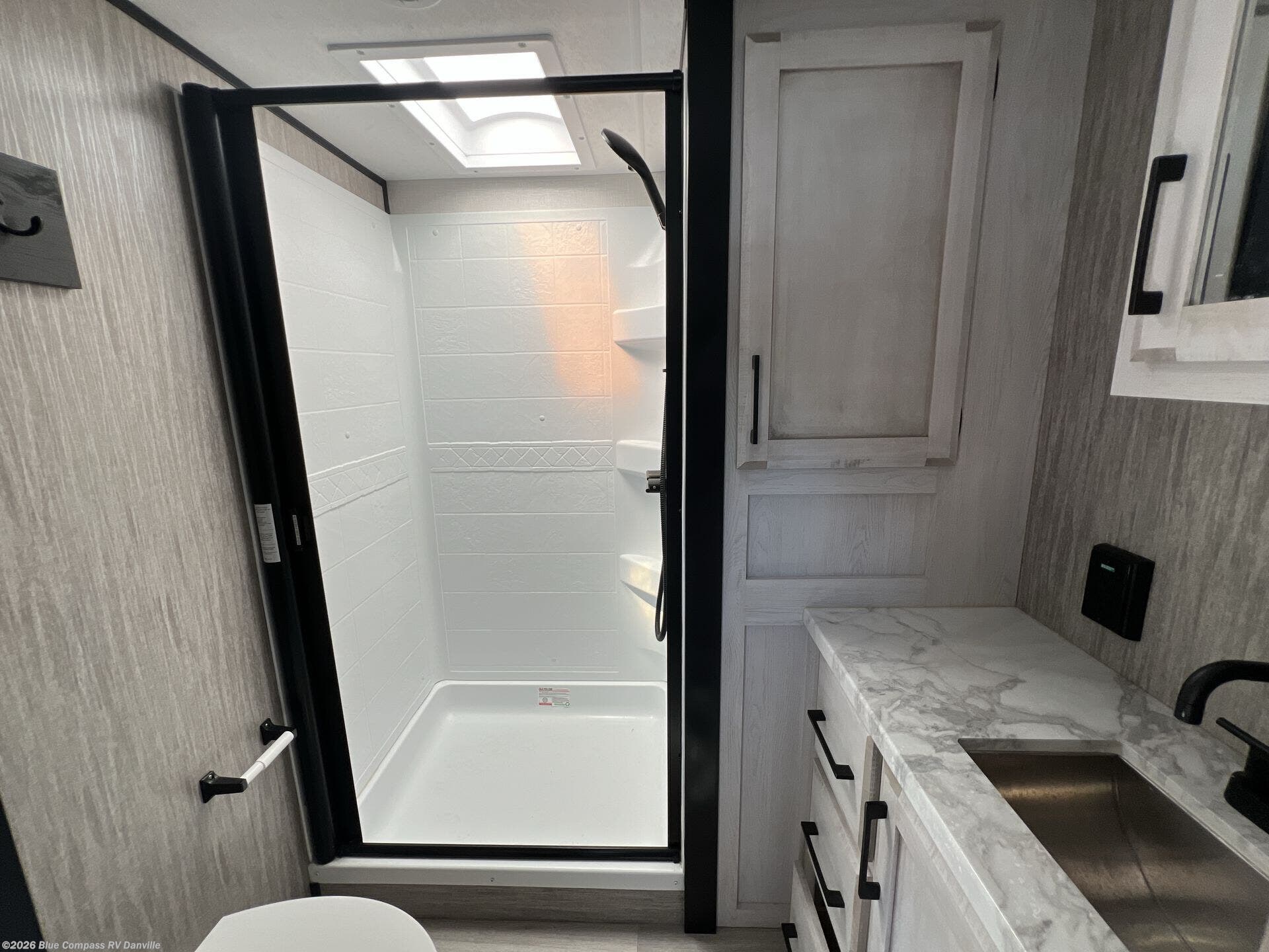 This fifth wheel will feel just like home with its kitchen island, theater seating, and front private bedroom! If you have any overnight guests, they can sleep on the rear hide-a-bed sofa or on the booth dinette. This model also includes an entertainment center with a 43" Smart LED TV and an optional 40" fireplace can be added for more comfort. You will love the extra features that have been added, like the hutch in the kitchen for extra counter and storage space, the shower skylight in the spacious full bath, and the slide out wardrobe in the front bedroom!