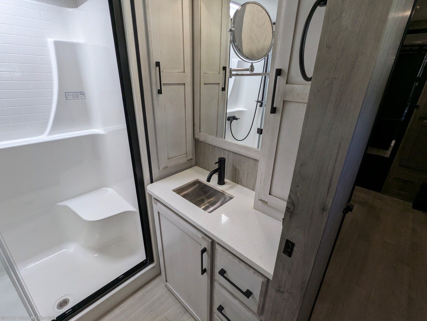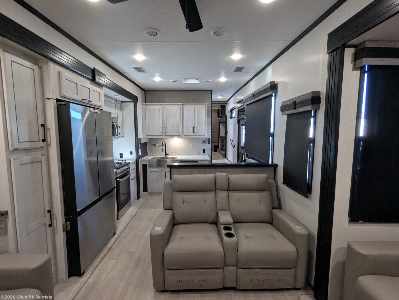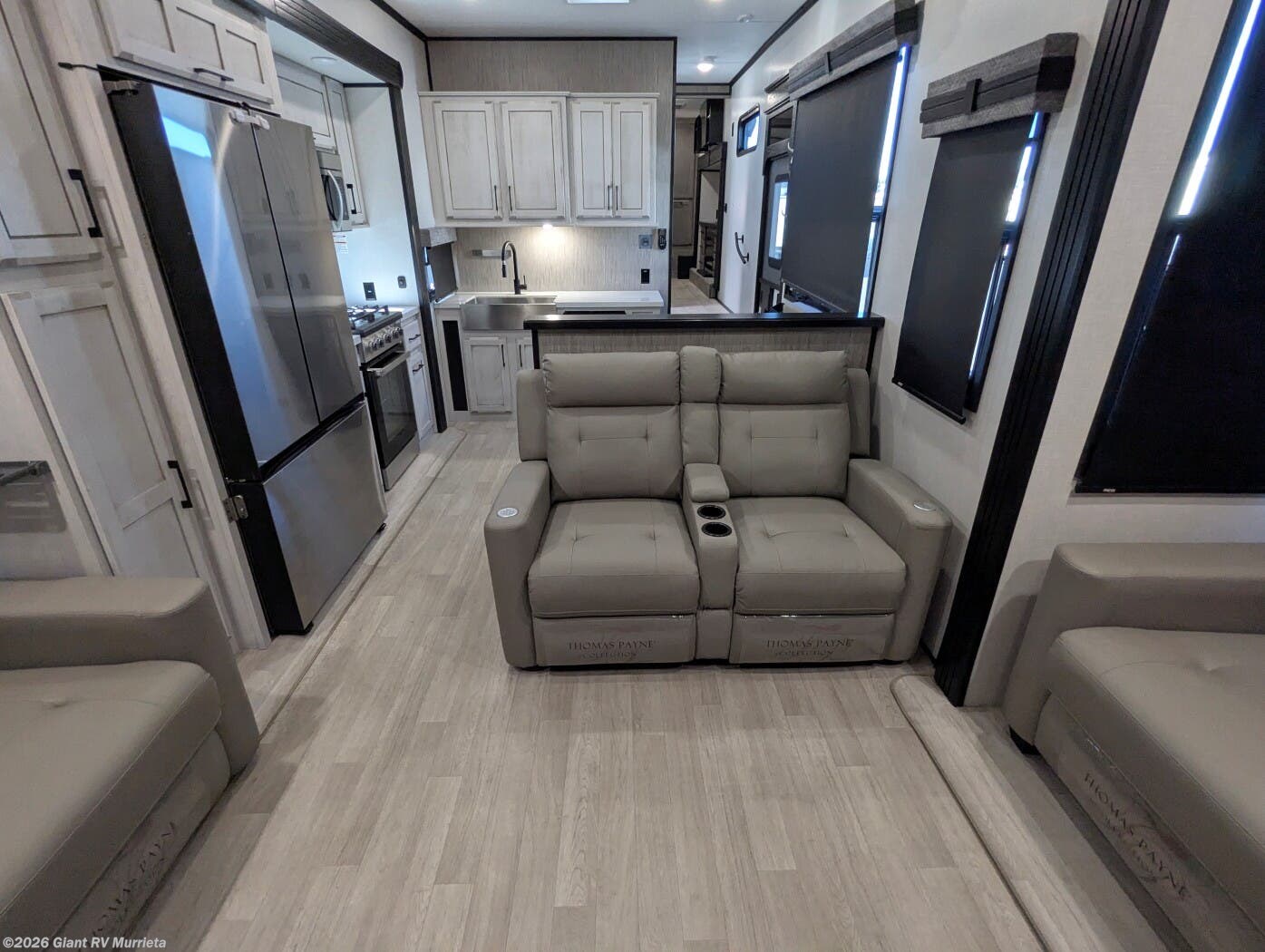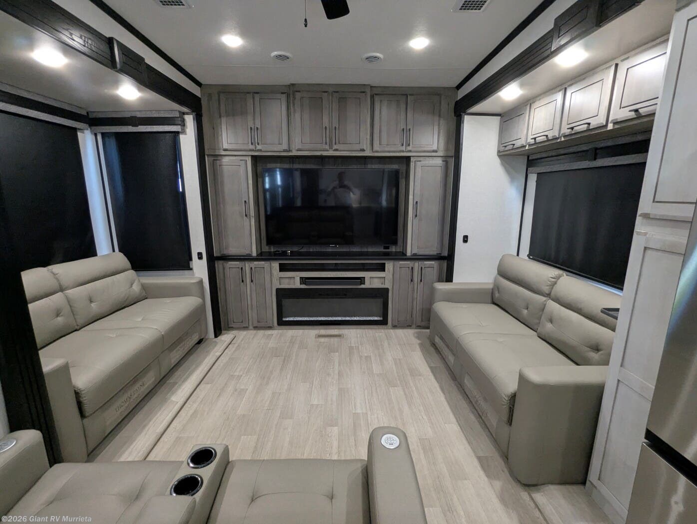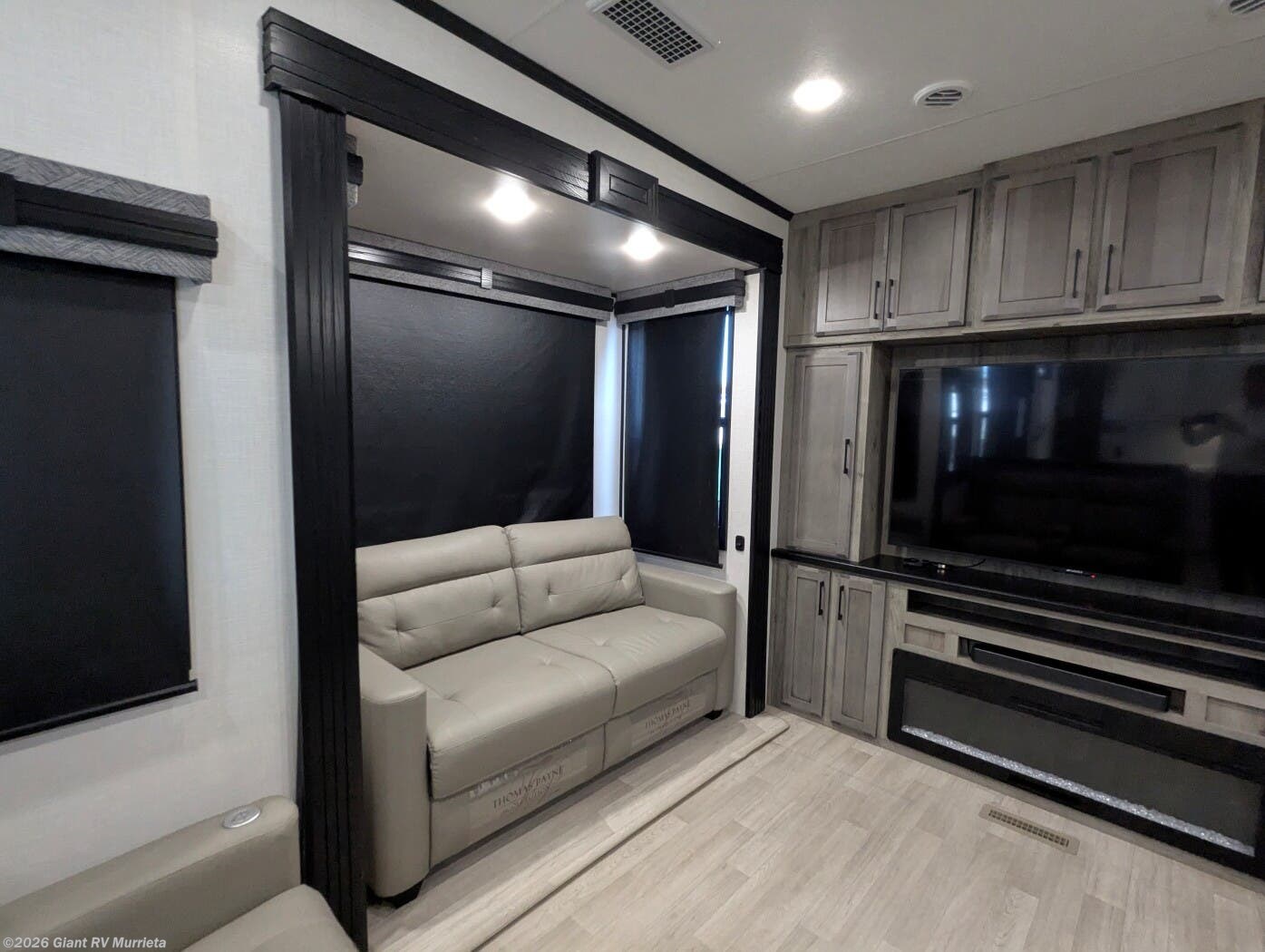 - Rear Living Retreat: Sleeps up to 4 with theater seating featuring heat, massage, and power recline, plus a rear full bathroom and front private bedroom with electric tilt bed and Serta Comfort foam king mattress for open, resort-like space.