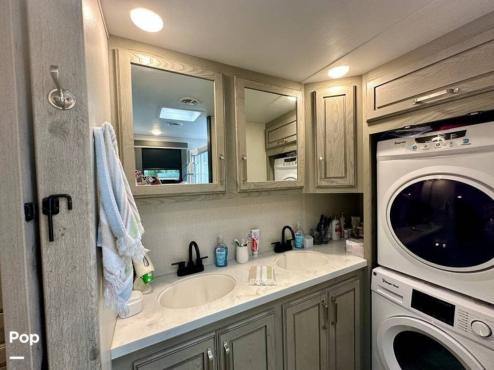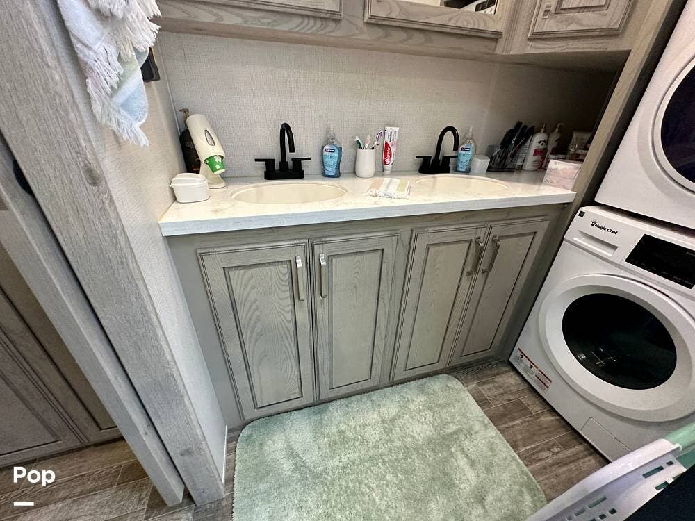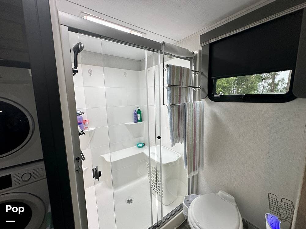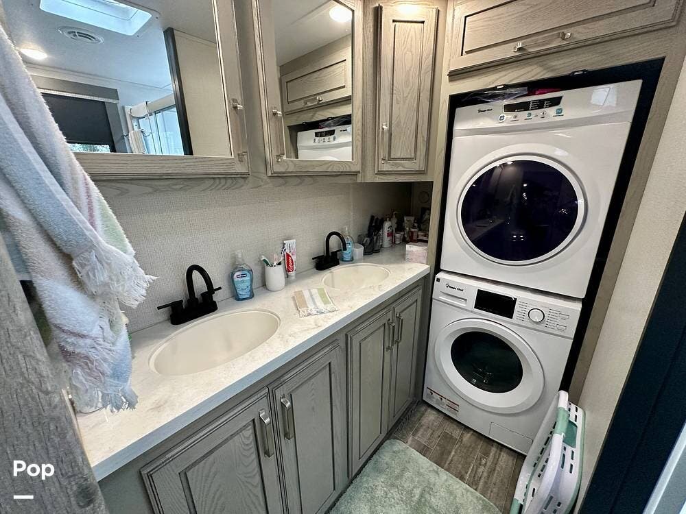 You can toss a load of beach towels into the stackable washer and dryer without waiting in line at crowded campground laundries.