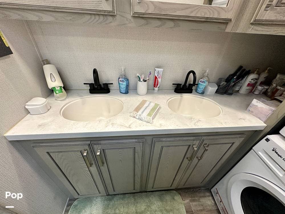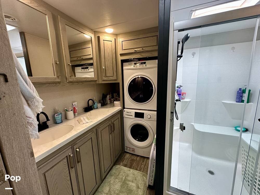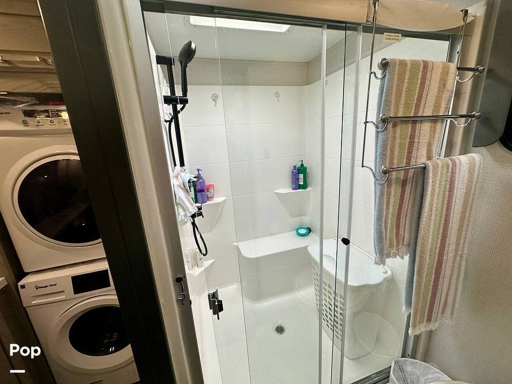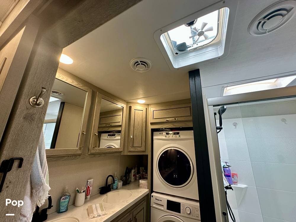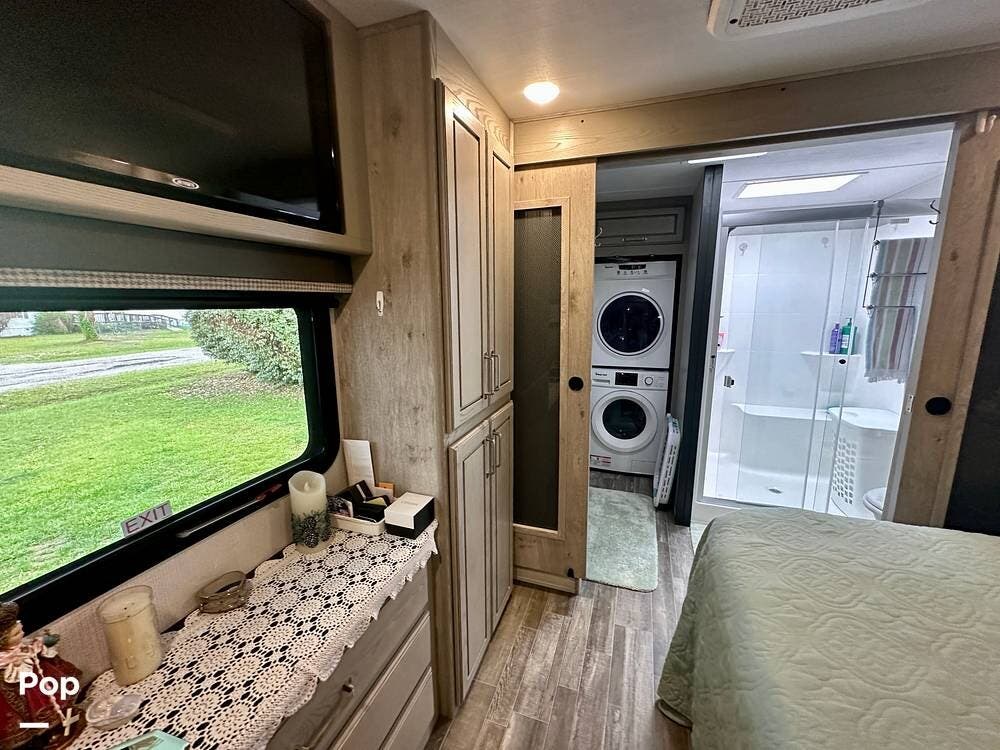 You can toss a load of beach towels into the stackable washer and dryer without waiting in line at crowded campground laundries.