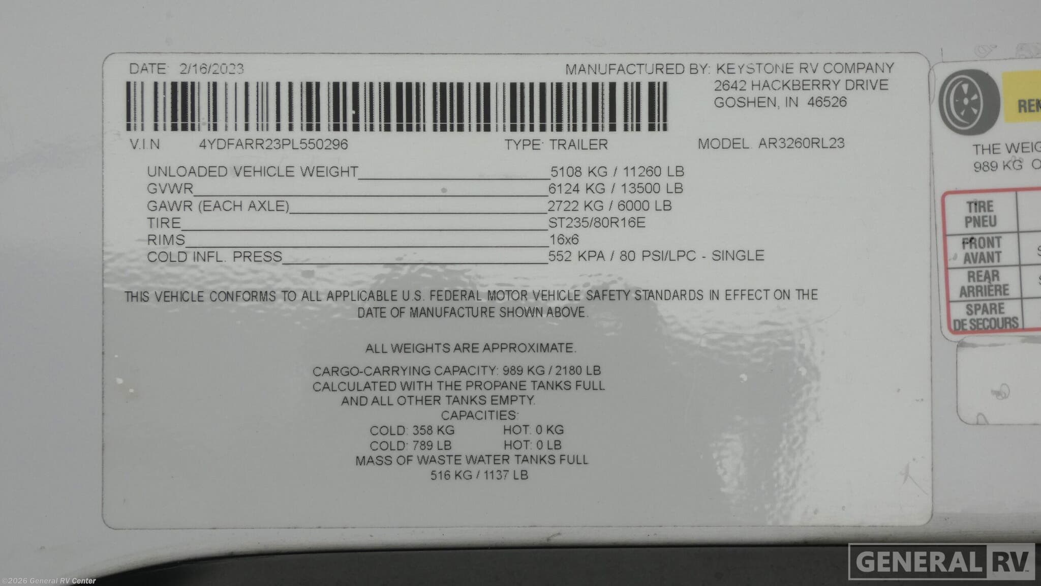 - VIN4YDFARR23PL550296